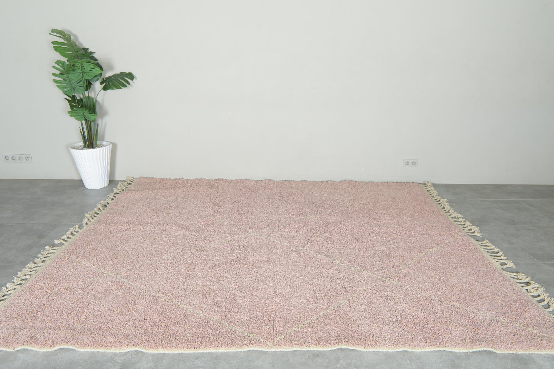 Pink Moroccan beni ourain rug - 8.1 ft x 10.1 ft