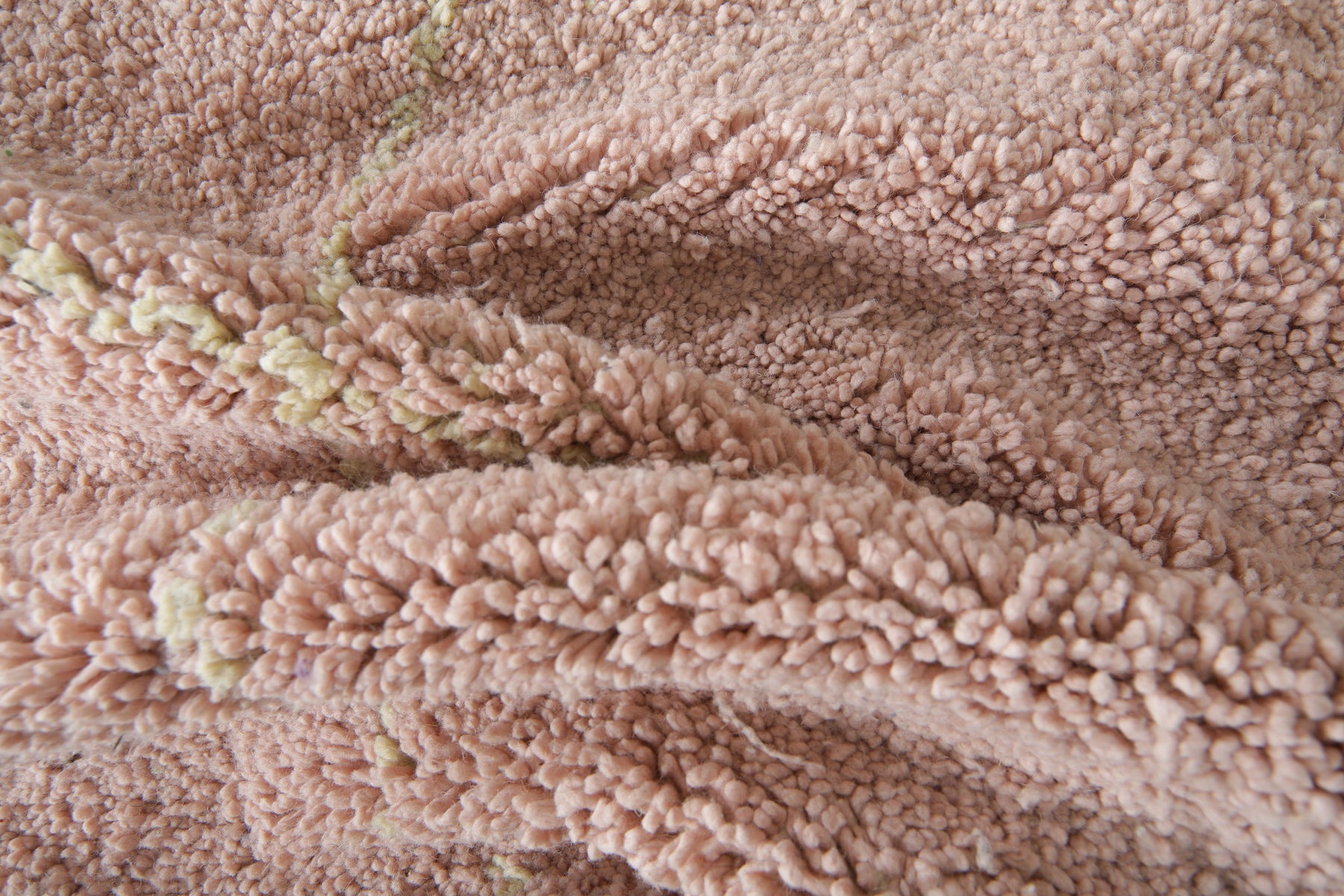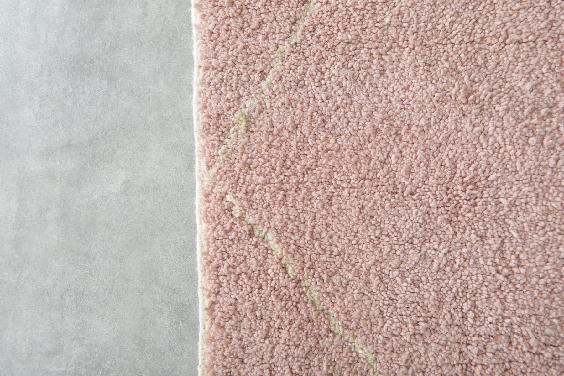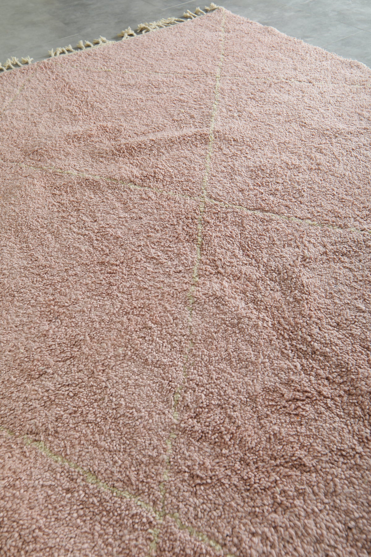 Infuse your space with the gentle warmth of our Pink Beni Ourain rug. Handwoven in the Atlas Mountains of Morocco, this authentic wool rug embodies comfort and style. The soft, blush pink hue creates a serene and inviting atmosphere, perfect for nurseries, bedrooms, or any space seeking a touch of cozy elegance. Featuring the classic Beni Ourain diamond pattern, this rug is a timeless addition to your home. Made from 100% natural wool, its plush pile offers unparalleled comfort underfoot, while its durable construction ensures lasting beauty. Bring the artistry of Moroccan craftsmanship to your home with this unique and luxurious Pink Beni Ourain rug.