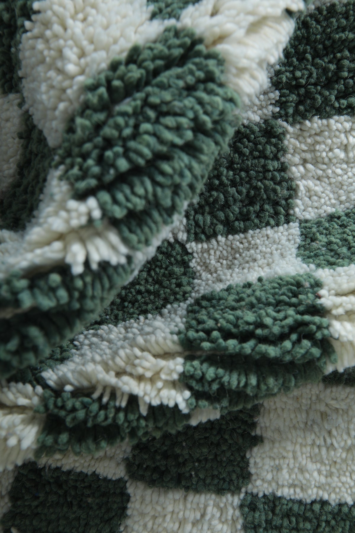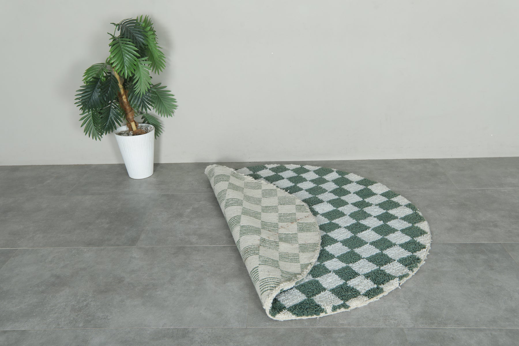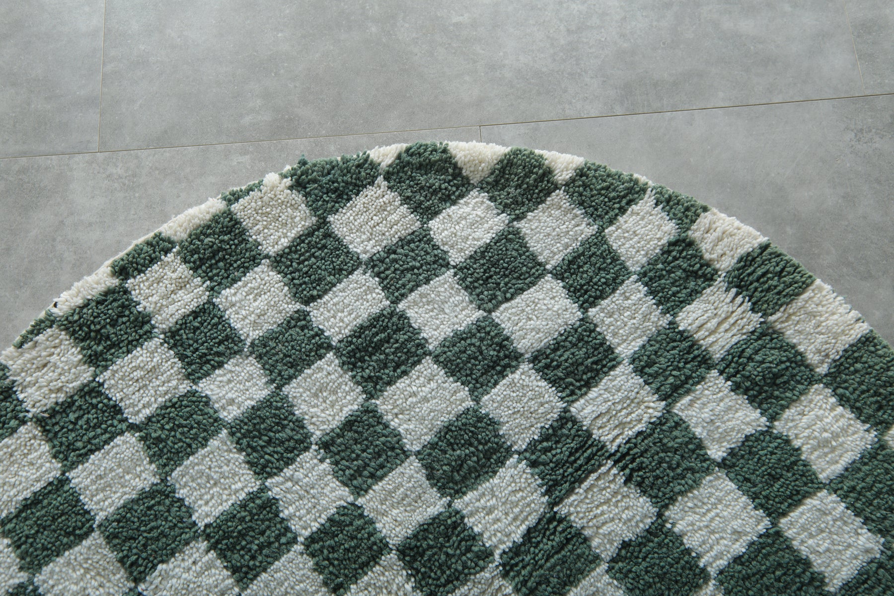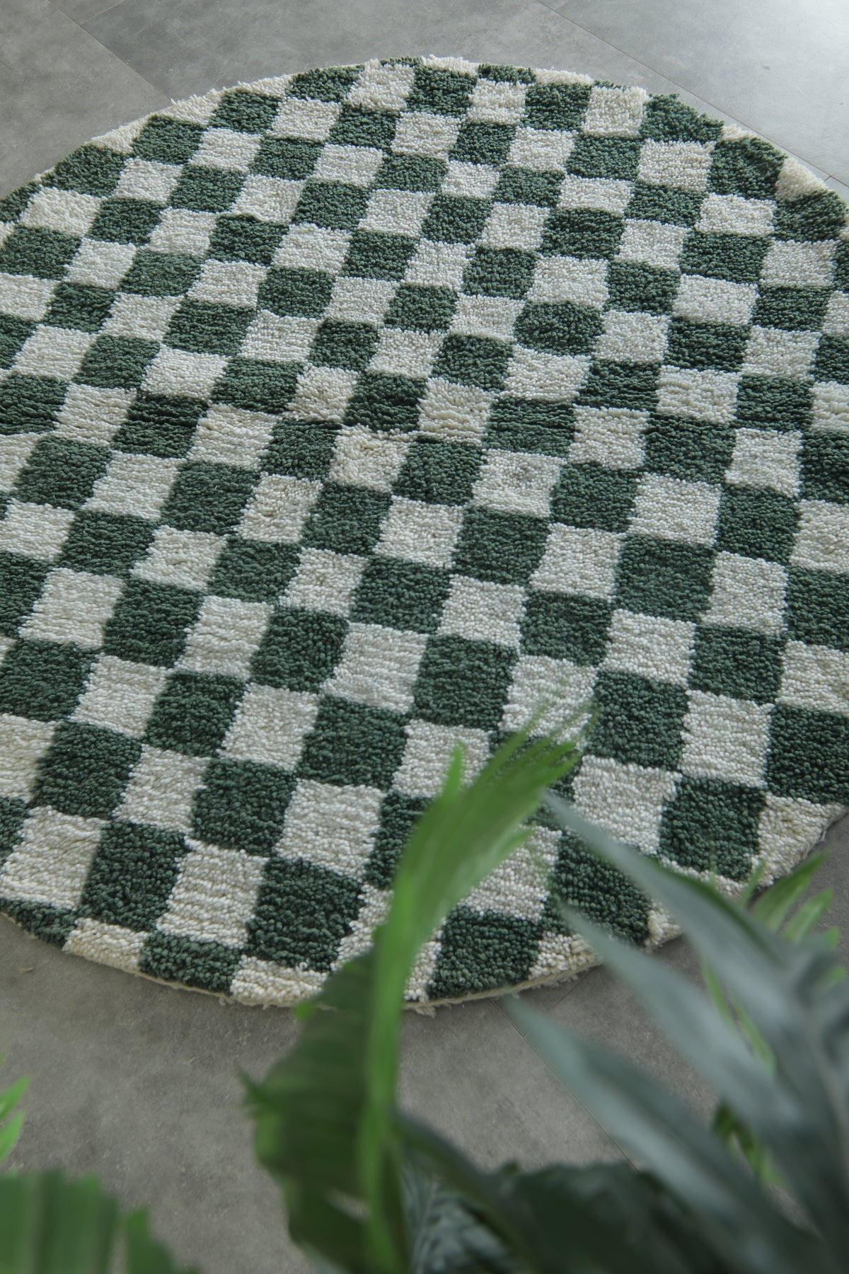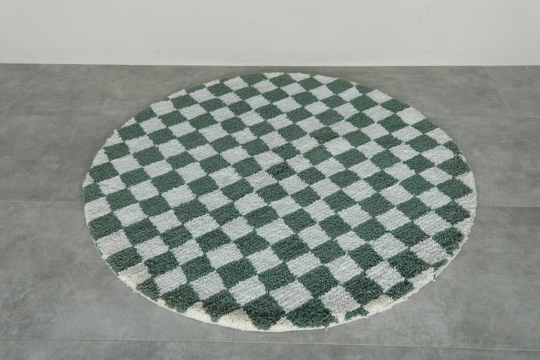 Round Moroccan rug - Green & white checkered design - 5 FT