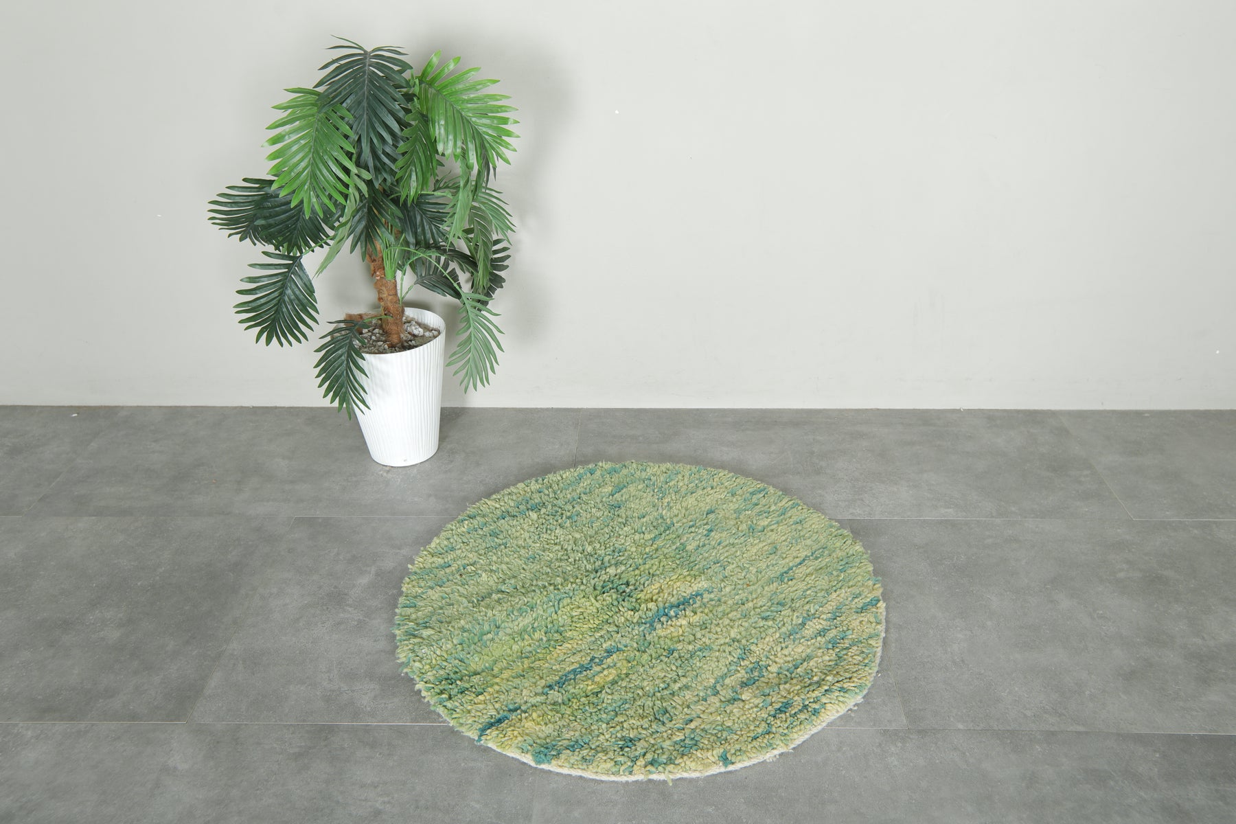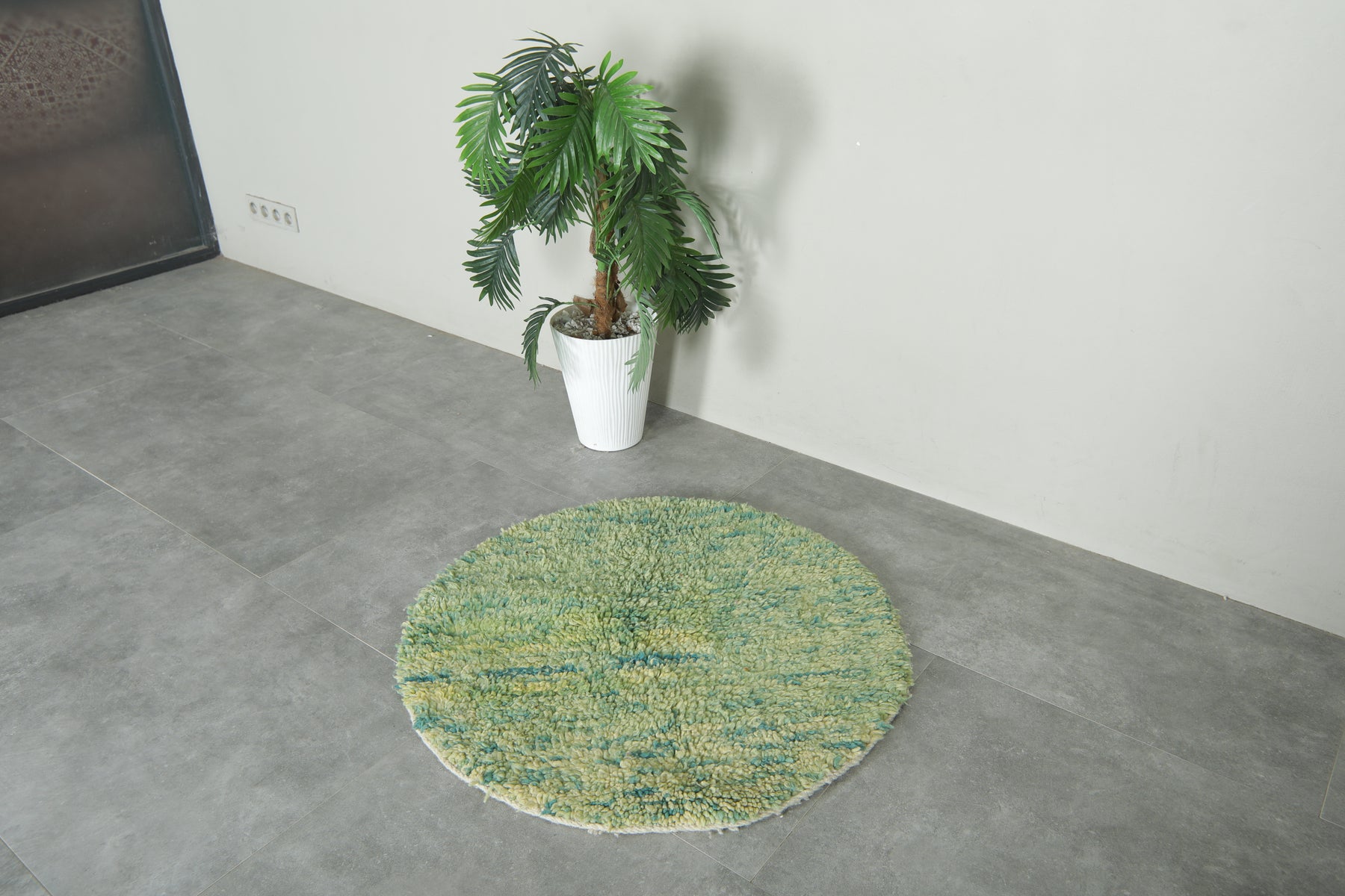Round Moroccan rug in green & yellow & blue - 3 ft