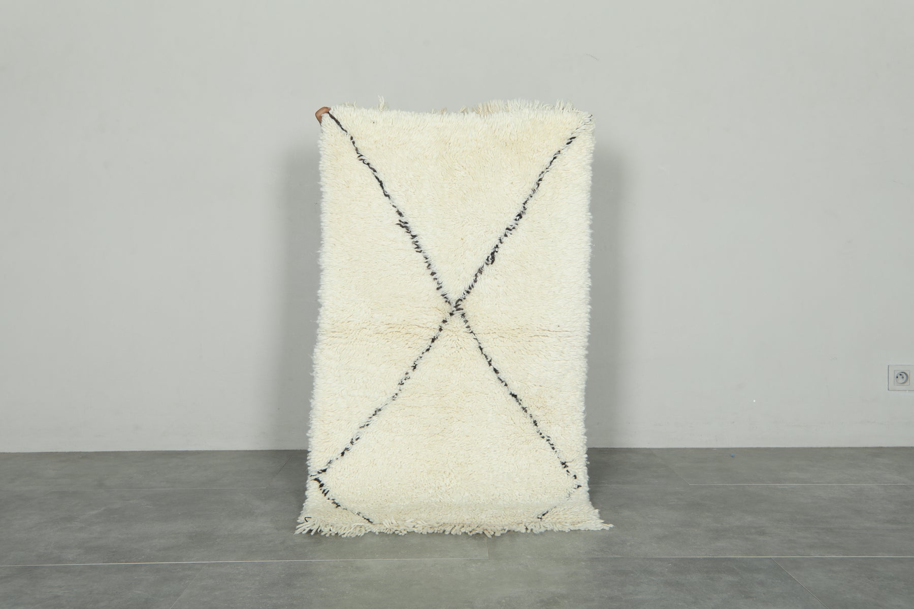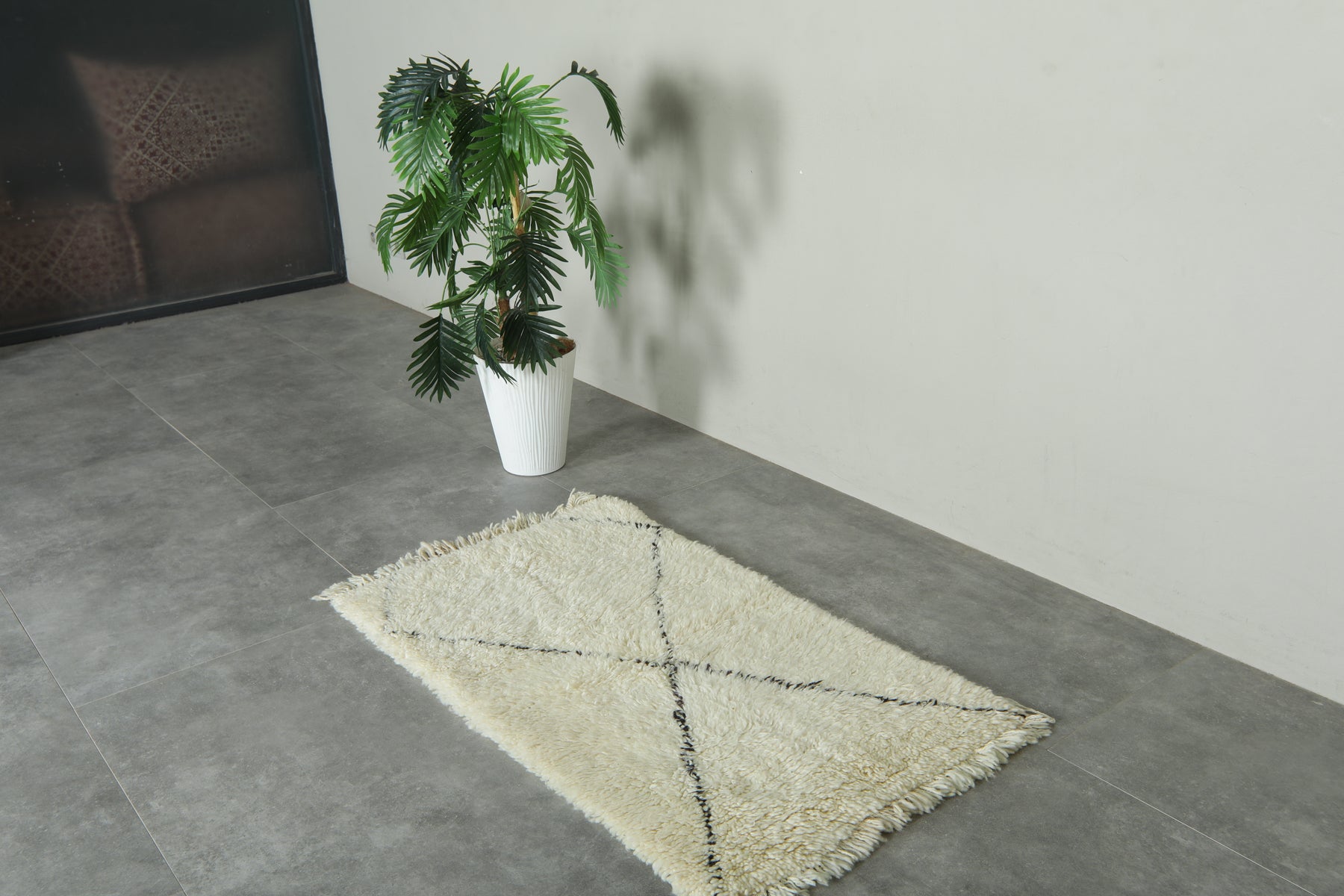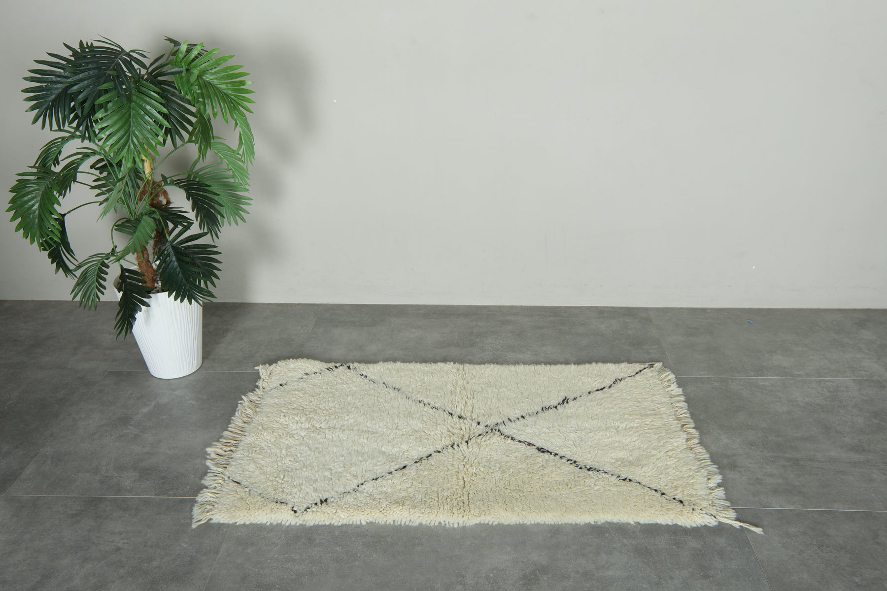 Small beige Moroccan beni ourain rug - 2.3 ft x 3.9 ft - With black pattern