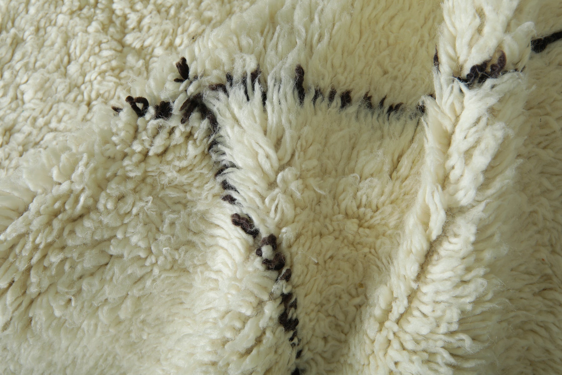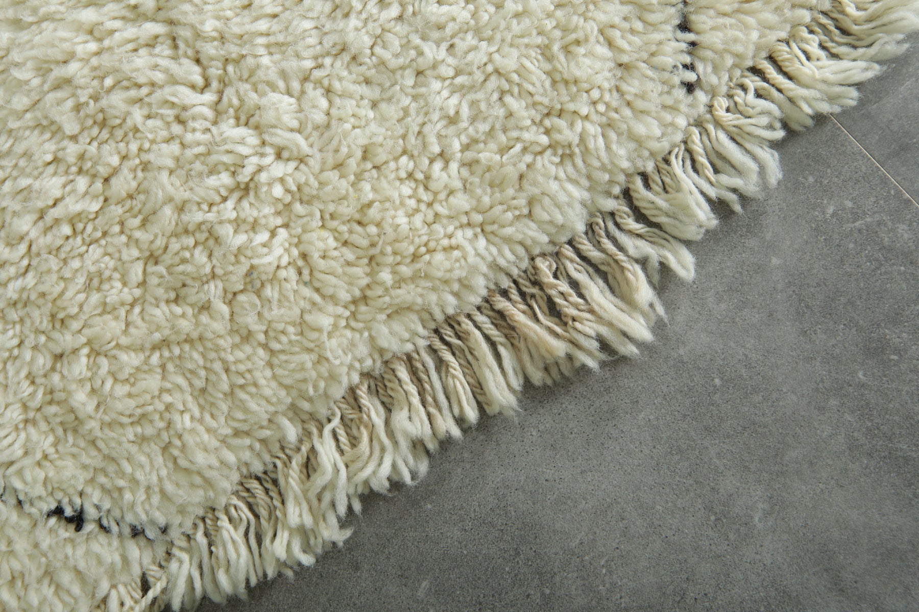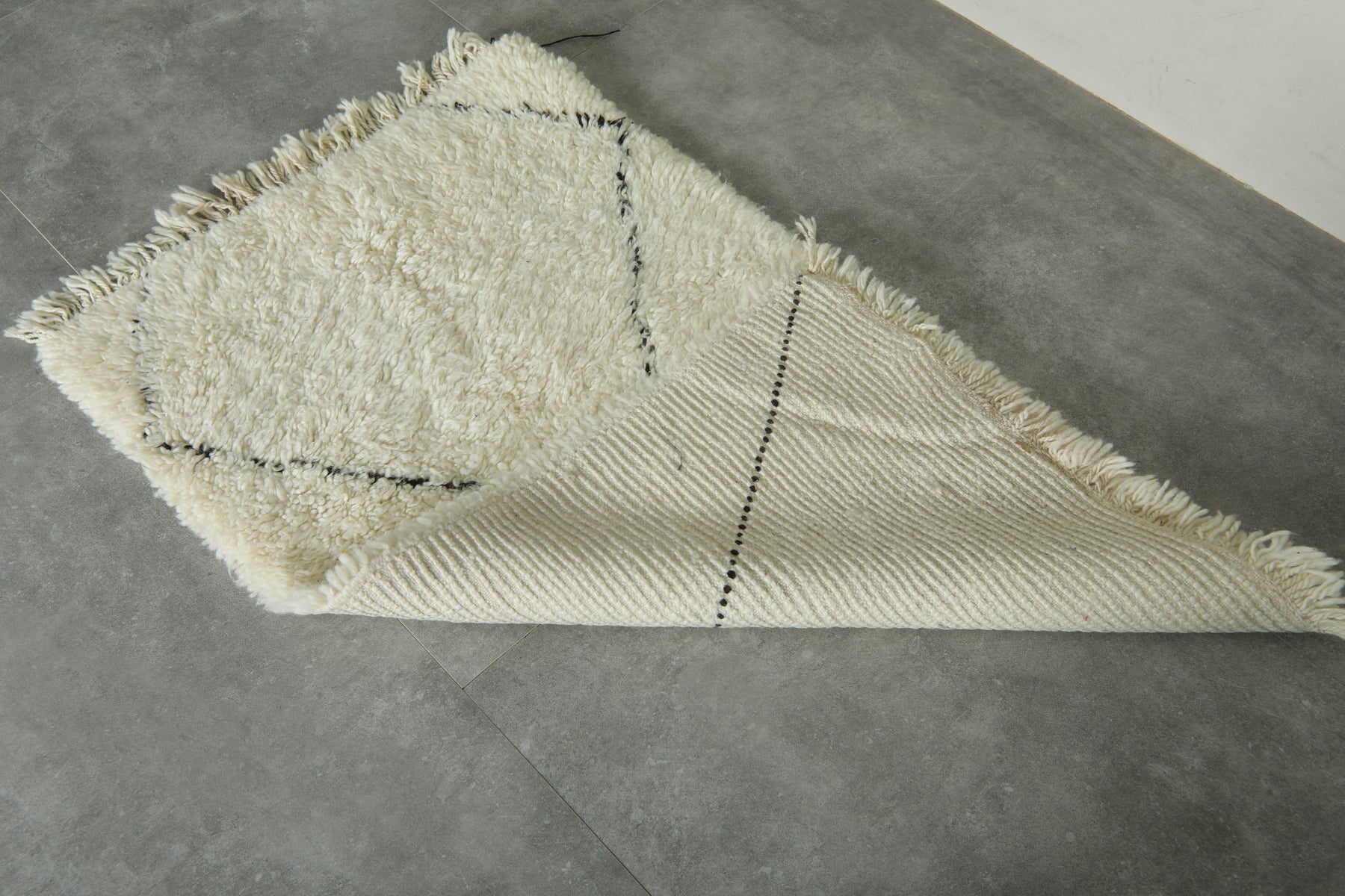 Add classic Moroccan charm to your home with this small beige Beni Ourain rug, handwoven from natural wool by skilled Berber artisans. Its soft beige base is decorated with simple black patterns, creating a timeless design that blends effortlessly with modern, bohemian, or minimalist interiors. The compact size makes it perfect for cozy corners, entryways, or as a stylish accent in bedrooms and living rooms. Soft, durable, and authentically handmade, this rug carries the heritage of Moroccan craftsmanship while offering understated elegance for everyday living.