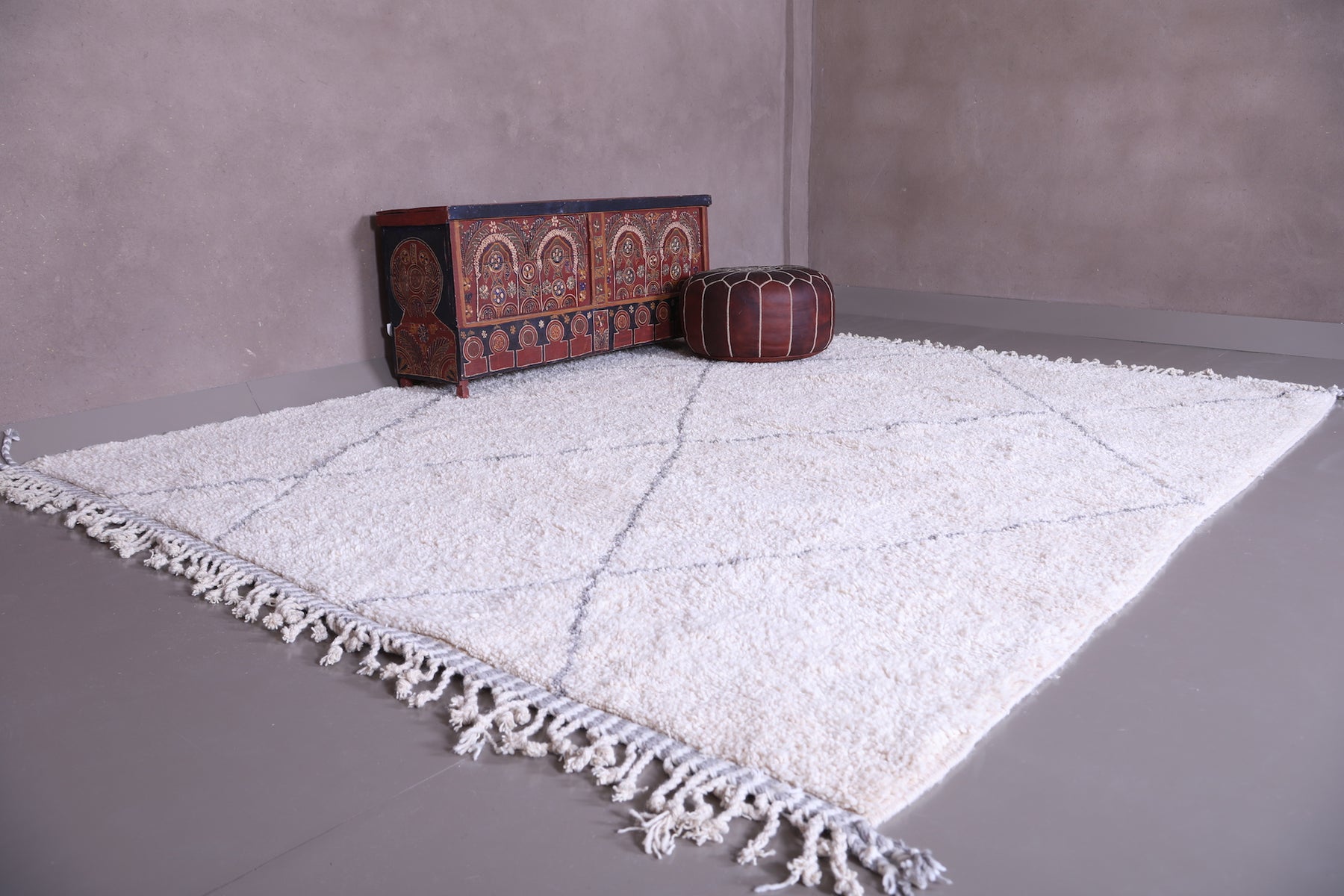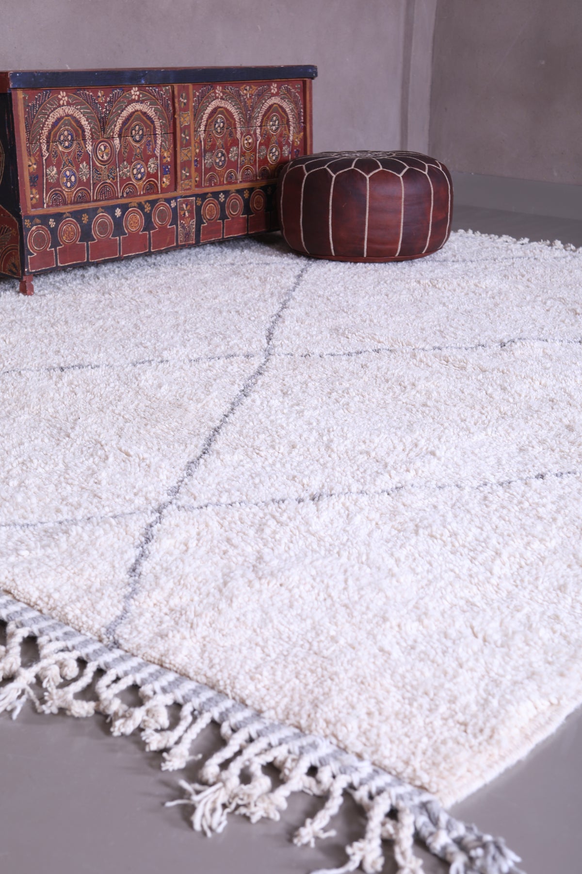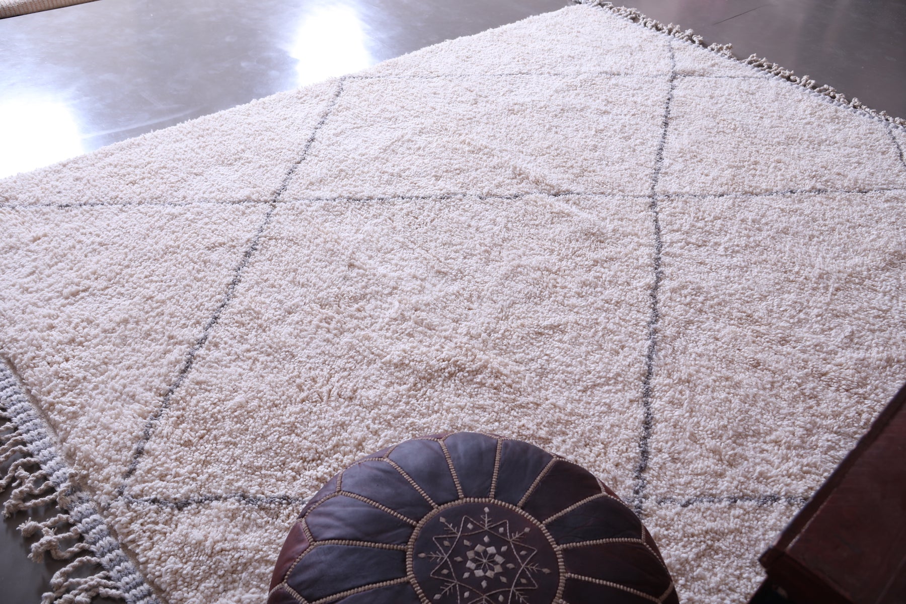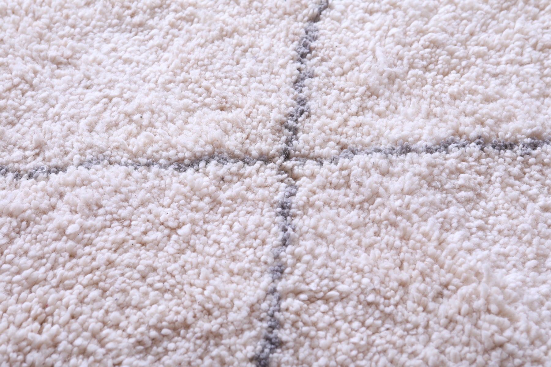 Add timeless warmth and authenticity to your space with this White Beni Ourain Rug. Handwoven from 100% natural wool by Berber artisans in the Atlas Mountains, this rug features a soft ivory base with classic gray diamond motifs—a hallmark of traditional Beni Ourain design. Its plush, high-pile texture offers both comfort and luxury, making it ideal for bedrooms, living rooms, or cozy reading corners. The minimalist color palette and geometric lines bring elegance to both modern and boho-chic interiors. Ethically crafted and designed to last, this rug is a beautiful blend of heritage, comfort, and contemporary style.