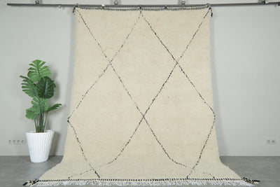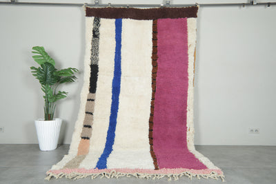 Handmade pink and white wool Moroccan rug - 3.9 ft x 5.6 ft
