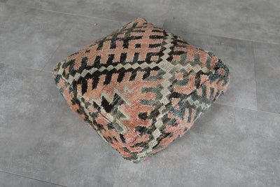 Striped kilim pouf - Handwoven Moroccan pouf