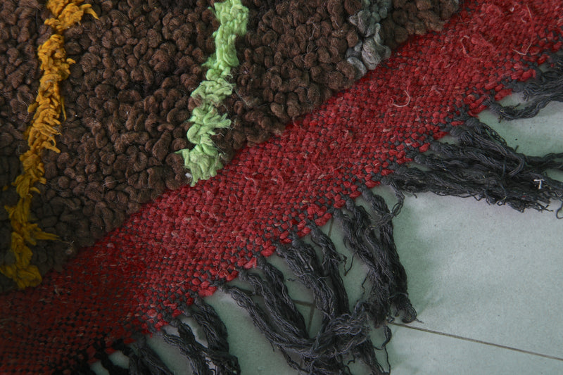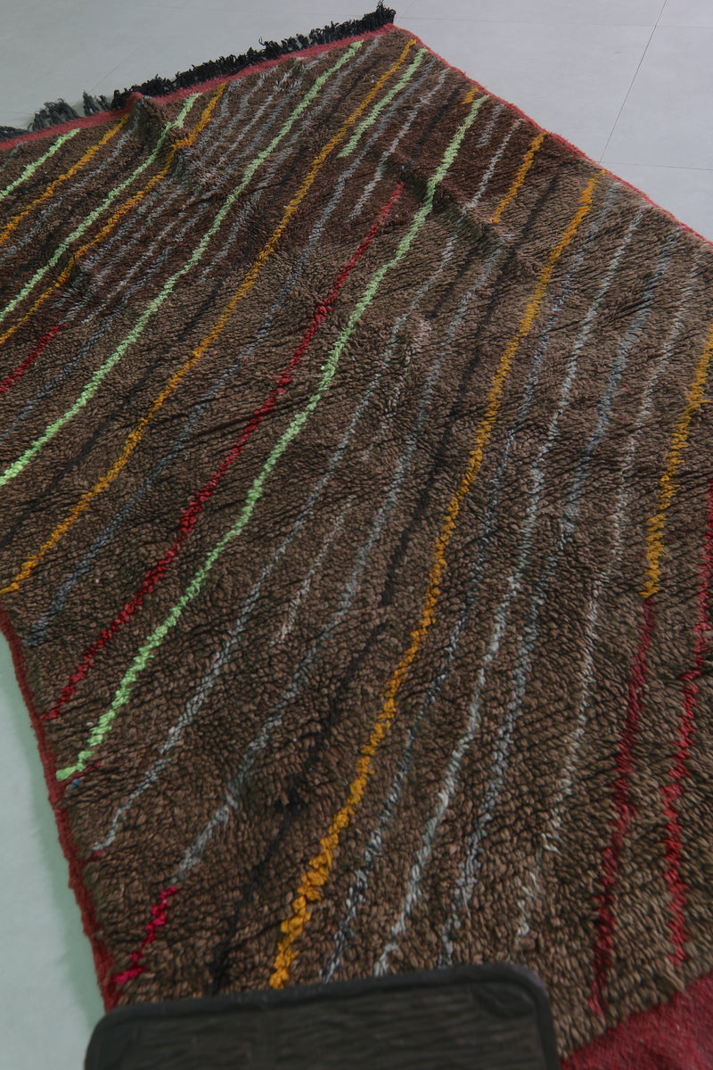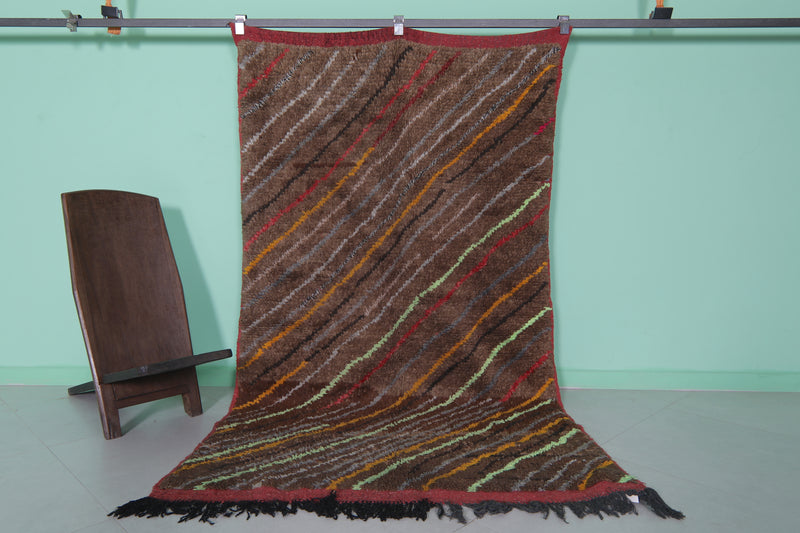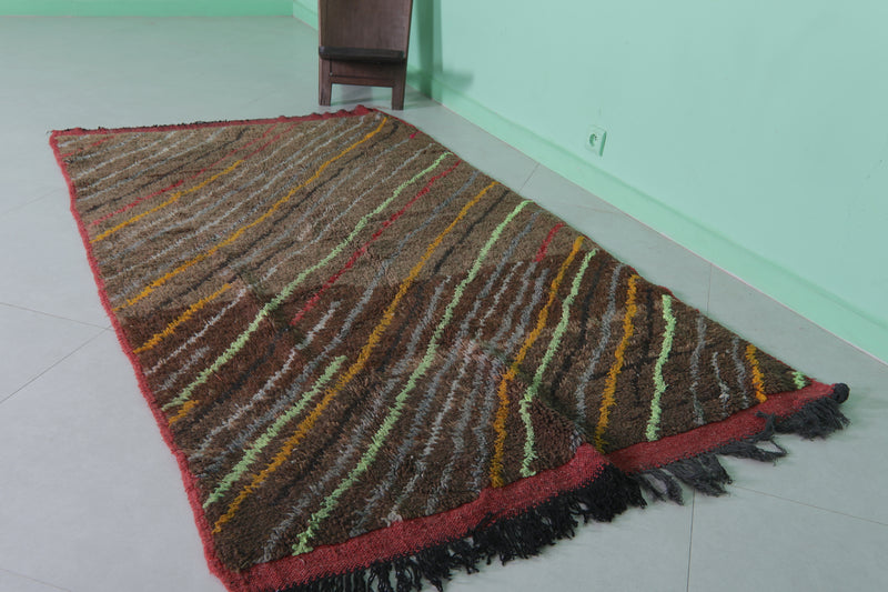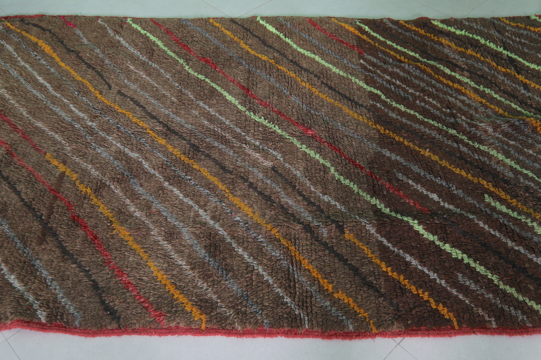 Enhance your home with this Brown Moroccan Rug, measuring 4.1 x 7.1 feet (127 CM x 217 CM). This handwoven piece features striking diagonal patterns in warm earthy tones, adding a touch of timeless Moroccan craftsmanship to any space.