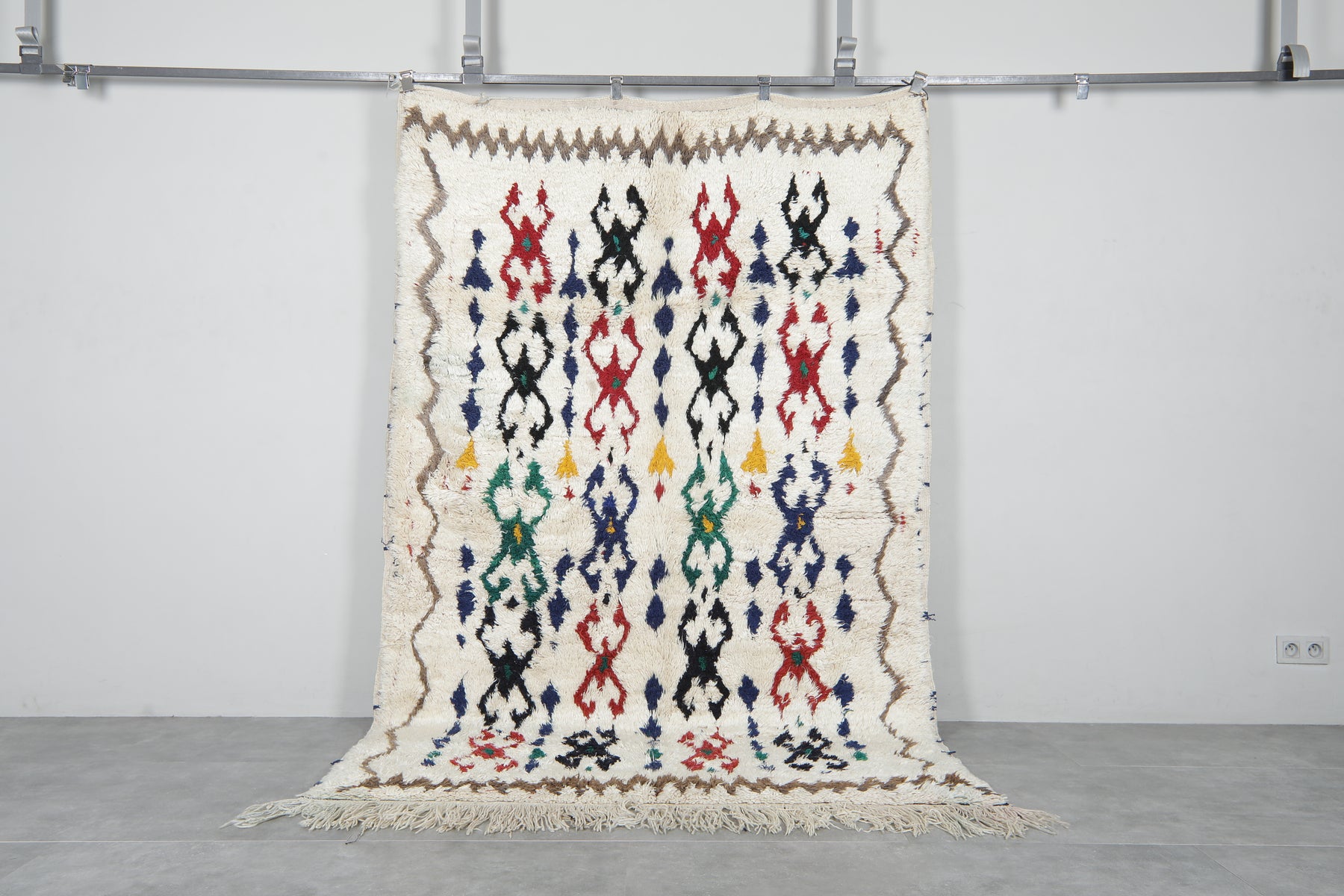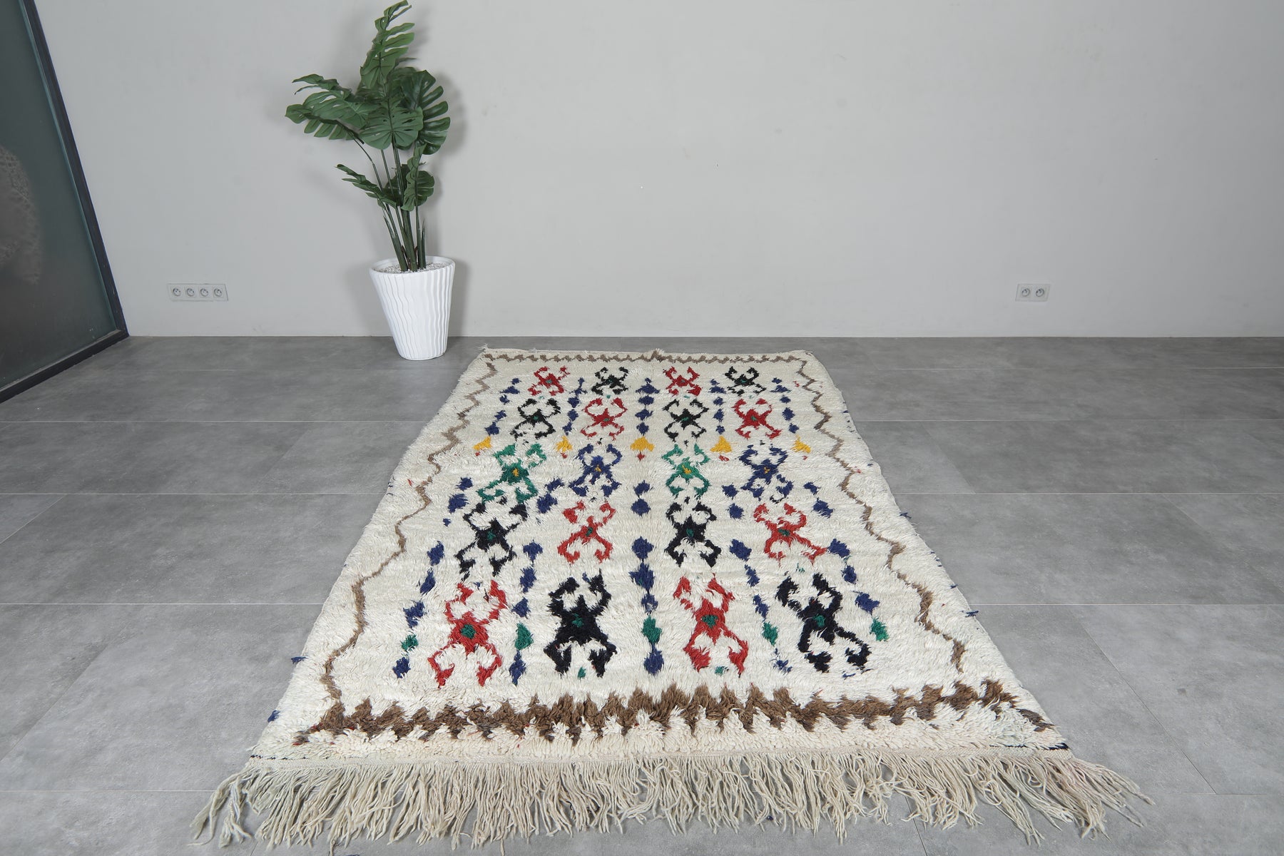 Elevate your interior with a touch of Moroccan flair. This hand-knotted Berber rug boasts a striking Azilal design, crafted from 100% natural wool for softness and durability. Add a bold statement to any room with its vibrant colors and intricate patterns. Shop now for a unique, authentic addition to your home.