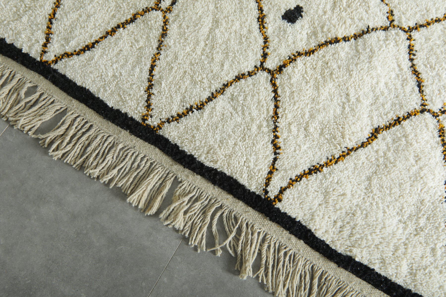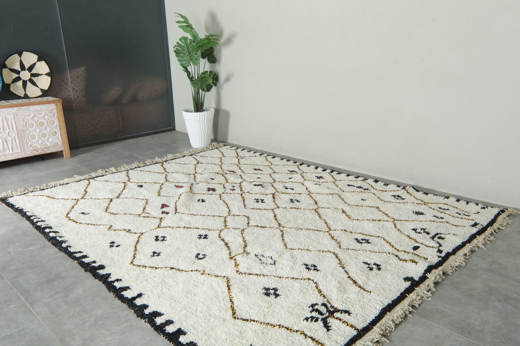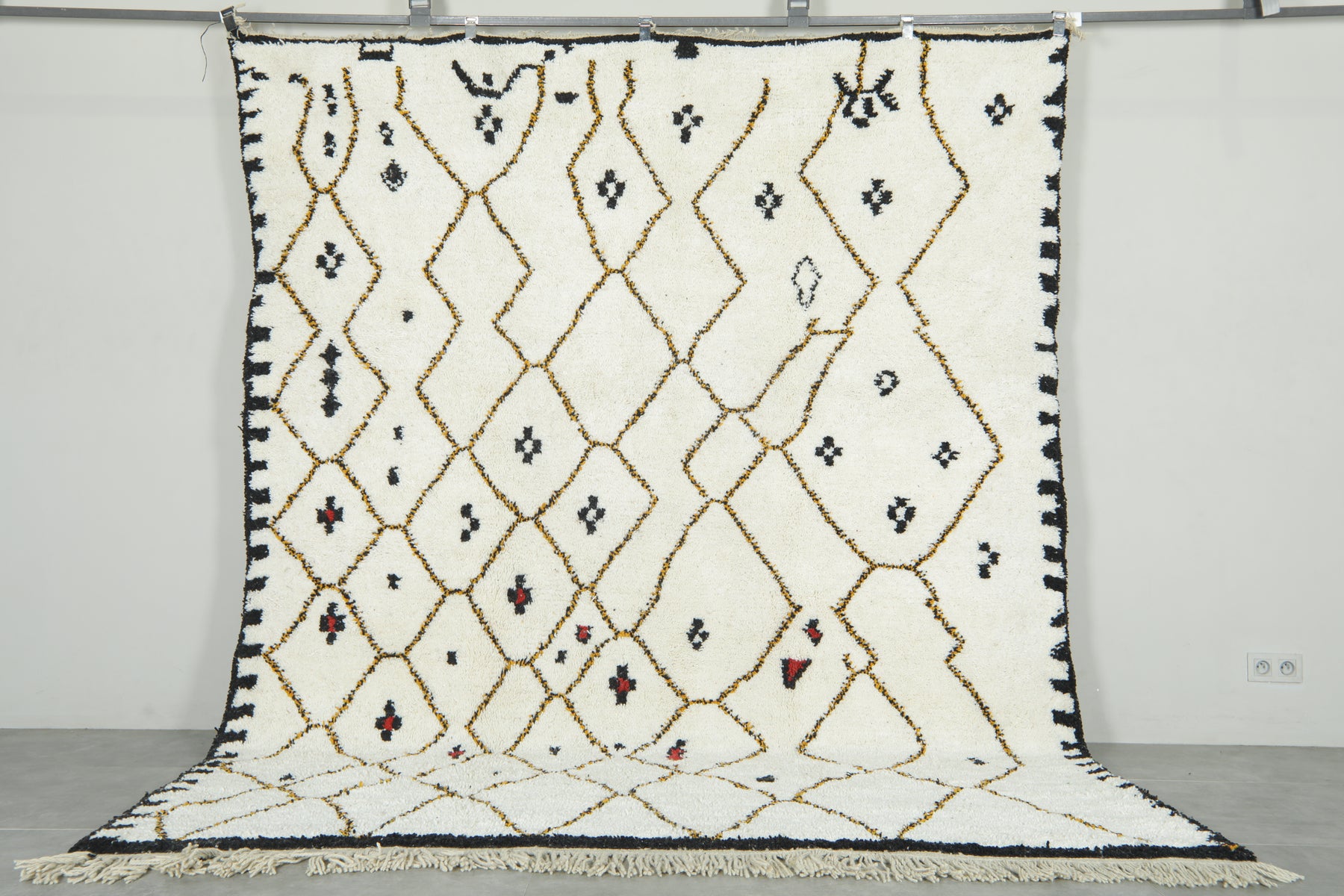 Handwoven Moroccan azilal rug – White wool rug - 7.8 ft x 10.2 ft