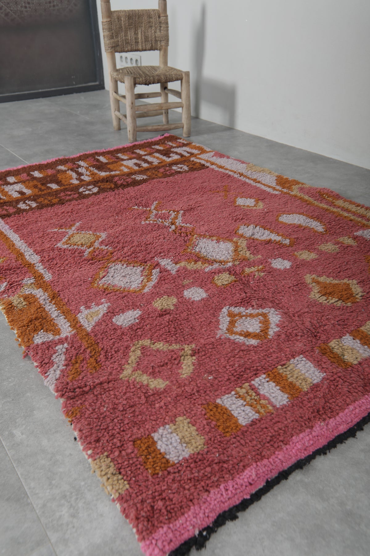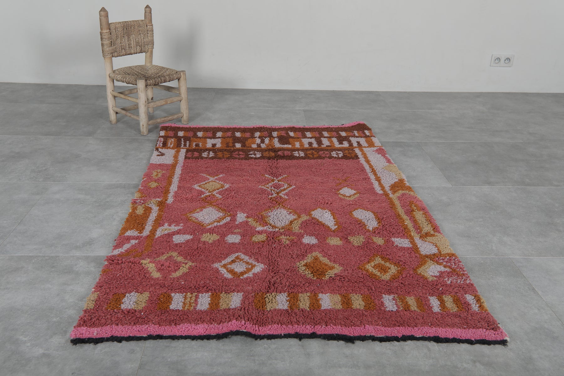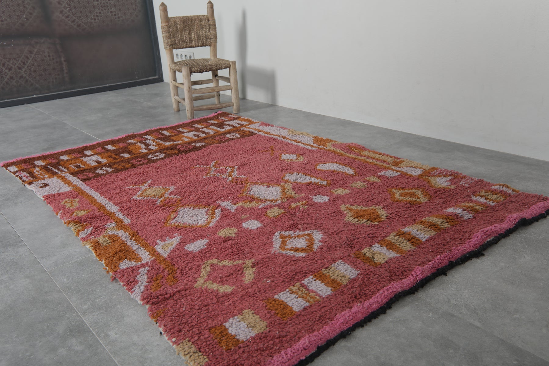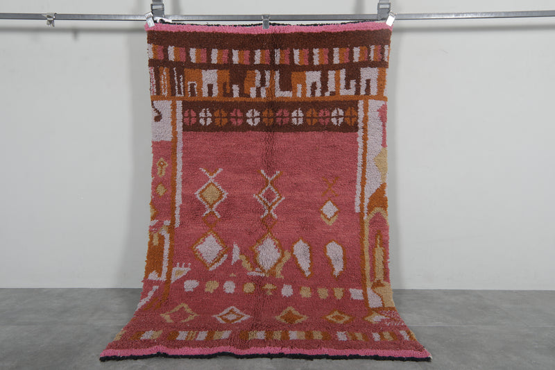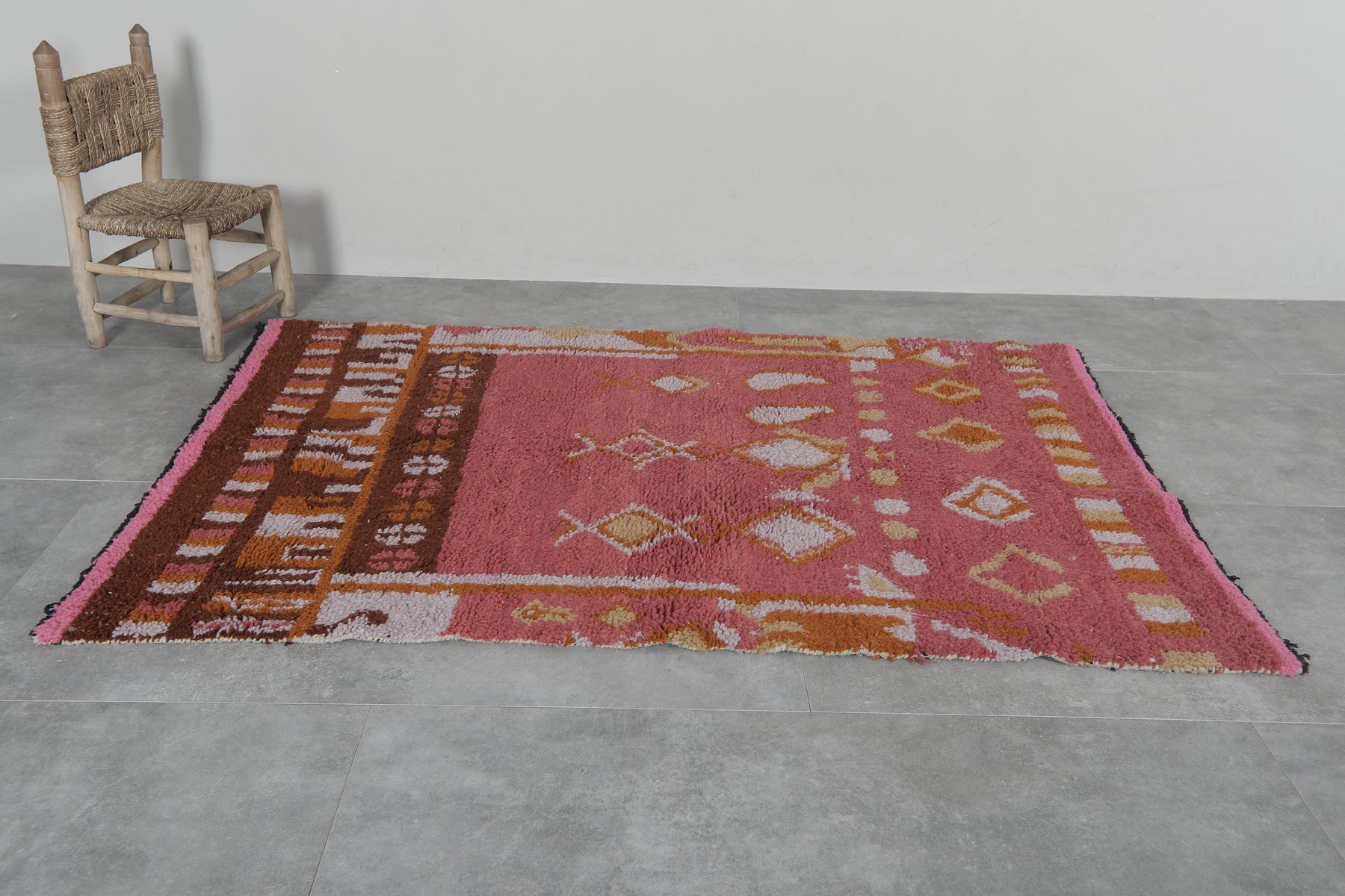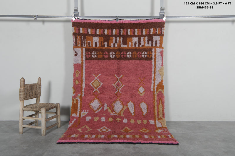 Add warmth and charm to your décor with this Moroccan Rug, sized at 3.9 x 6 feet (121 CM x 184 CM). Handwoven from premium natural wool, this rug features a stunning blend of traditional motifs and earthy tones, highlighted by shades of pink, brown, and beige.