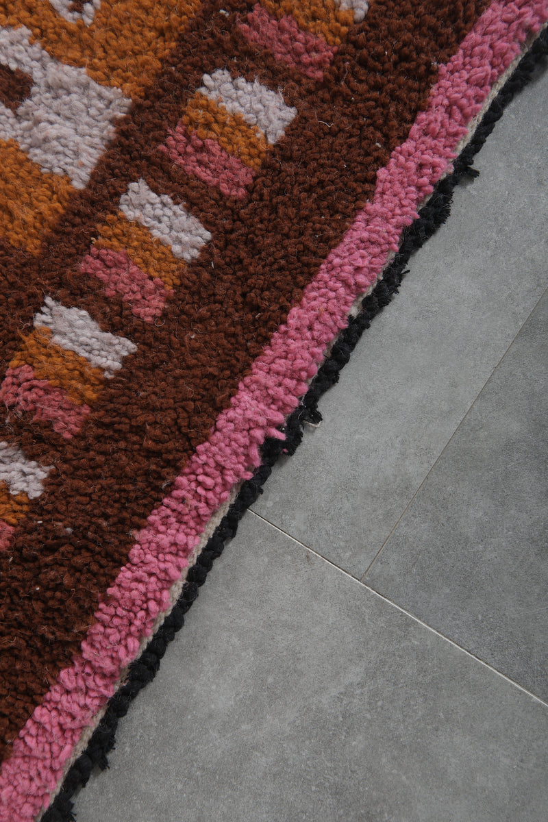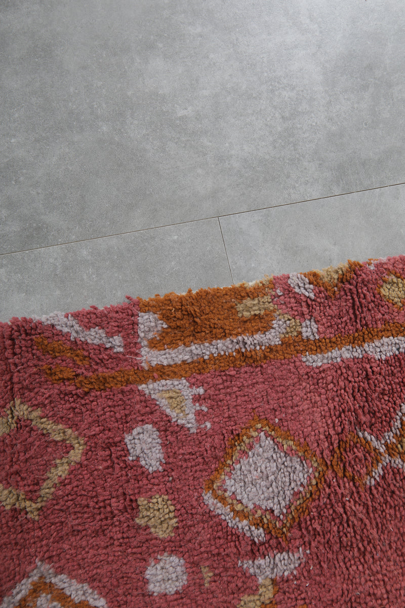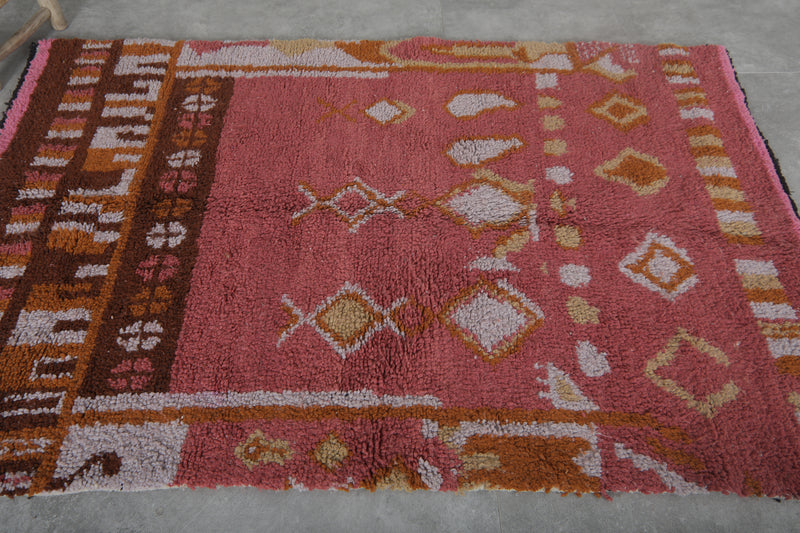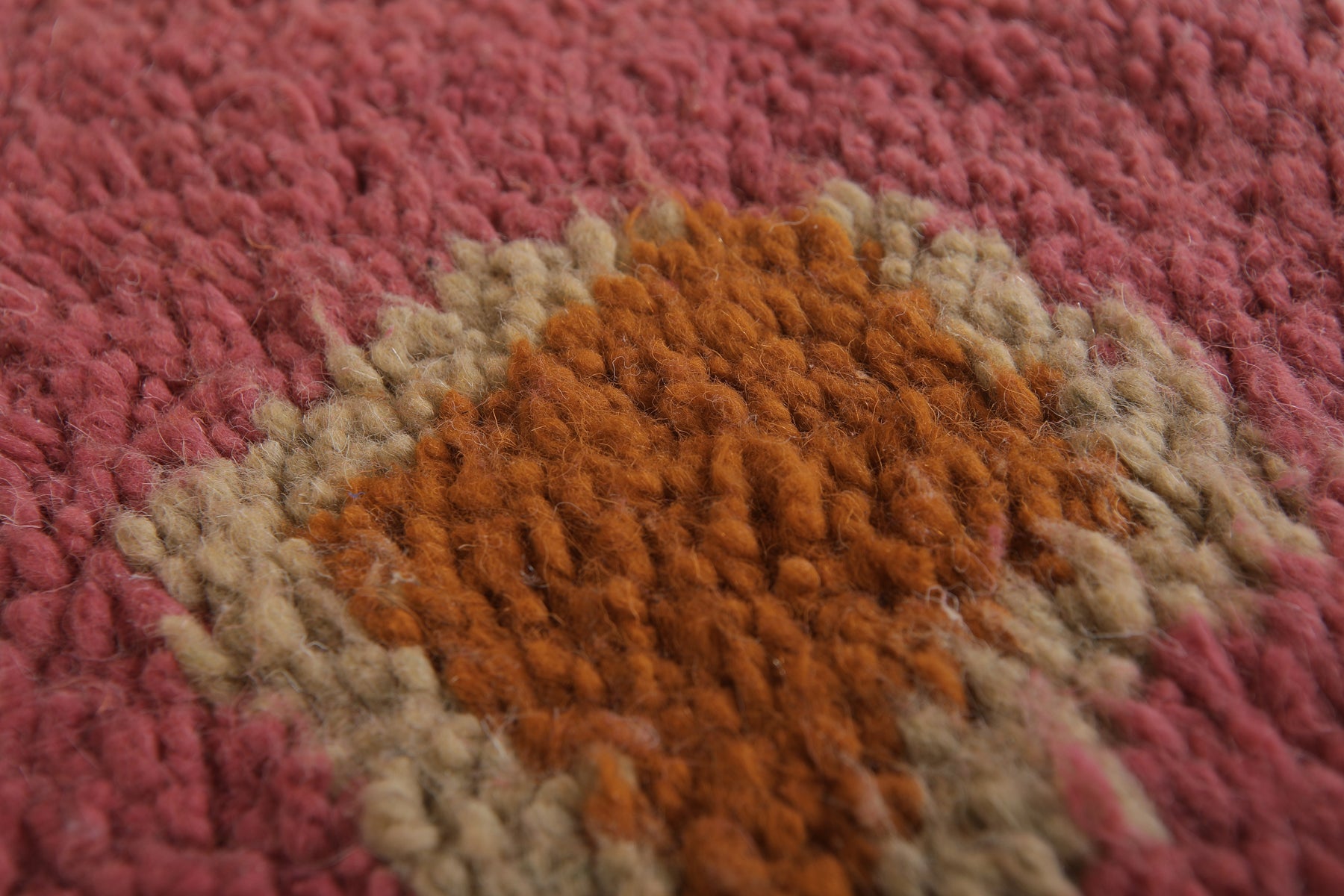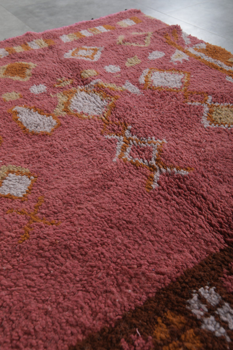 Add warmth and charm to your décor with this Moroccan Rug, sized at 3.9 x 6 feet (121 CM x 184 CM). Handwoven from premium natural wool, this rug features a stunning blend of traditional motifs and earthy tones, highlighted by shades of pink, brown, and beige.