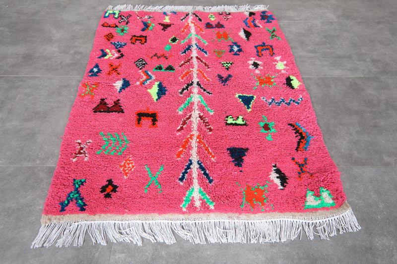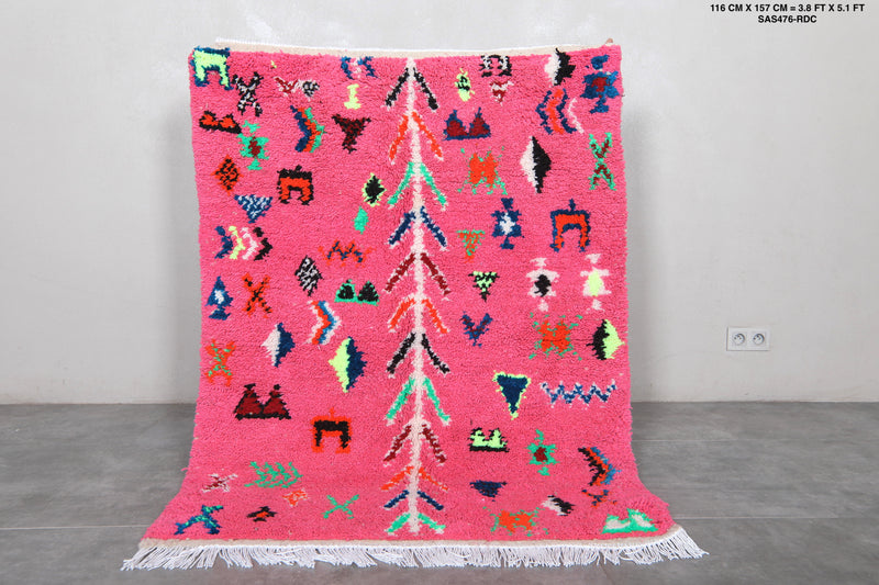 Pink Moroccan Rug - 3.8 X 5.1 Feet | Boho Chic Design - Azilal rugs