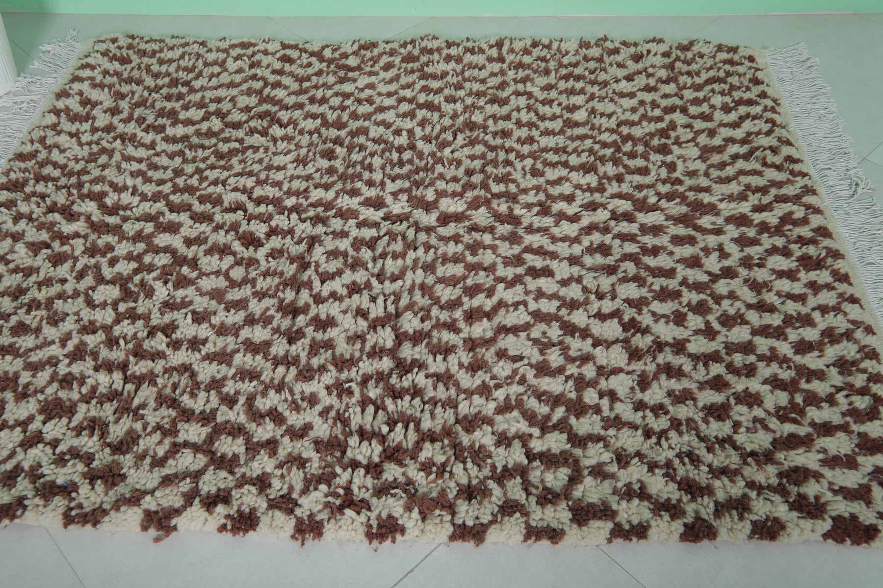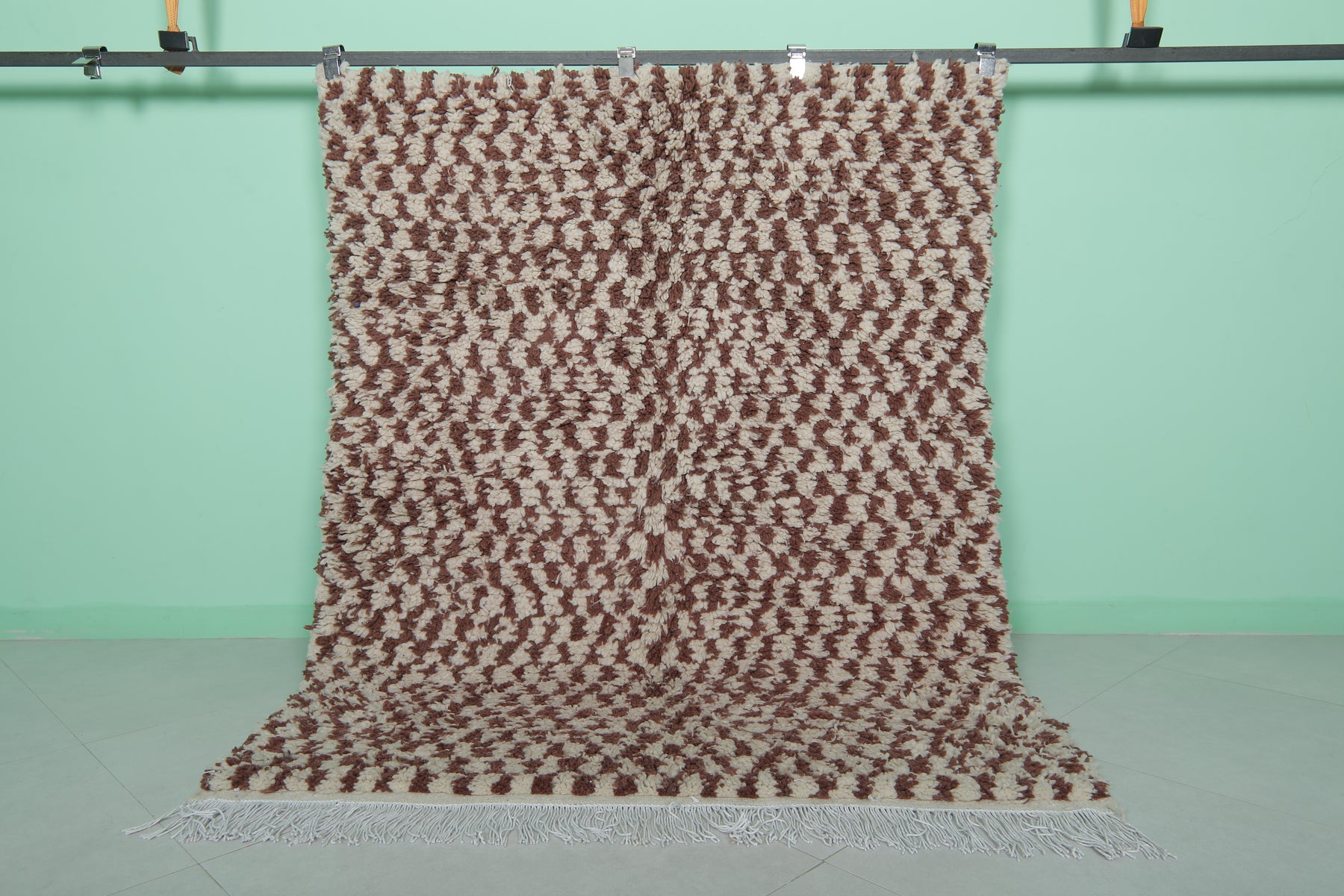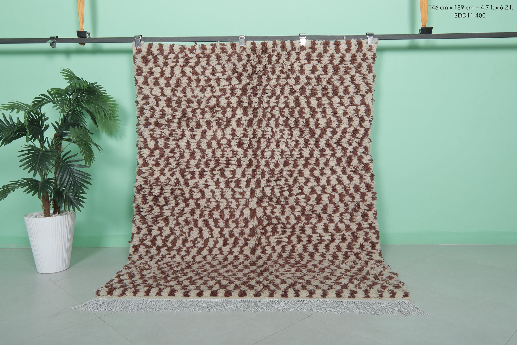 Enhance your home with this exquisite Moroccan Berber Rug, sized at 4.7 x 6.2 feet (146 CM x 189 CM). Featuring a striking tribal pattern in warm earthy tones, this handmade rug is a timeless statement piece.