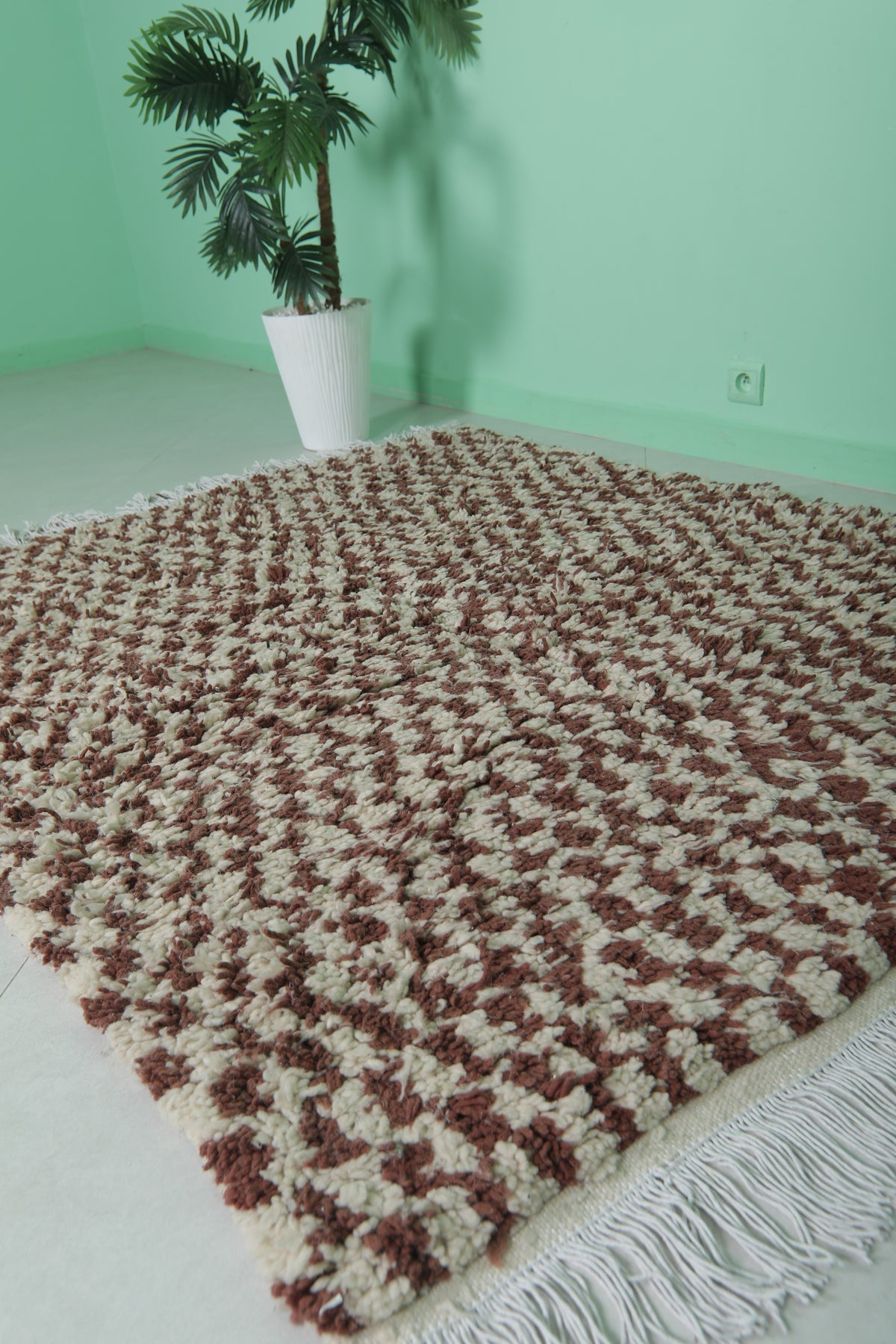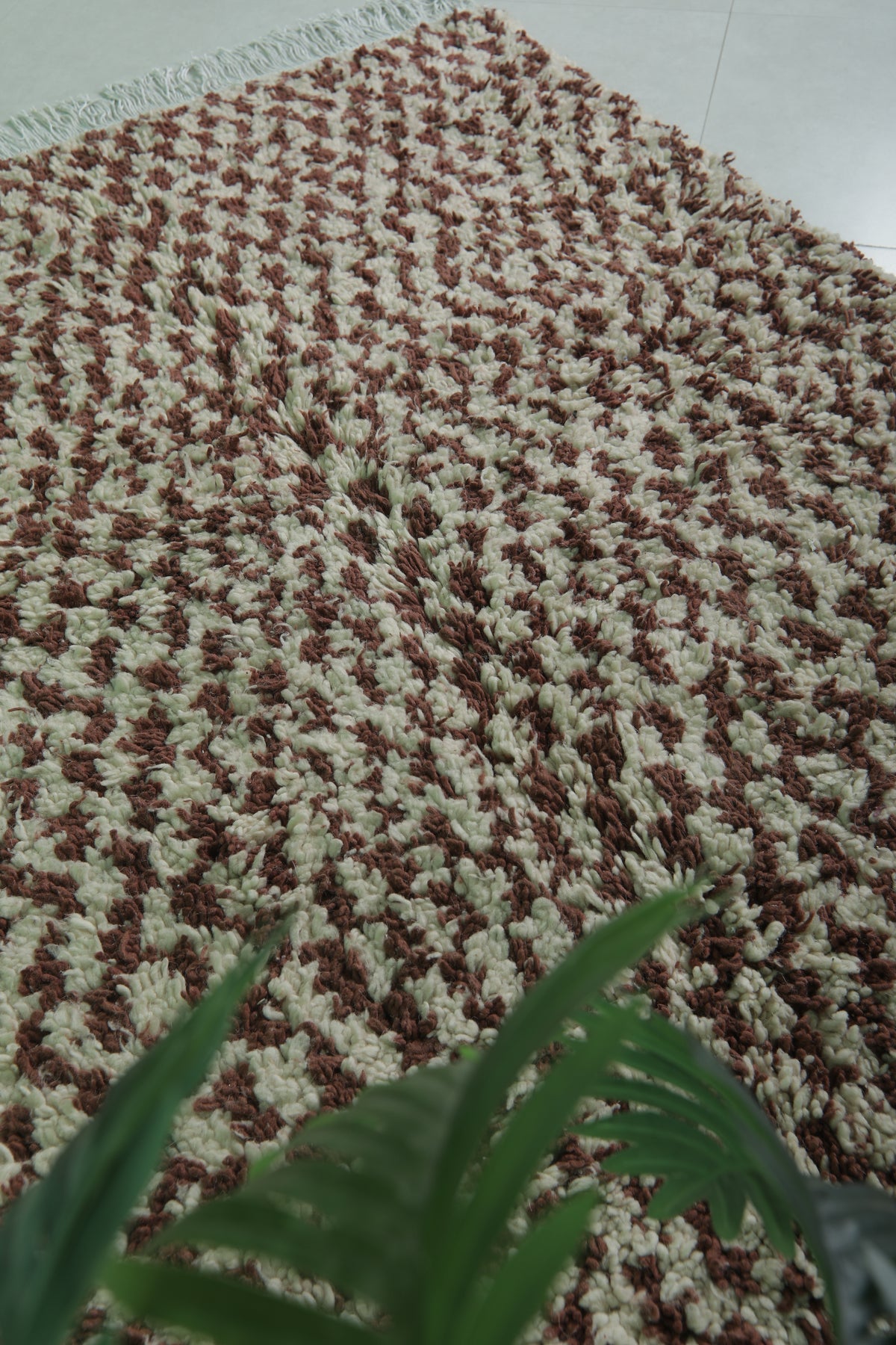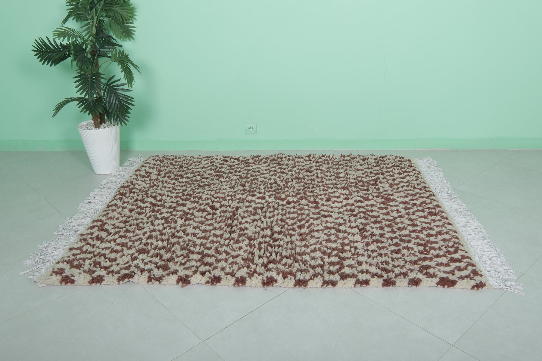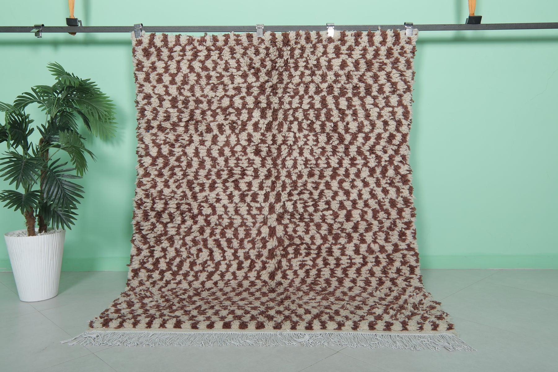 Enhance your home with this exquisite Moroccan Berber Rug, sized at 4.7 x 6.2 feet (146 CM x 189 CM). Featuring a striking tribal pattern in warm earthy tones, this handmade rug is a timeless statement piece.