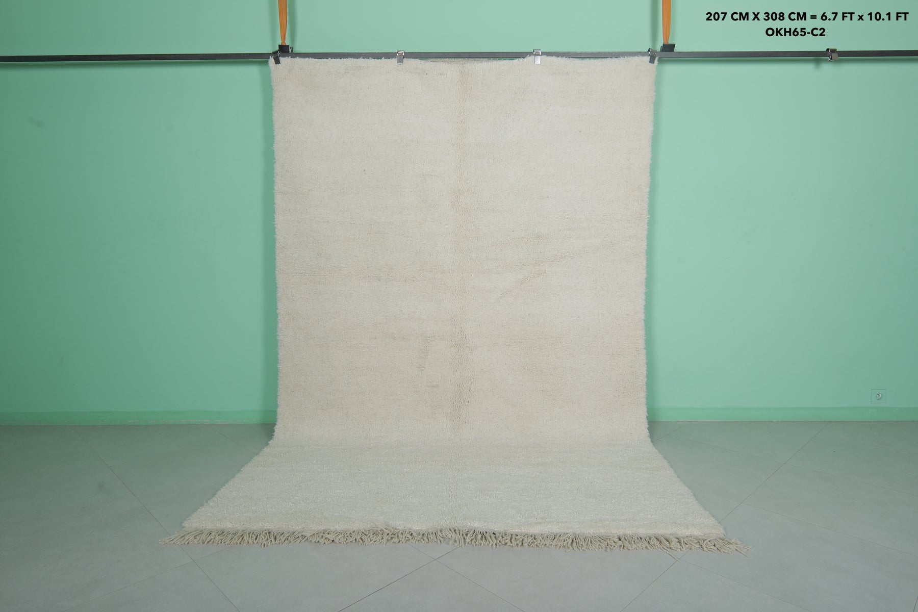 Introduce warmth and elegance to your home with this Moroccan Rug 6.7 x 10.1 ft, handwoven from luxurious wool in a creamy ivory shade. With its minimalist design and plush texture, this versatile rug enhances any space, from living rooms to bedrooms and offices.