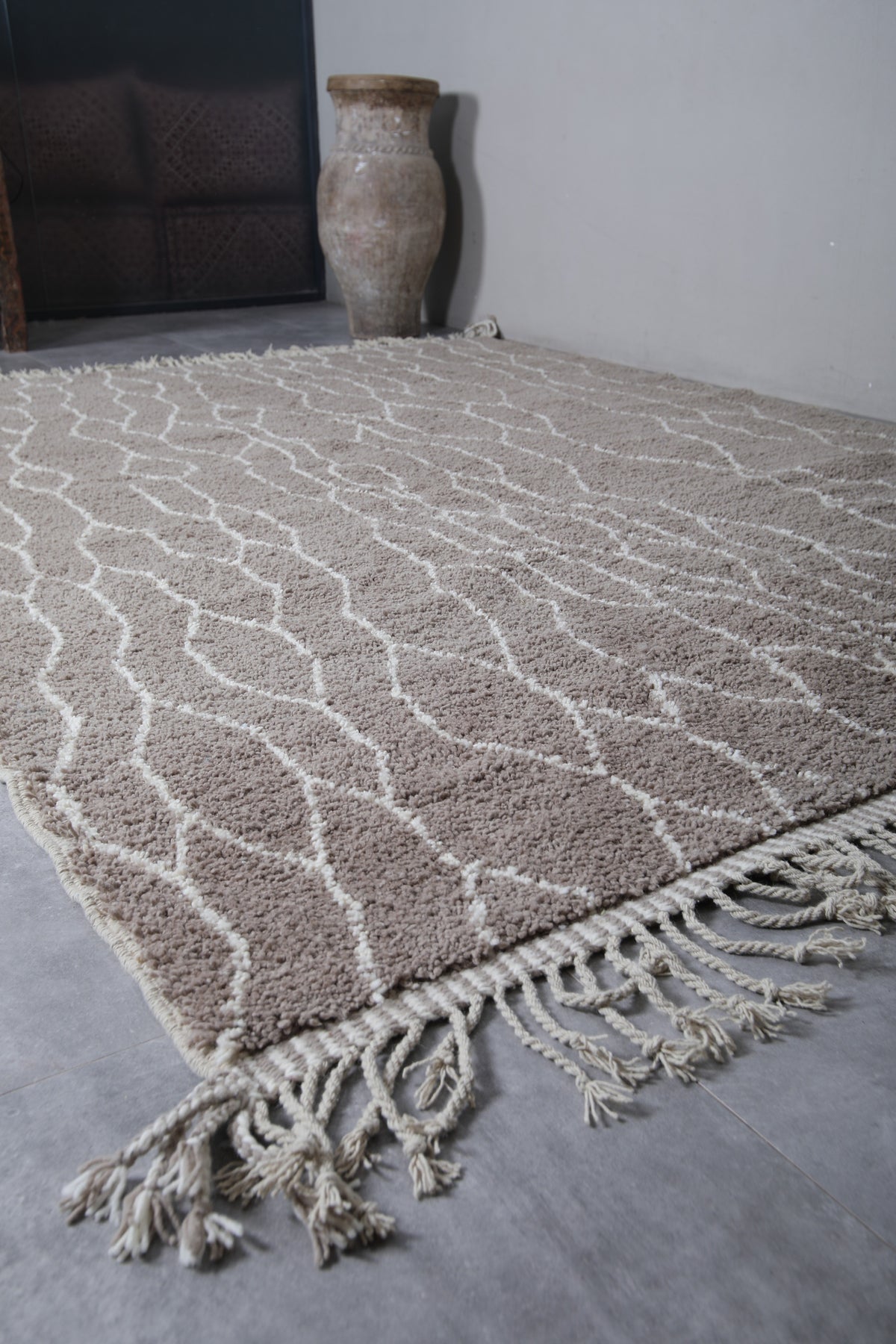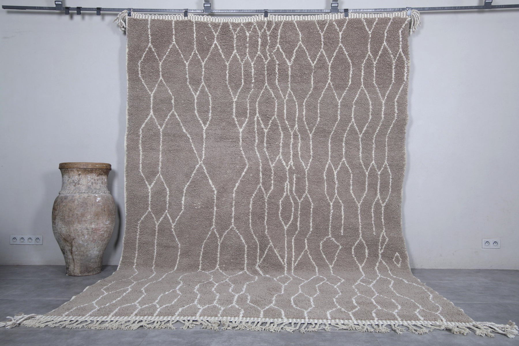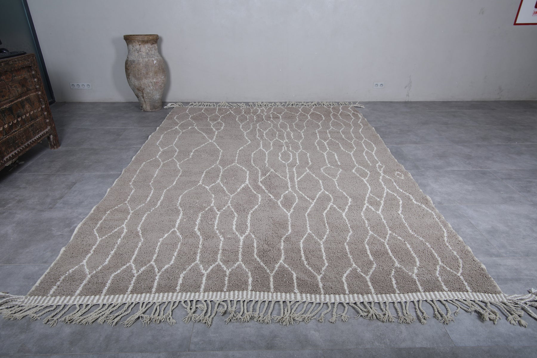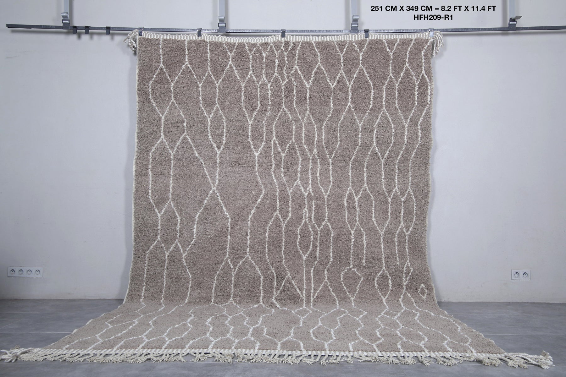 Discover the timeless beauty of this Moroccan traditional rug, meticulously handwoven from premium natural wool. Measuring 8.2 x 11.4 feet (251 CM x 349 CM), this large area rug features an intricate lattice design in neutral tones, adding an elegant touch to any living room, dining space, or bedroom. Its soft texture and durable construction make it perfect for both style and comfort. Enhance your home with this authentic Moroccan piece, blending traditional craftsmanship with modern sophistication.