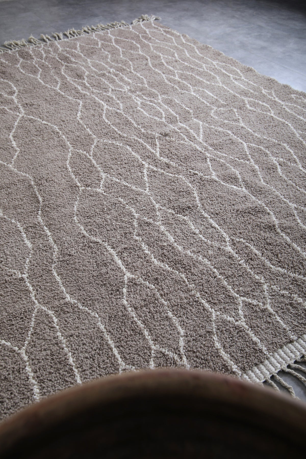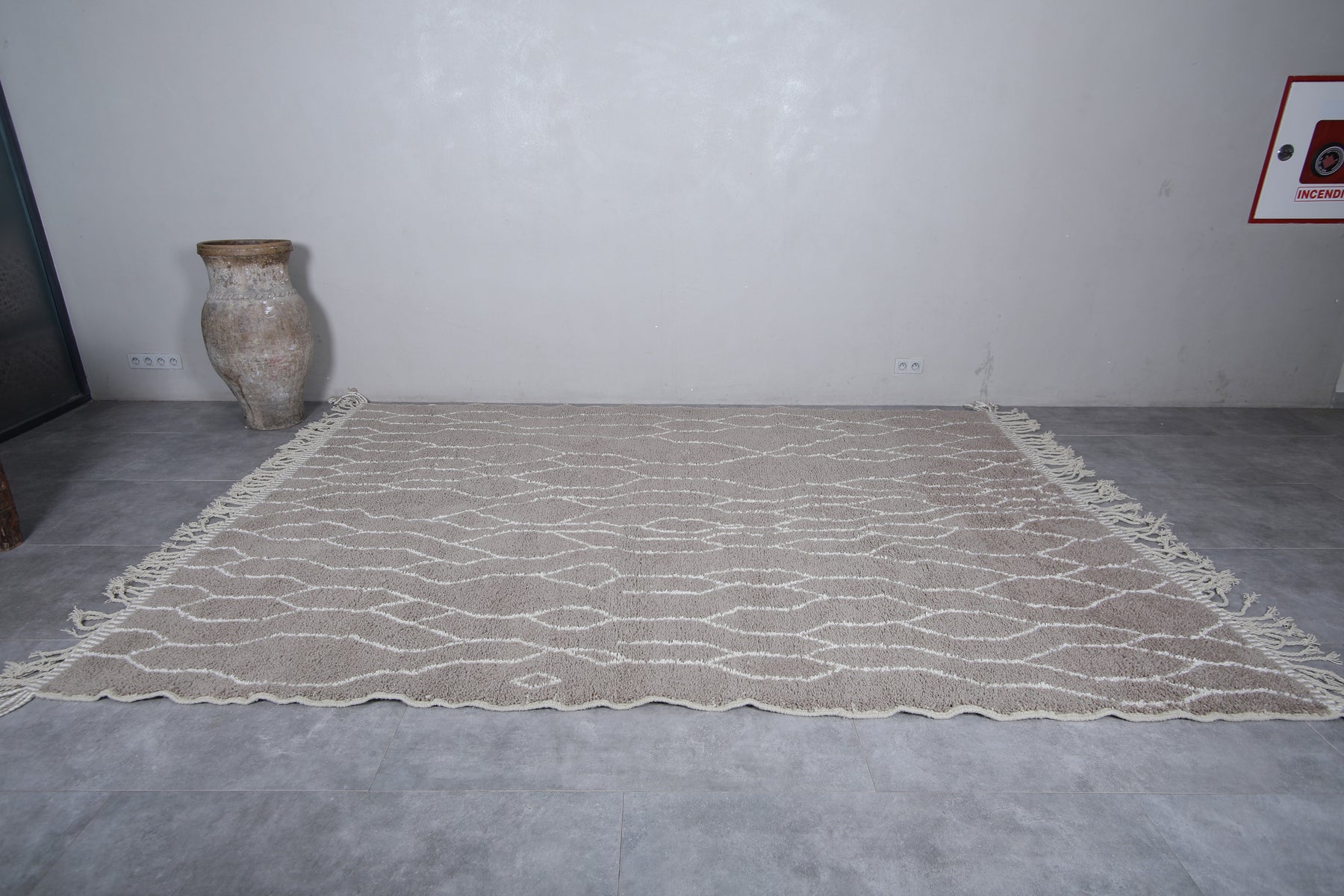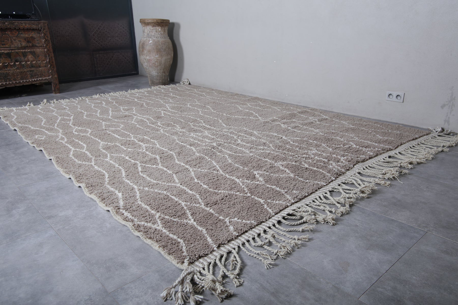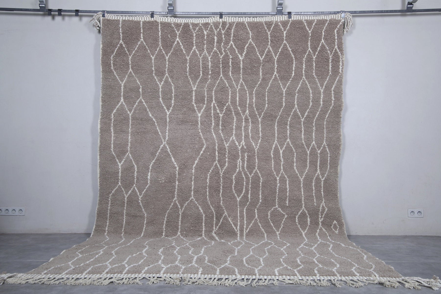 Discover the timeless beauty of this Moroccan traditional rug, meticulously handwoven from premium natural wool. Measuring 8.2 x 11.4 feet (251 CM x 349 CM), this large area rug features an intricate lattice design in neutral tones, adding an elegant touch to any living room, dining space, or bedroom. Its soft texture and durable construction make it perfect for both style and comfort. Enhance your home with this authentic Moroccan piece, blending traditional craftsmanship with modern sophistication.