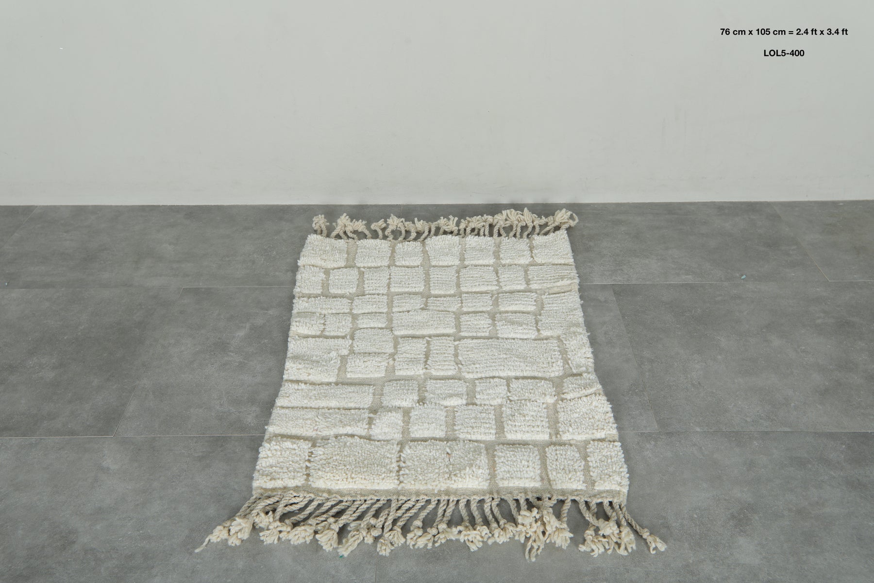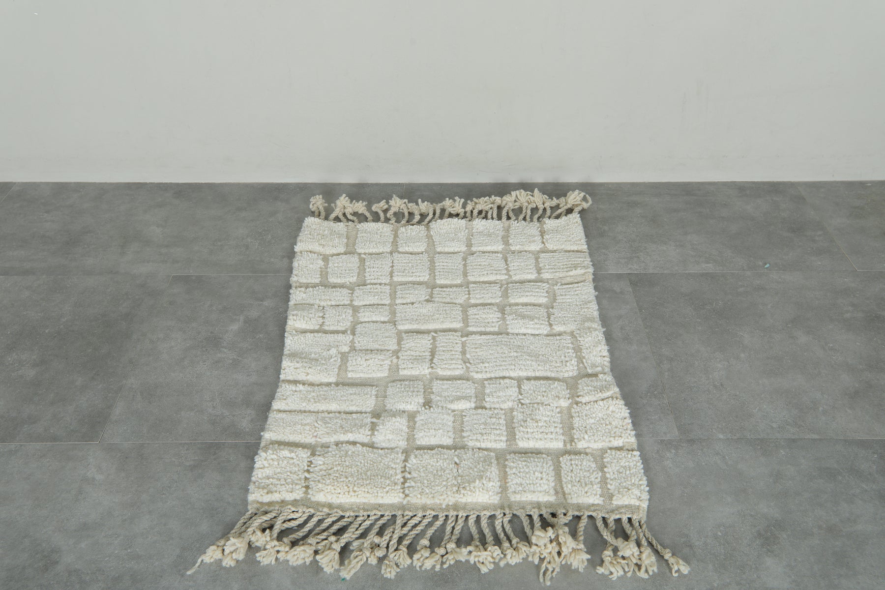 Small white Moroccan rug - Textured checkered pattern accent mat - 2.4 ft x 3.4 ft