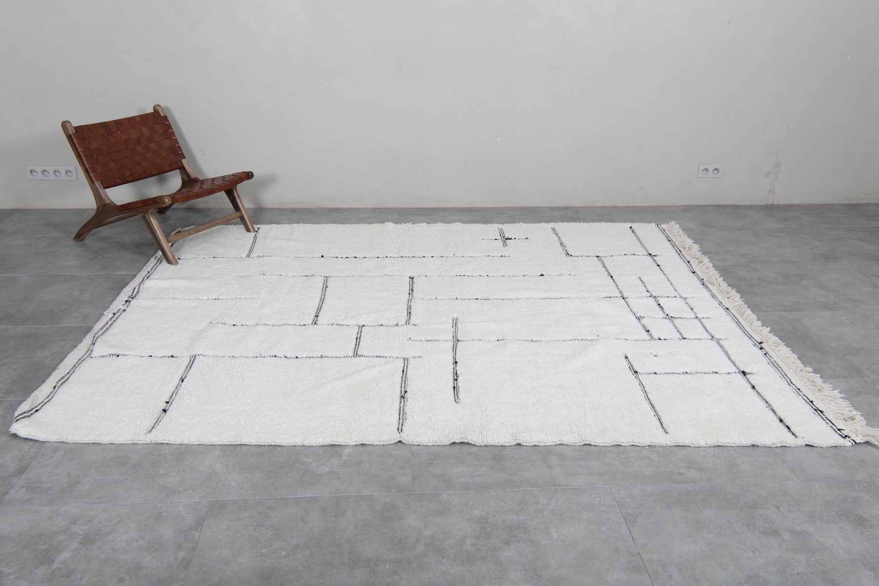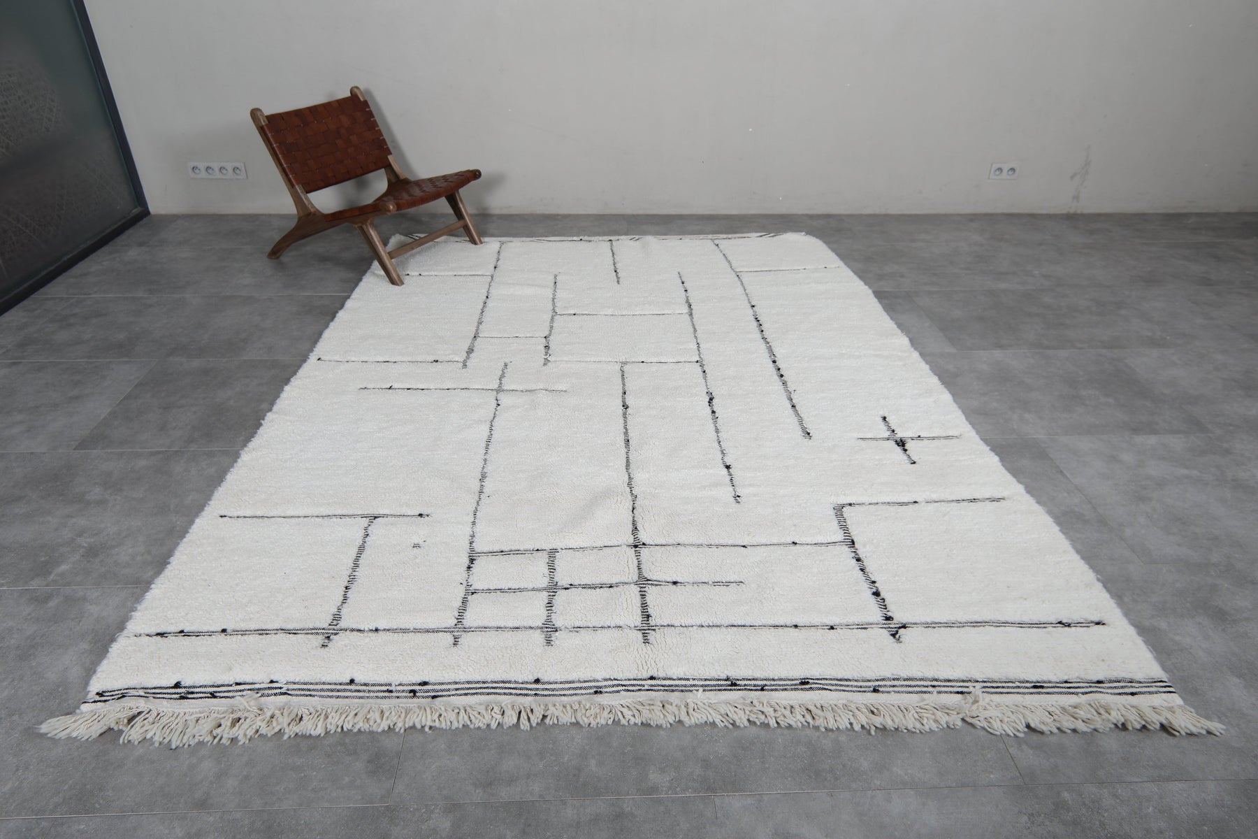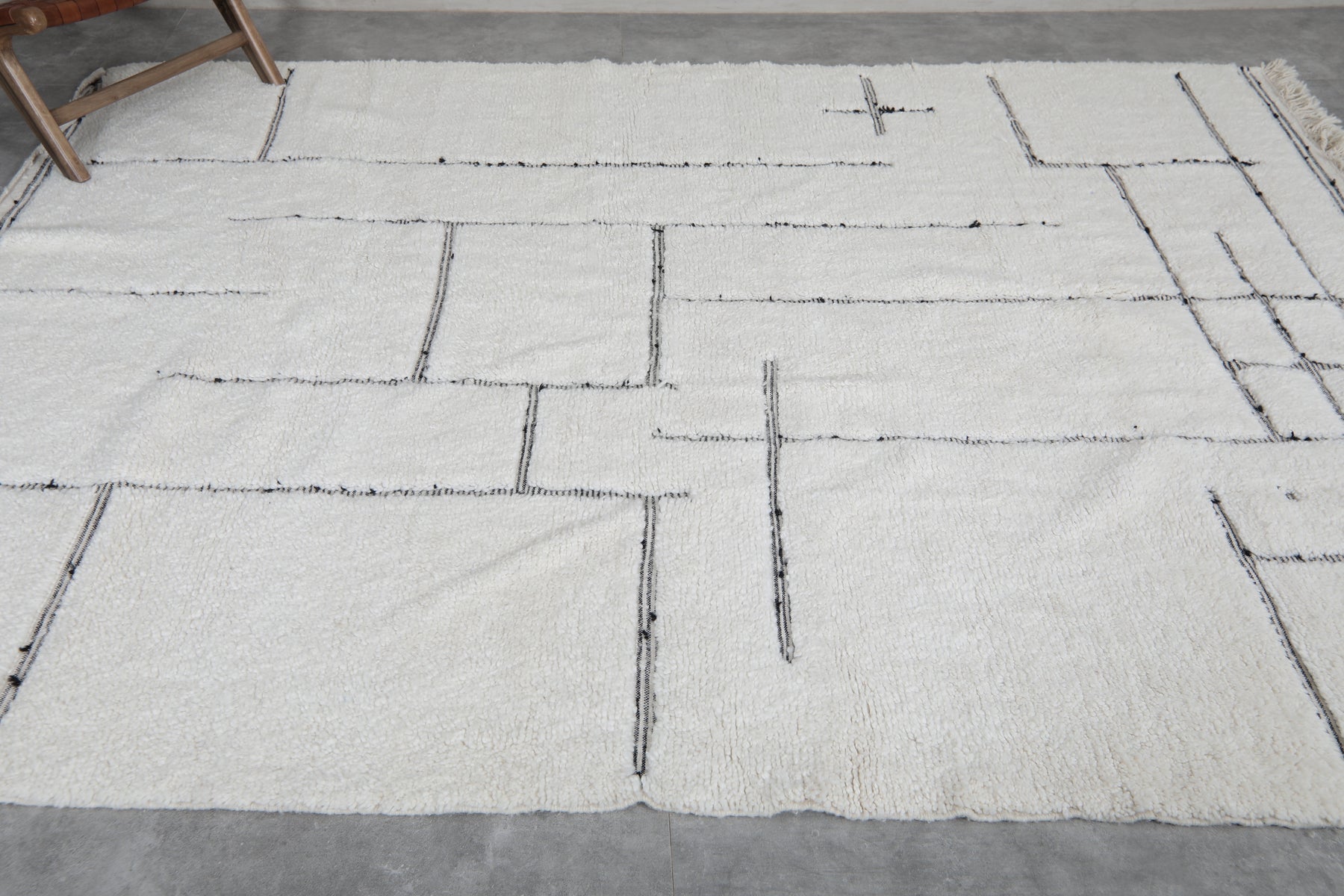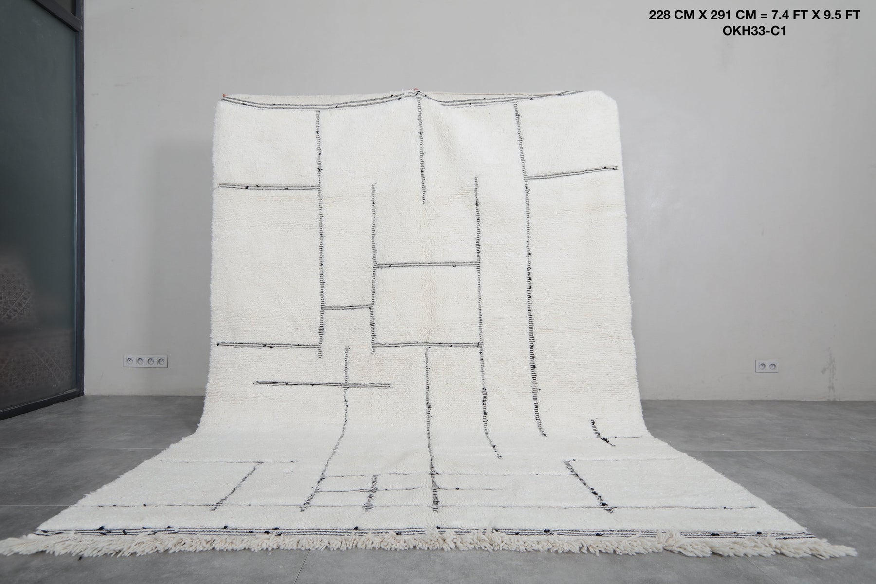 Beni Ourain Moroccan Rug - 7.4 x 9.5 Feet | Handwoven Wool with Geometric Pattern - Beni ourain rugs