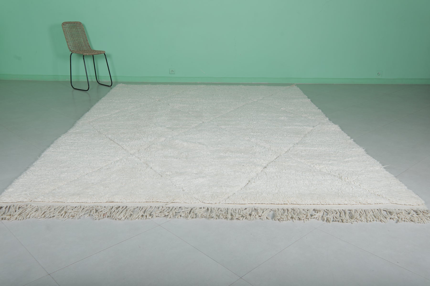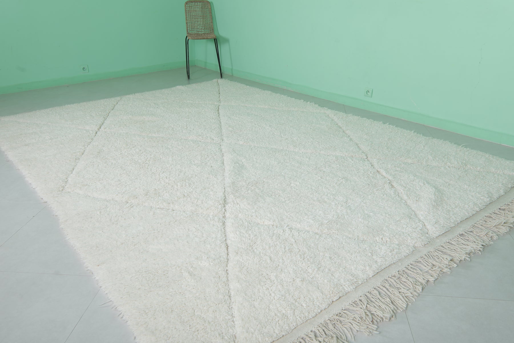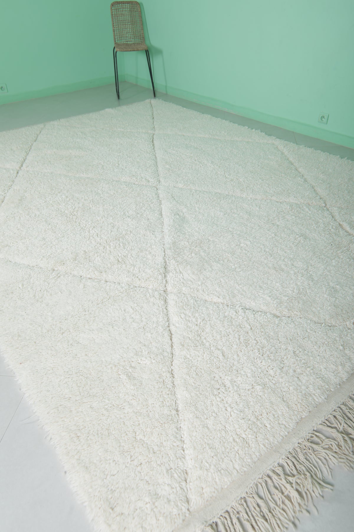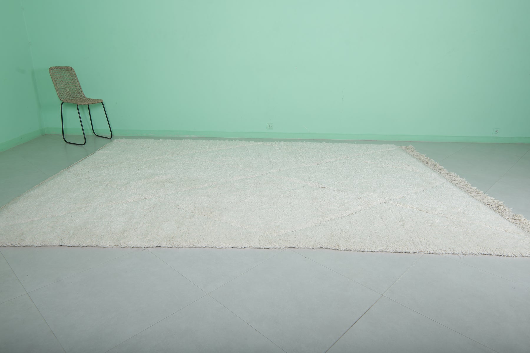 Enhance your space with this expansive Beni Ourain Moroccan Wool Rug 8.2 x 11.8 ft, featuring a classic diamond design in a soft ivory tone. Handwoven by skilled Moroccan artisans, this rug blends timeless elegance with superior craftsmanship.