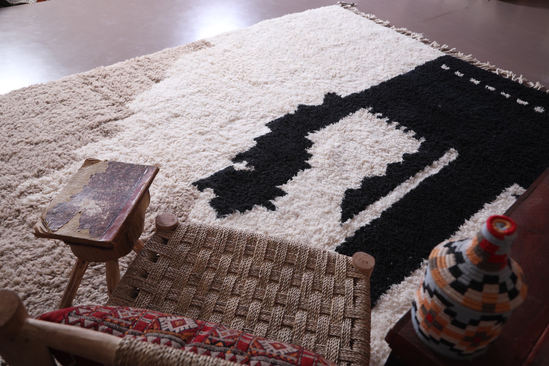 Add bold contrast and artisan depth to your home with this Beni Ourain Moroccan rug—handwoven for tactile beauty and statement-making charm.