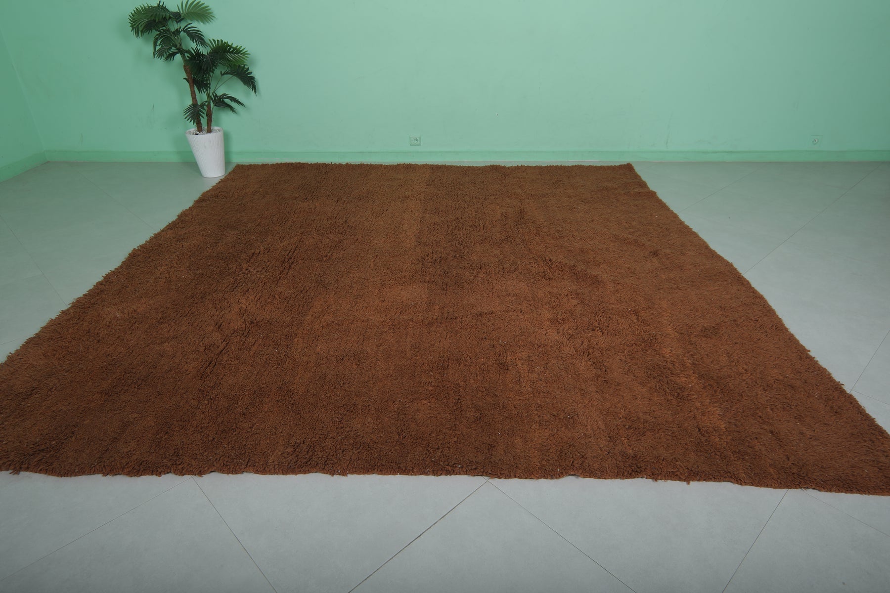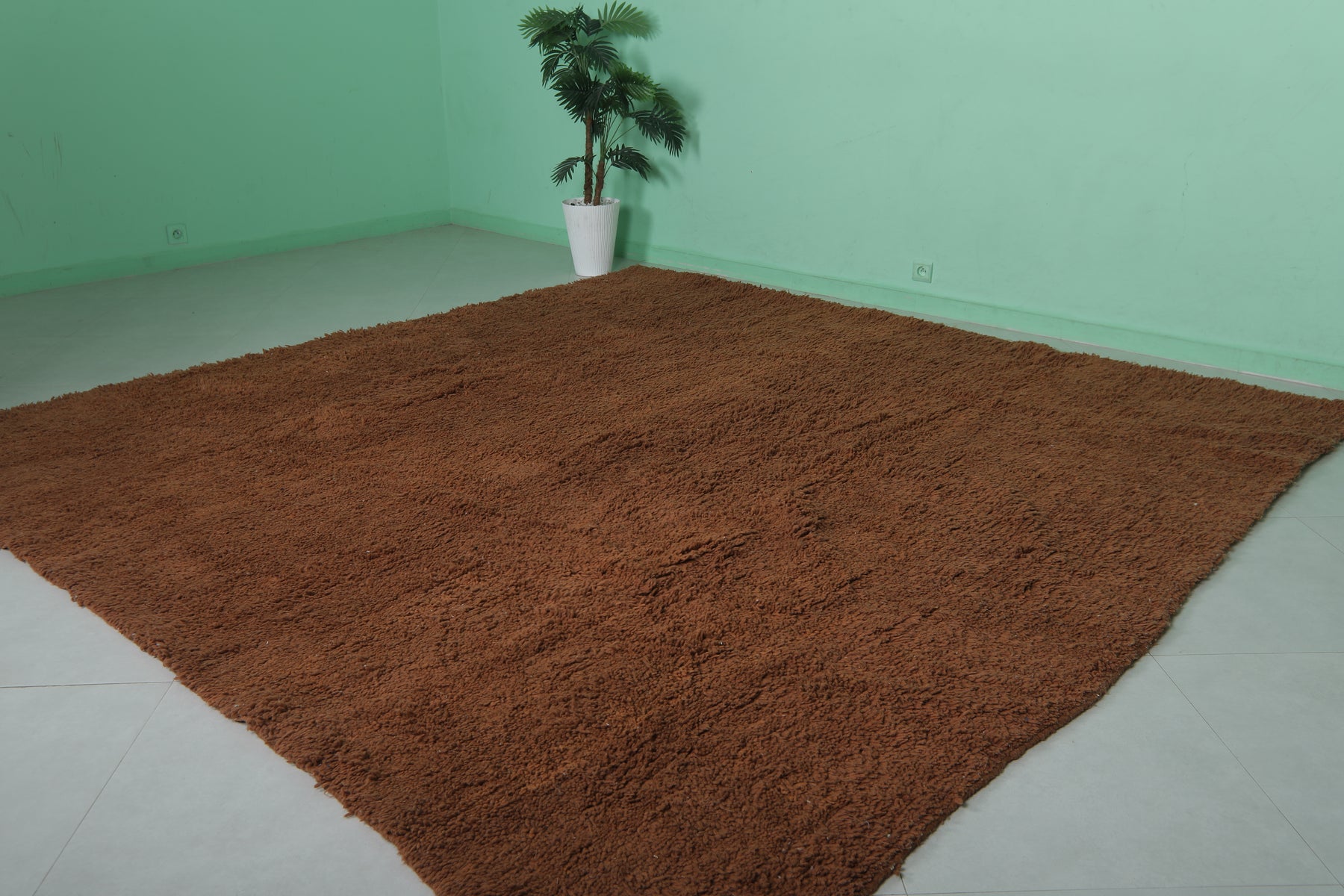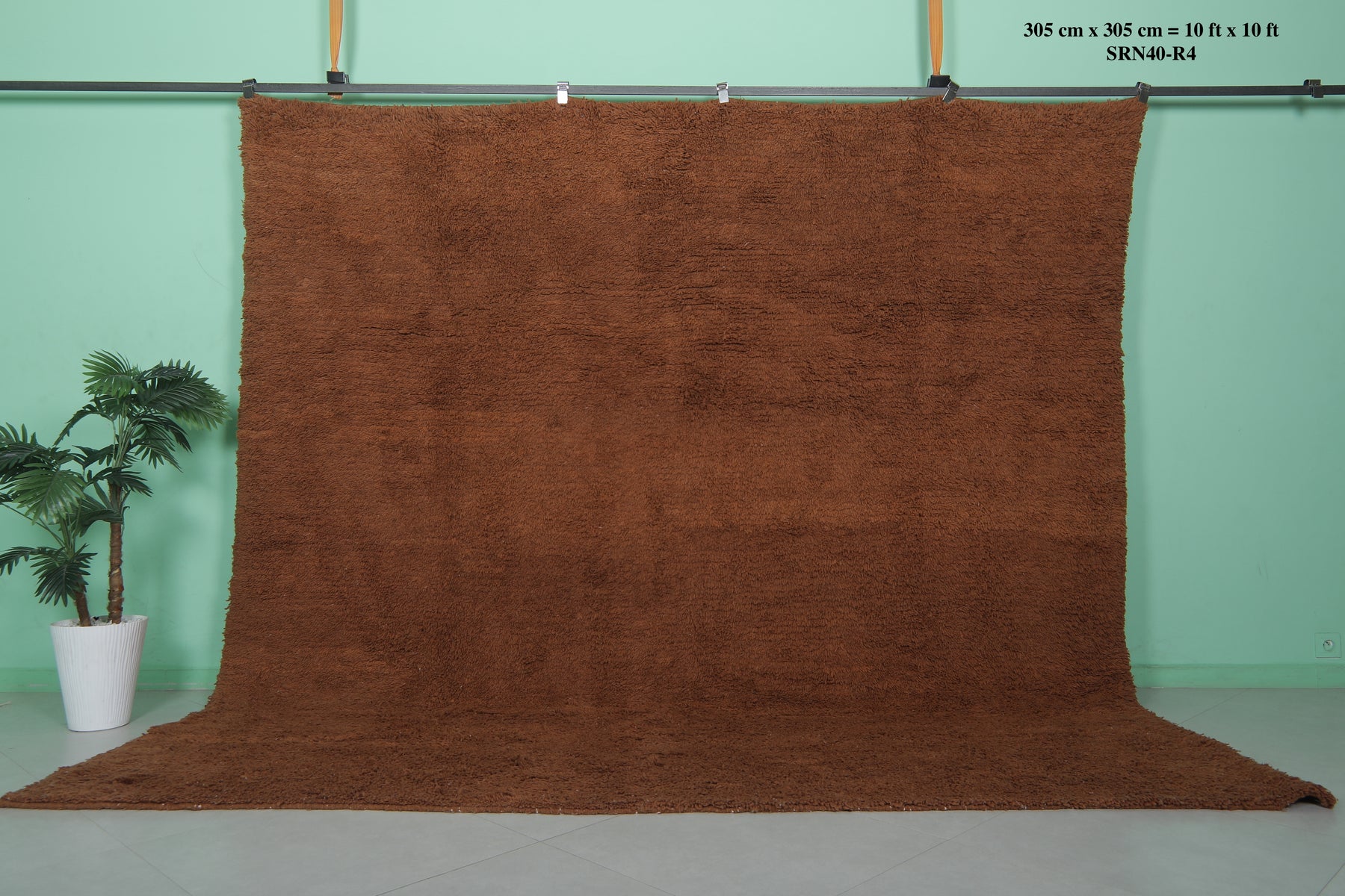 Handmade beni ourain rug - 10 x 10 Feet square | Luxurious brown wool