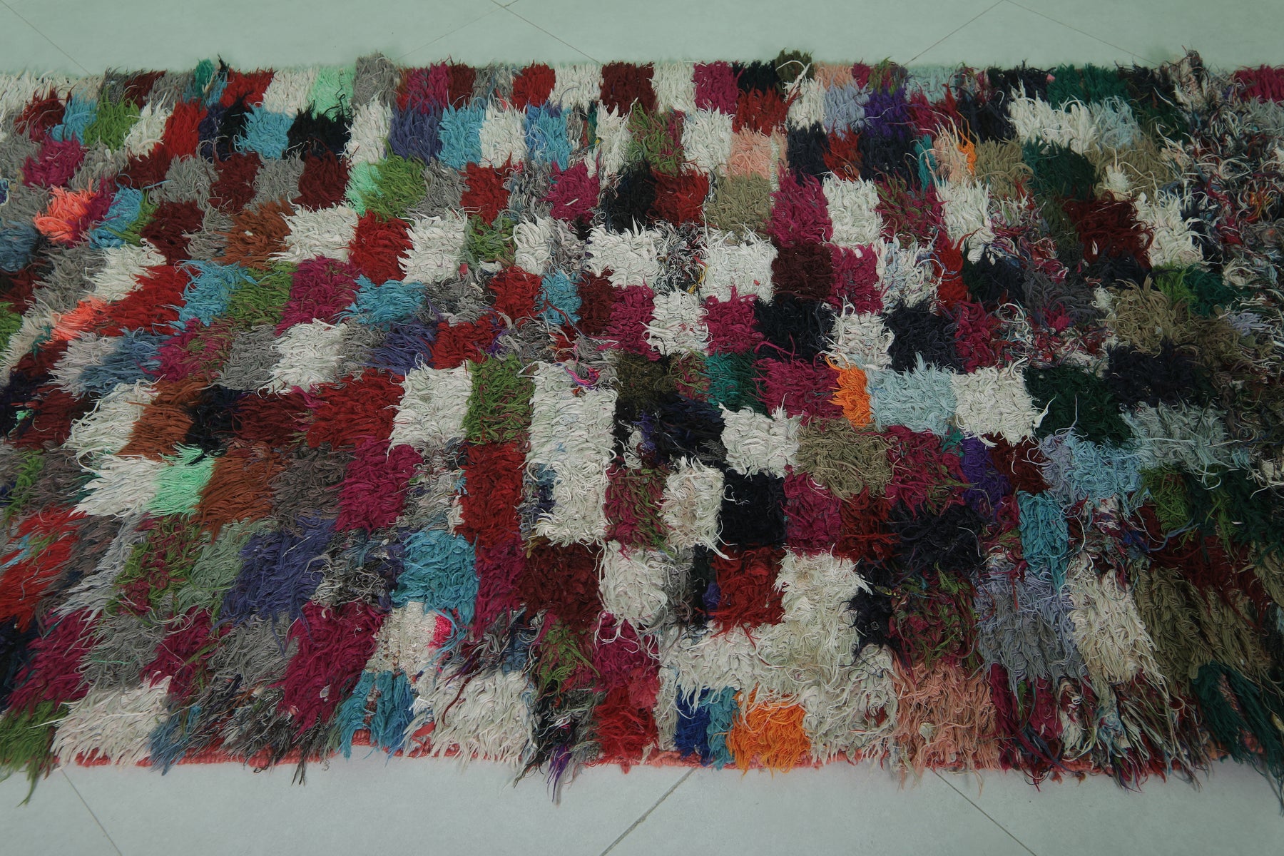 Enhance your interiors with this stunning Boucherouite Runner Rug, measuring 3.9 FT x 8.9 FT. Carefully handwoven by Moroccan artisans, this rug features an intricate patchwork of vibrant colors and textures, crafted from eco-friendly upcycled textiles. Its long and narrow design makes it perfect for hallways, entryways, or elongated spaces. This rug effortlessly combines Moroccan tradition, sustainability, and modern style, creating a warm and inviting atmosphere in any home.