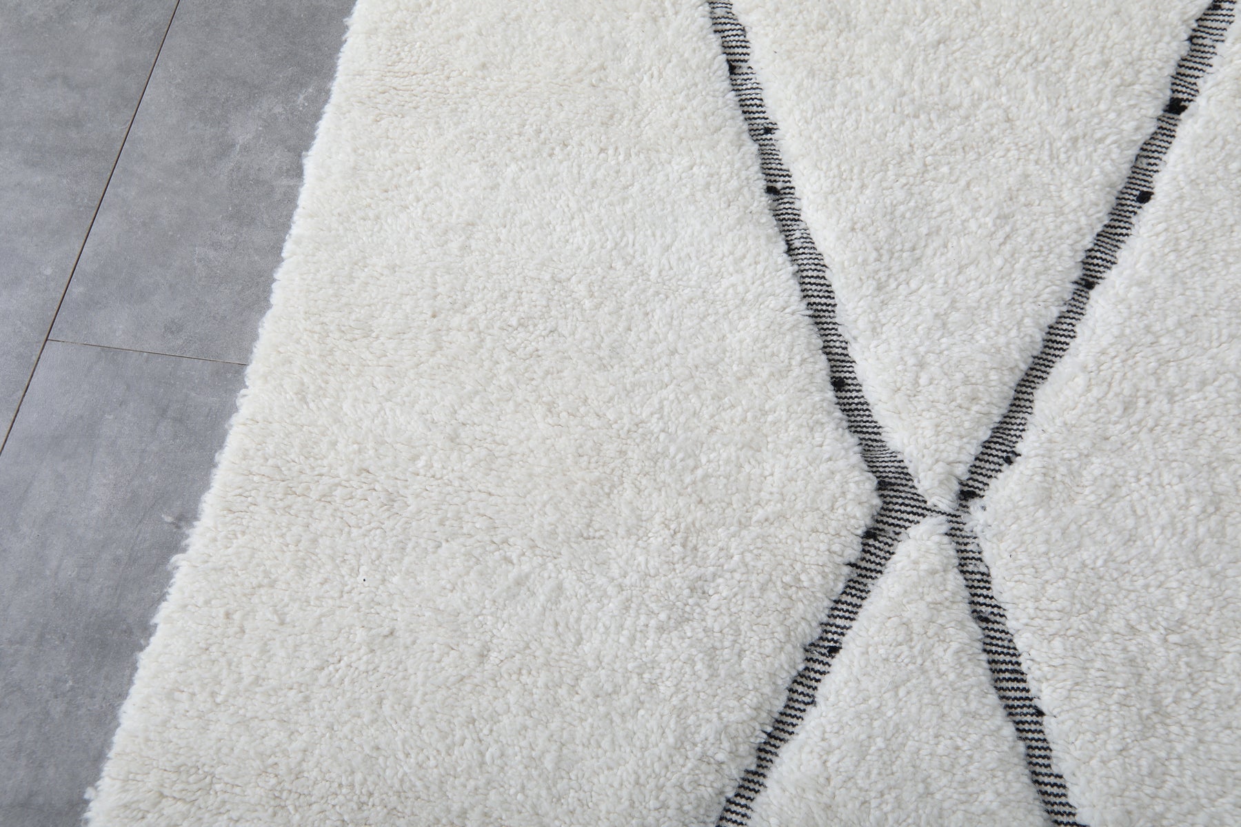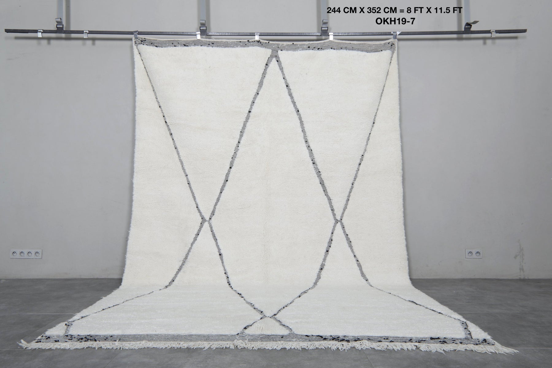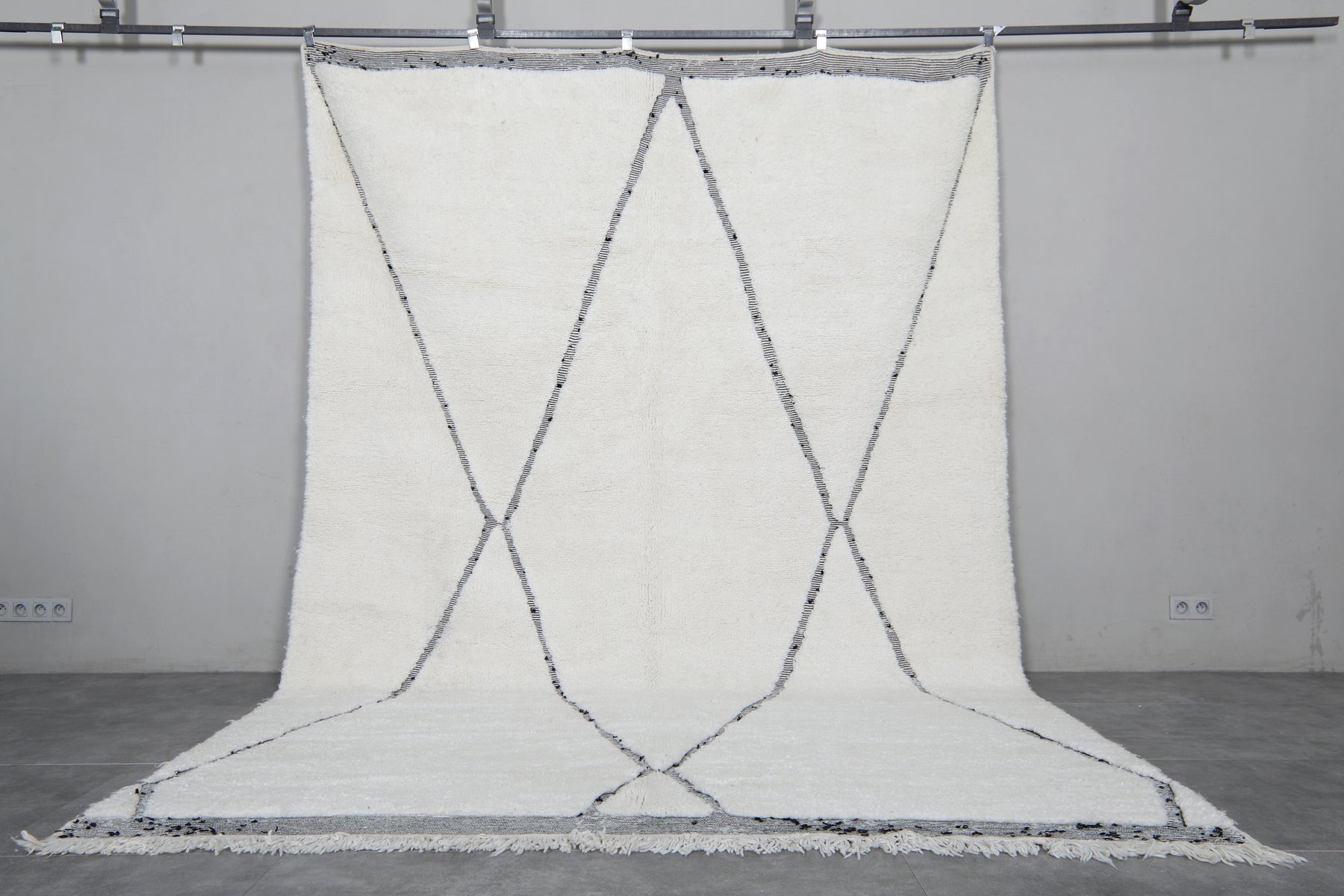 Diamond Moroccan Wool Rug - 8 x 11.5 Feet | Elegant Ivory & Gray Design - Beni ourain rugs