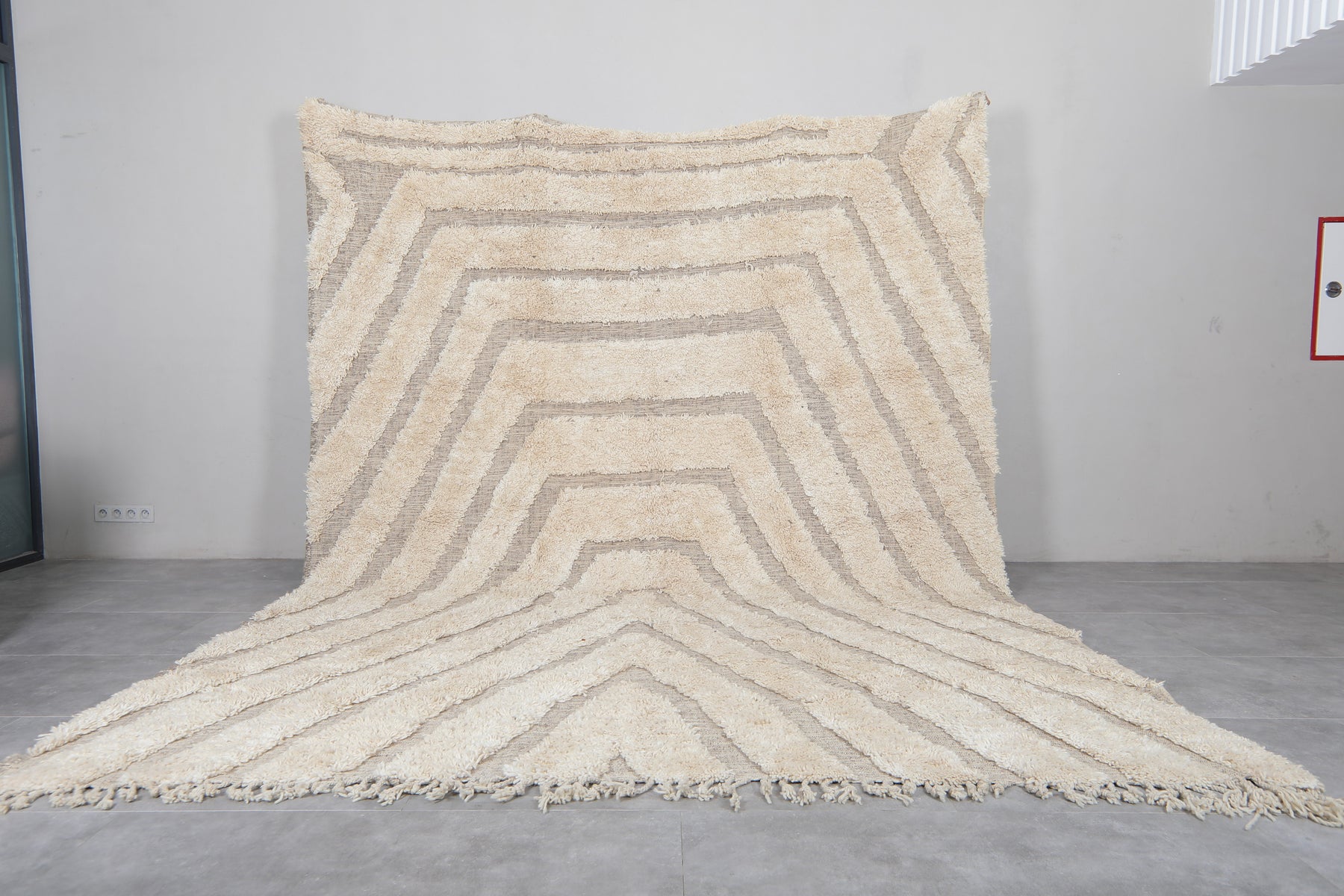 This Custom Beni Ourain Rug brings the timeless beauty of Moroccan craftsmanship into your home, blending traditional Berber weaving techniques with a modern, geometric twist. Handmade by skilled artisans in the Atlas Mountains, this rug is crafted from 100% natural wool, offering luxurious texture, durability, and authentic charm.