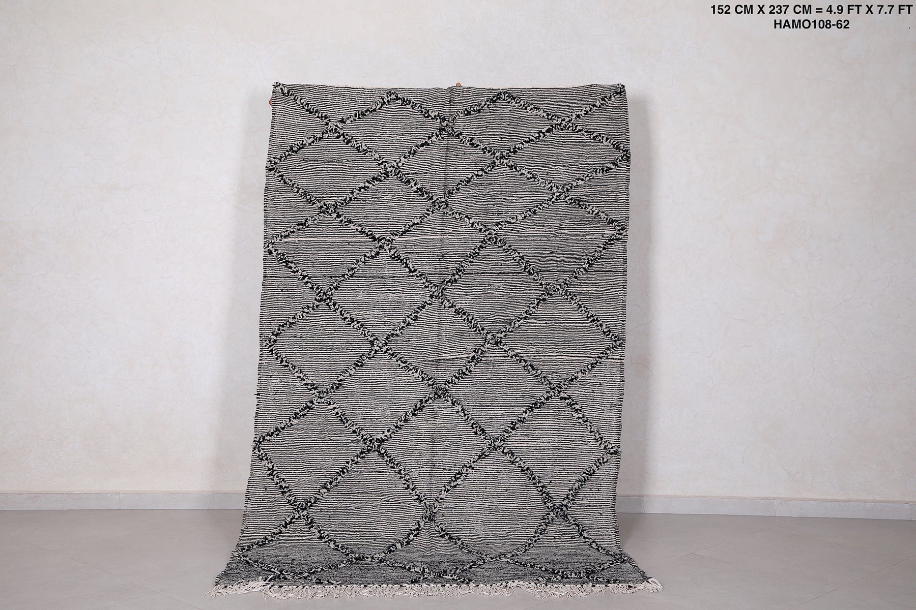 Gray Moroccan Rug - Handwoven Diamond Pattern 4.9 FT X 7.7 FT
