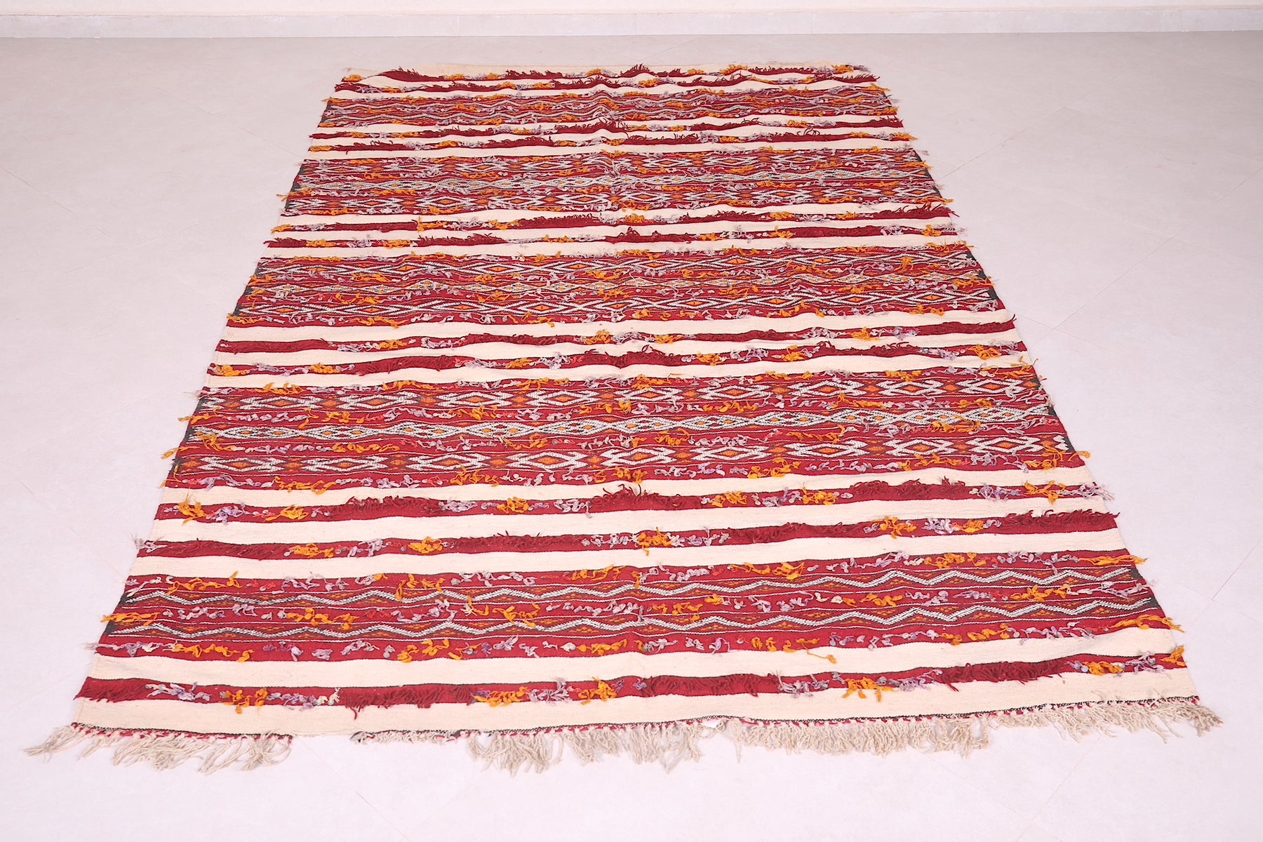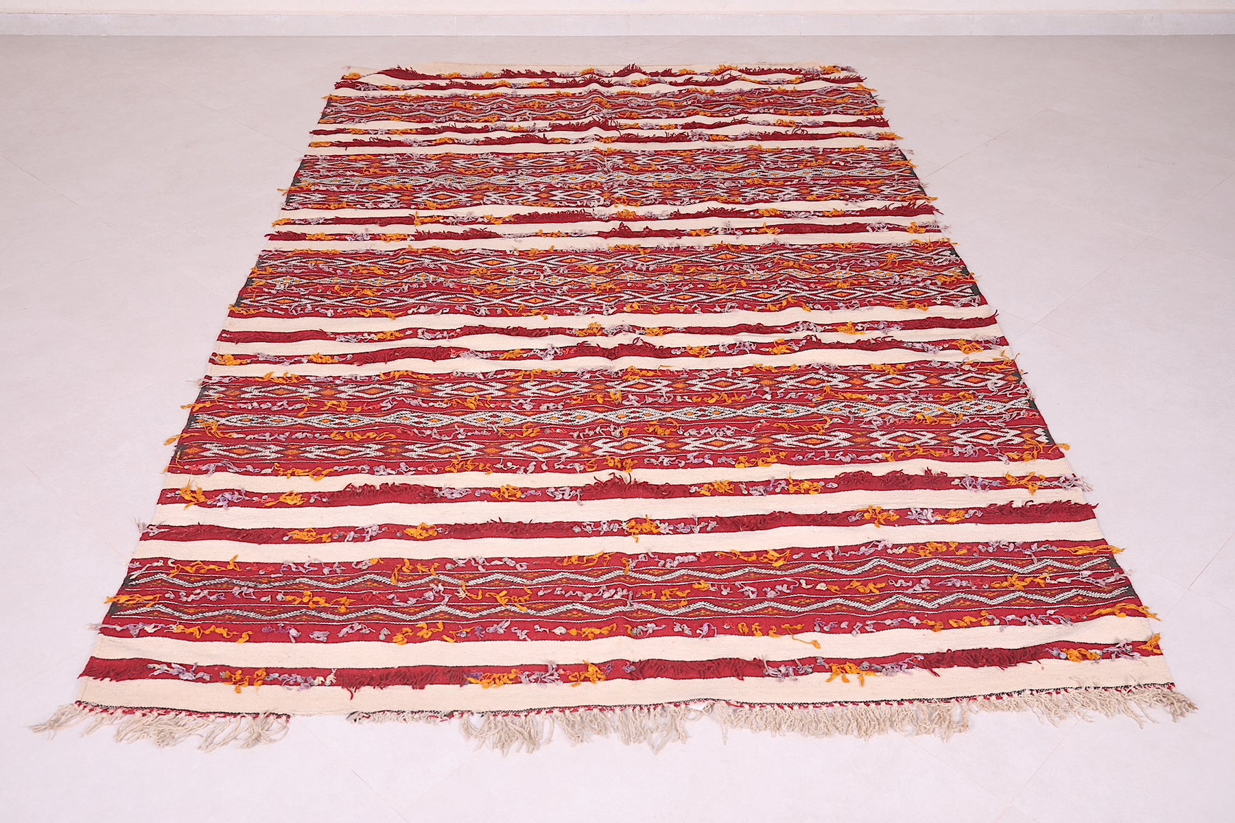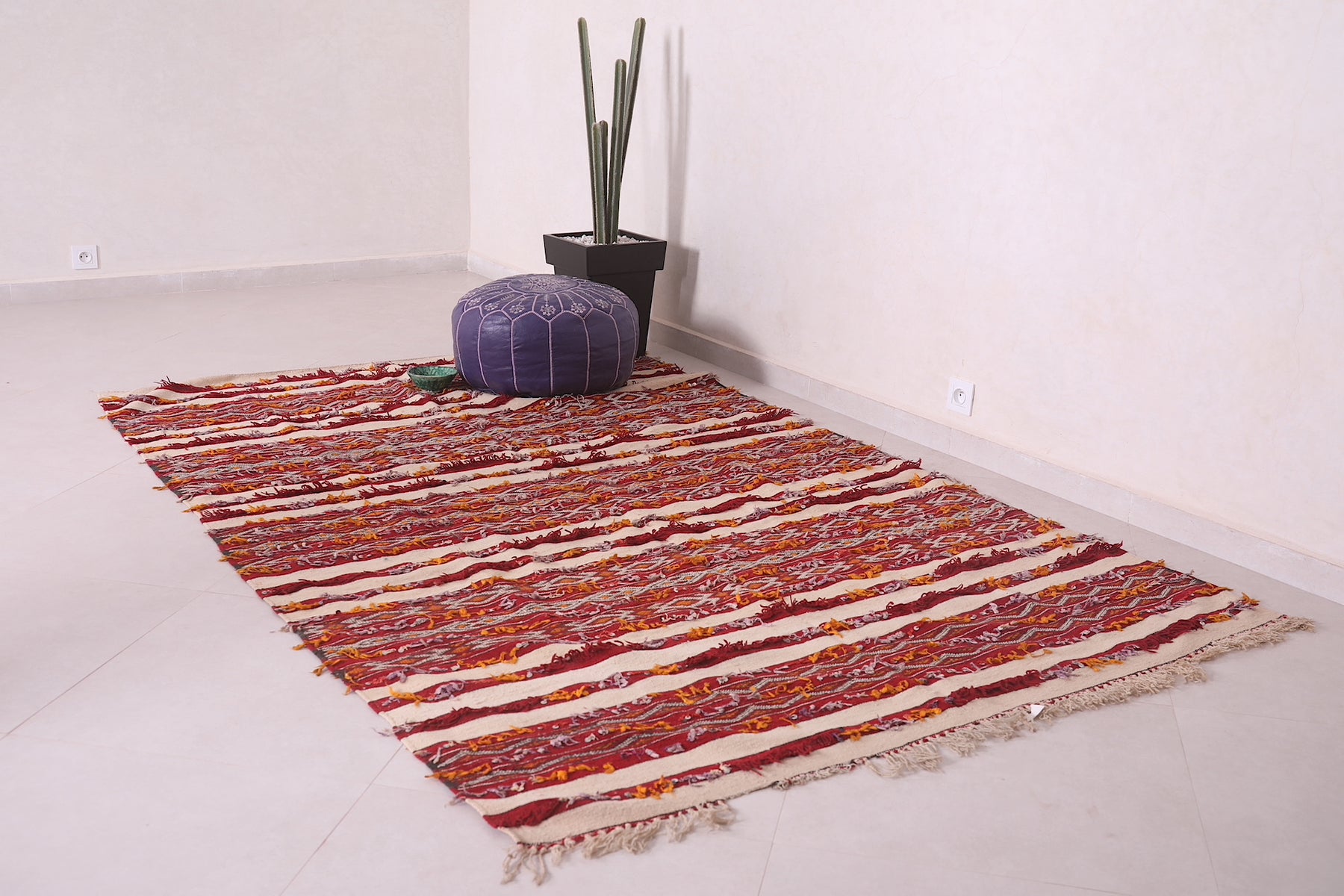 Handwoven Moroccan Rug - Red Striped Design - 5.5x8.9 ft - Handwoven Kilim