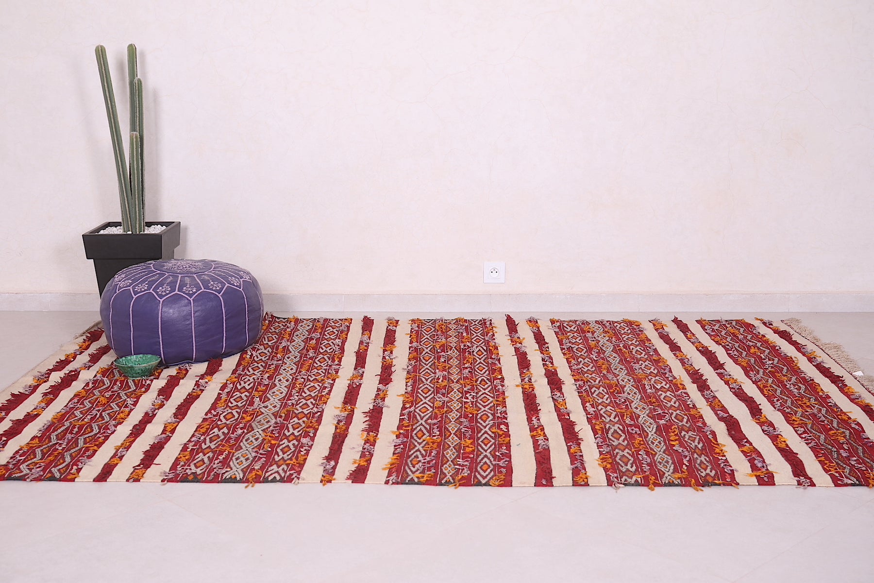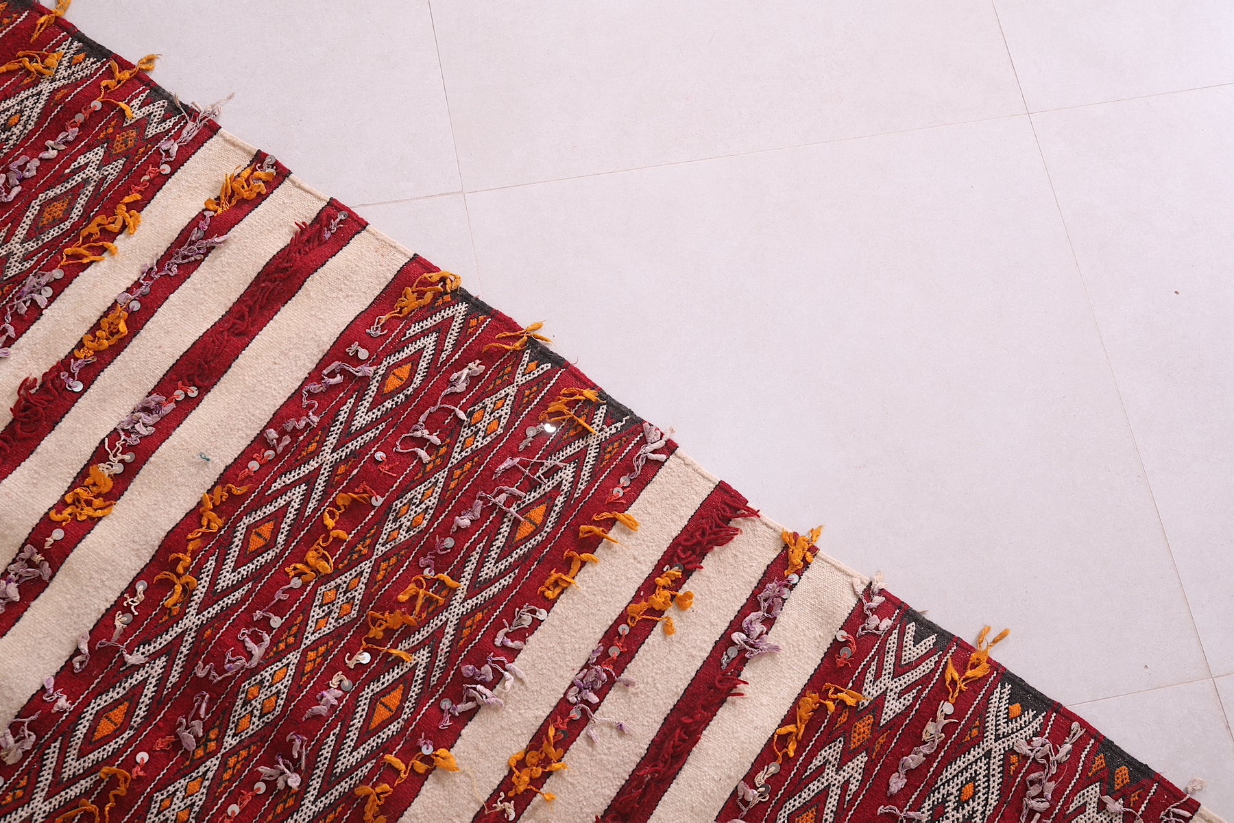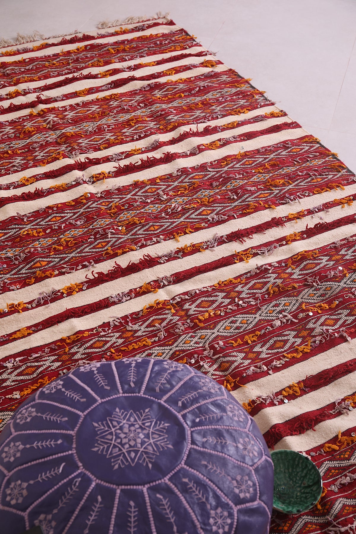 Handwoven Moroccan Rug - Red Striped Design - 5.5x8.9 ft - Handwoven Kilim