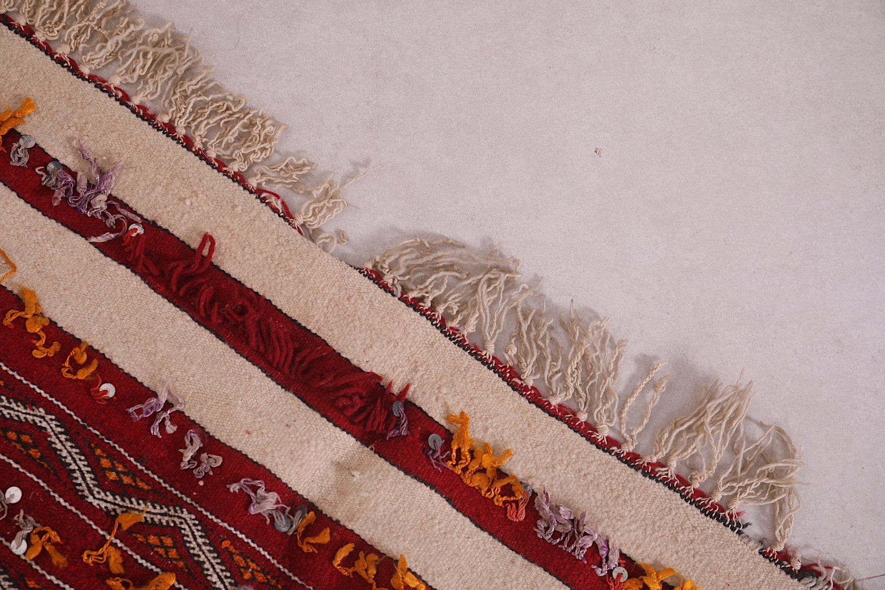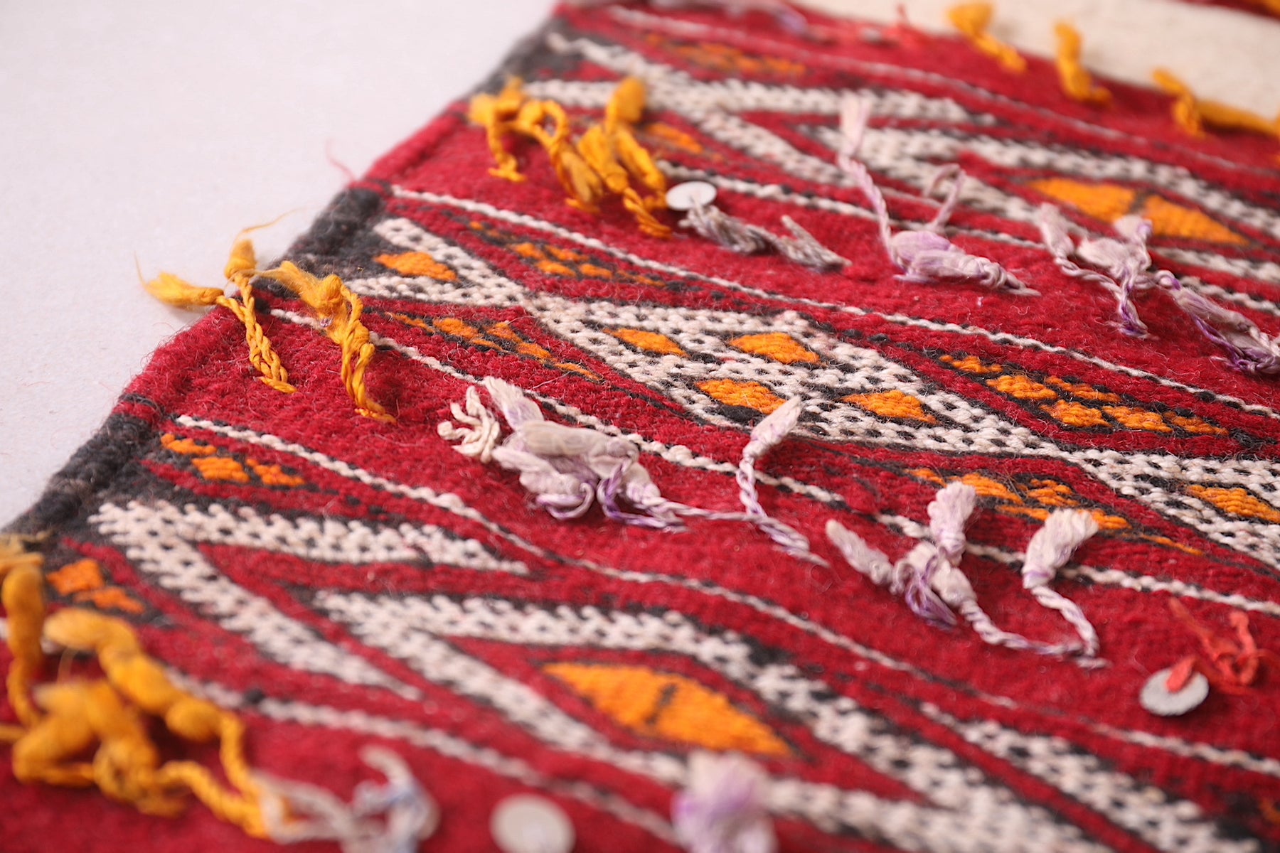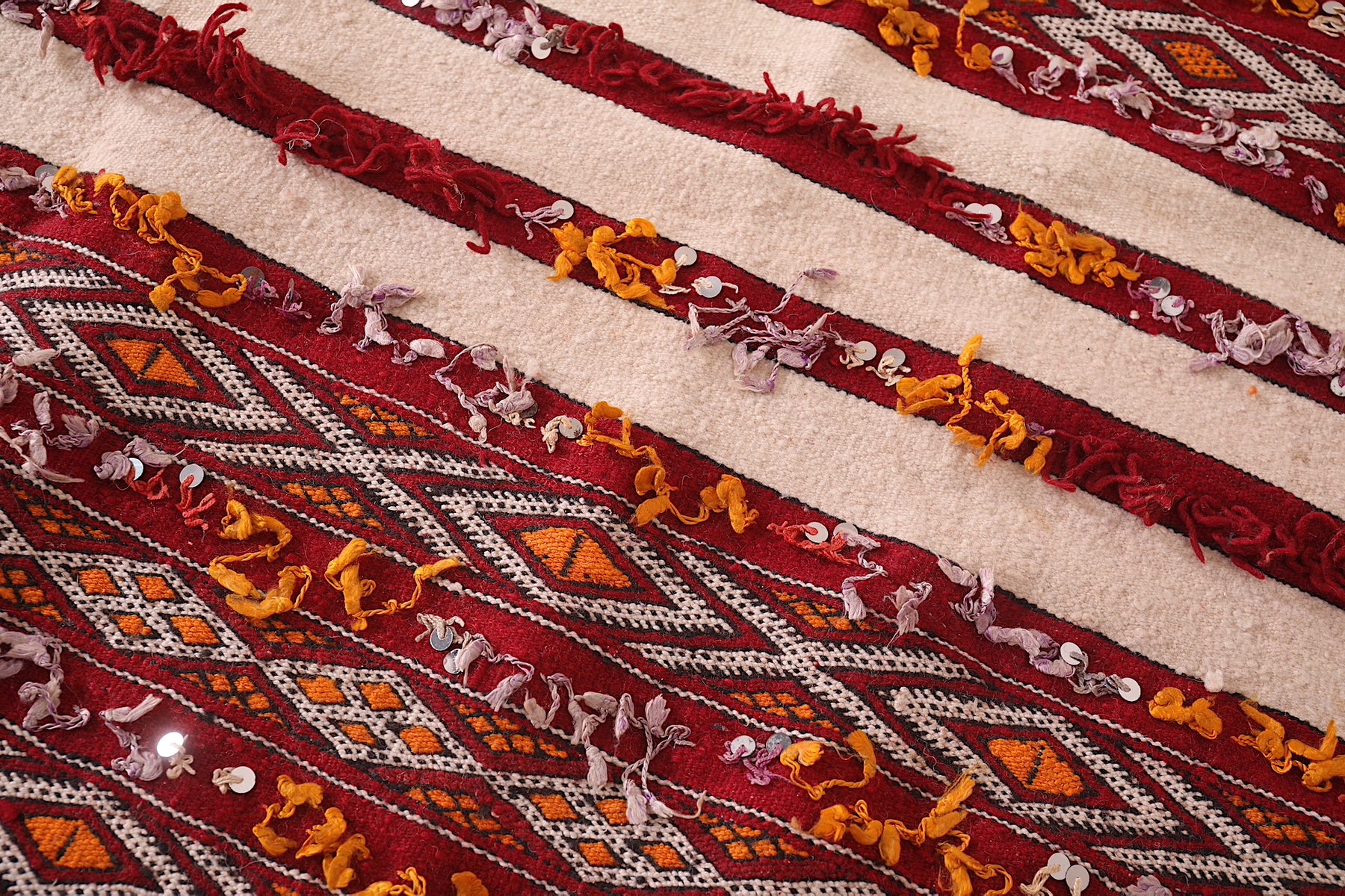 • Red striped design with multicolored geometric Berber motifs for a culturally inspired look.