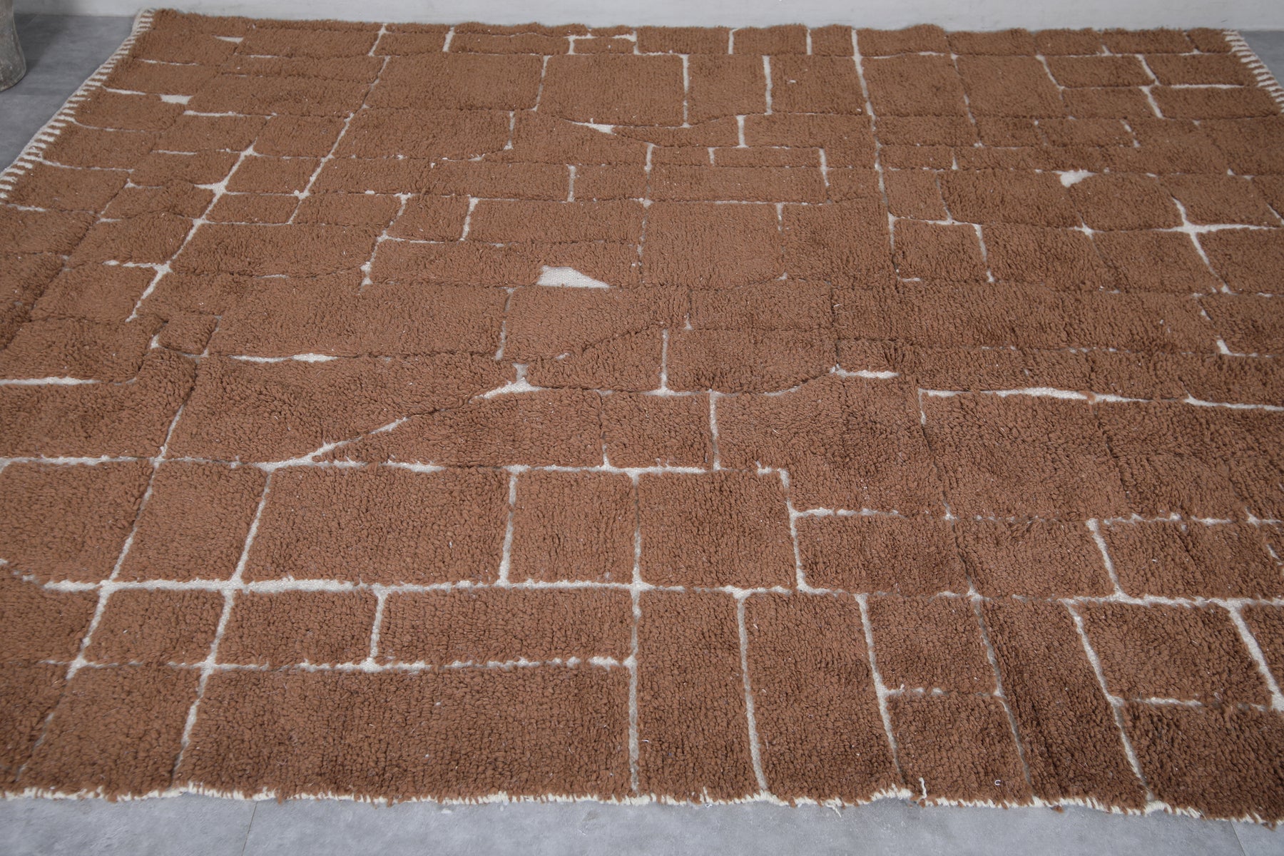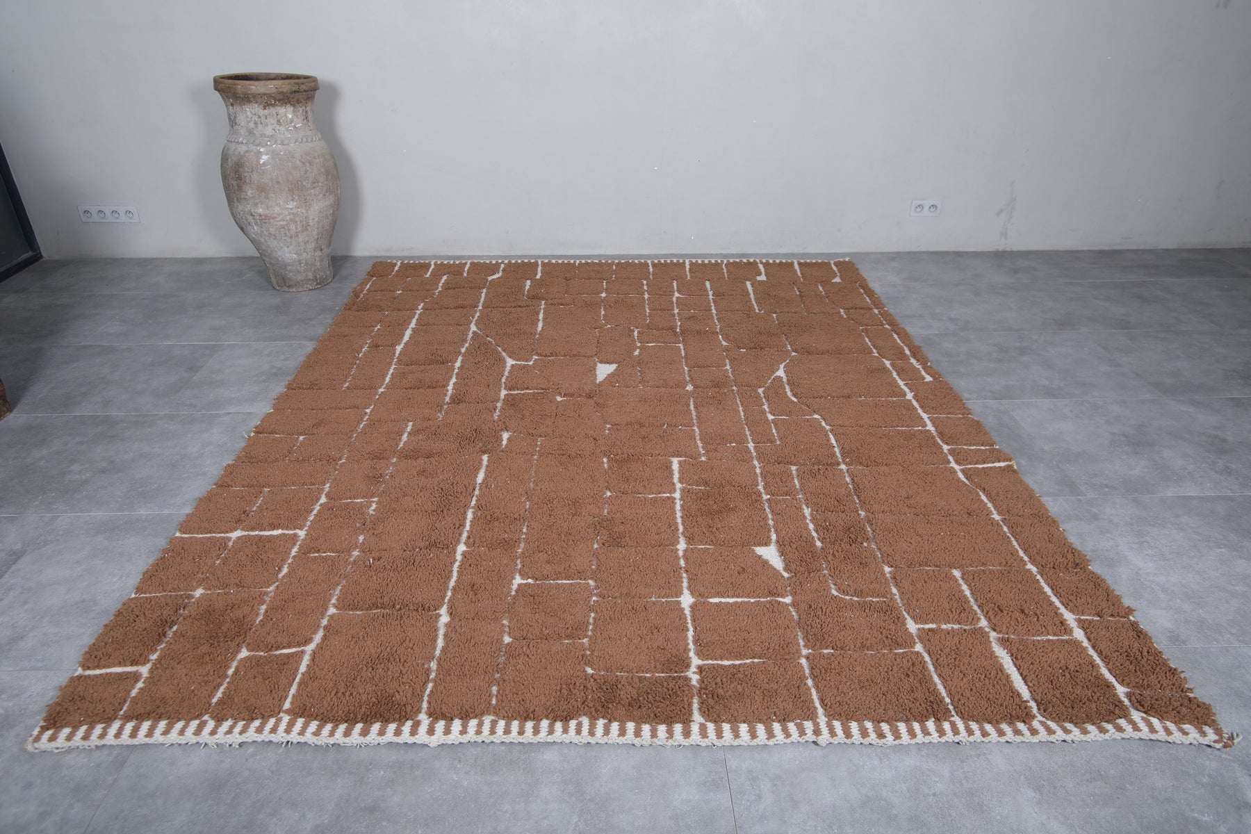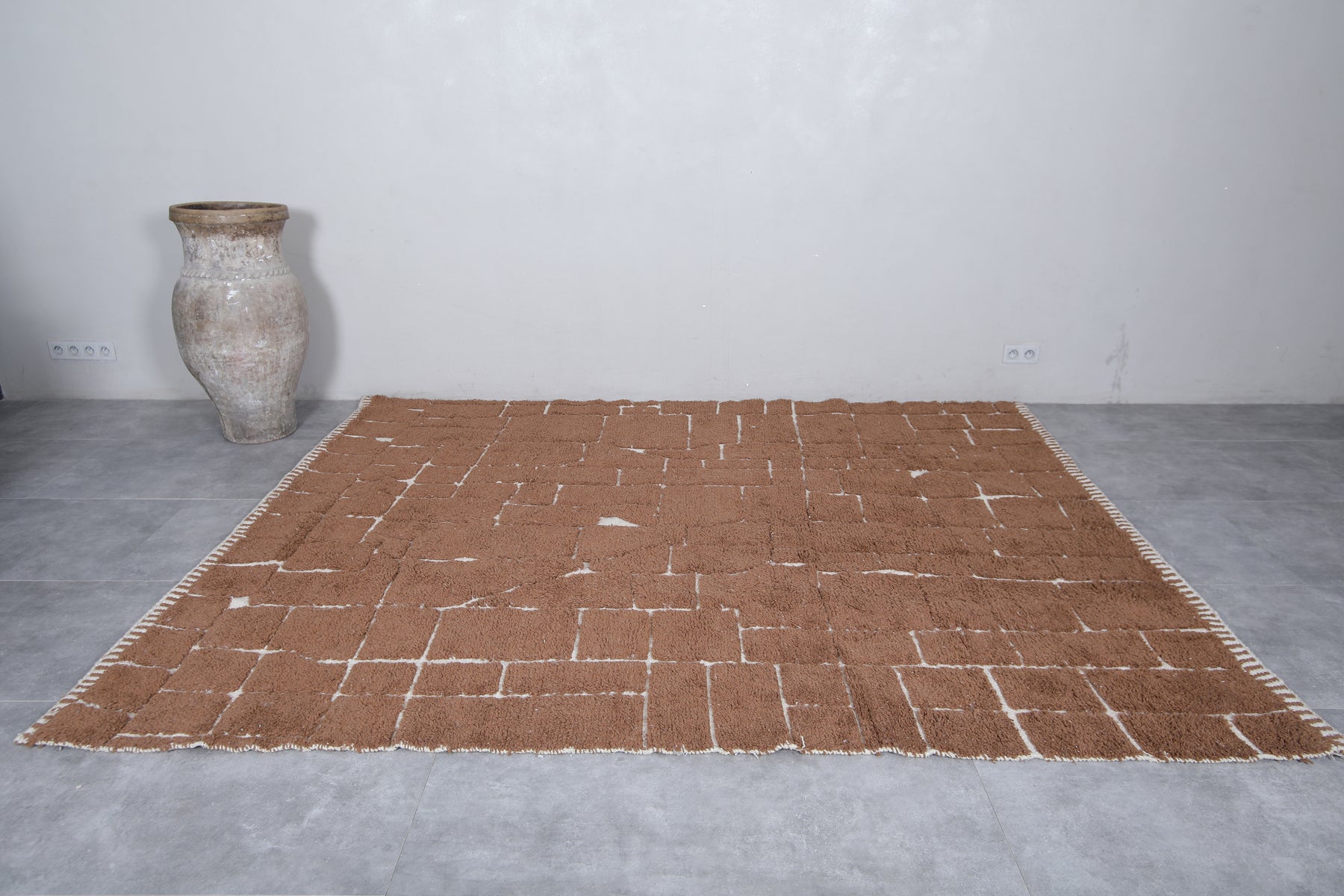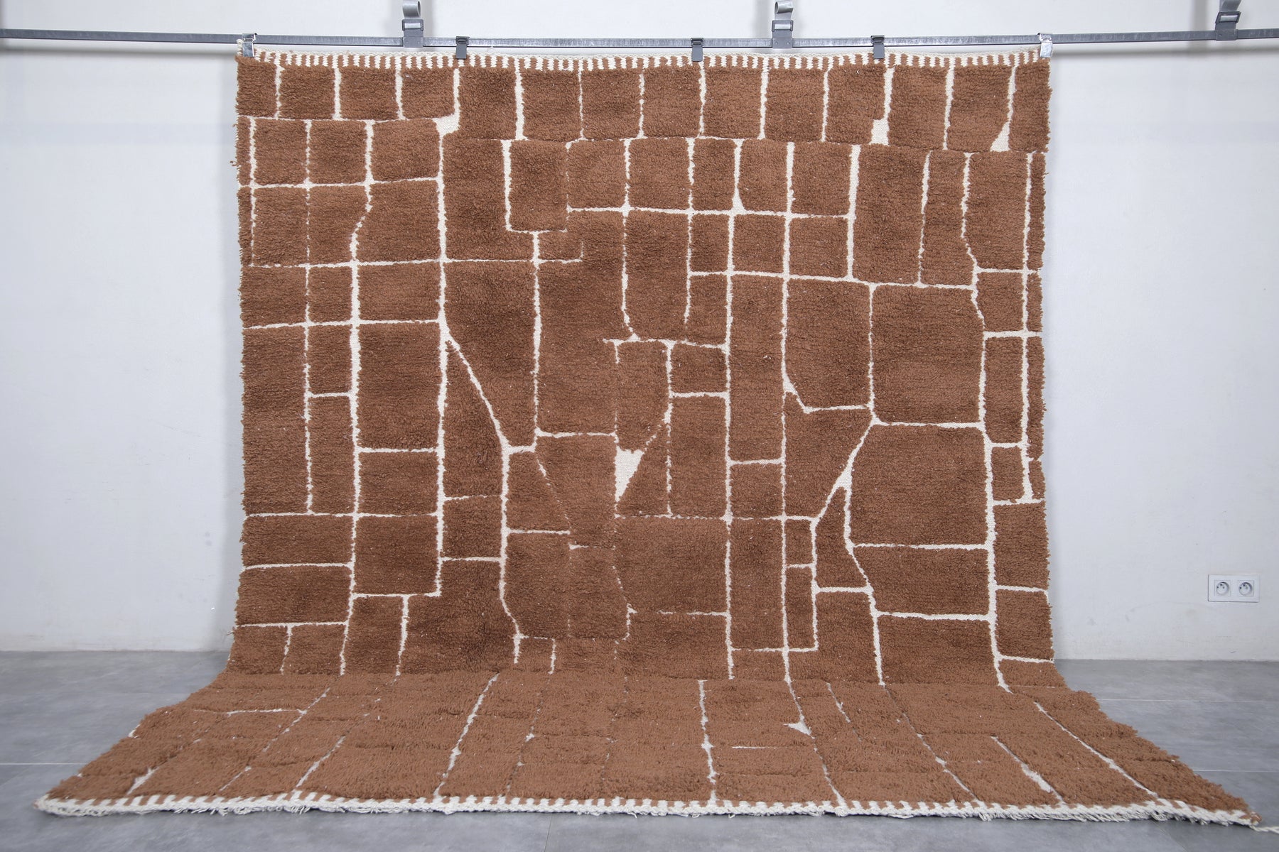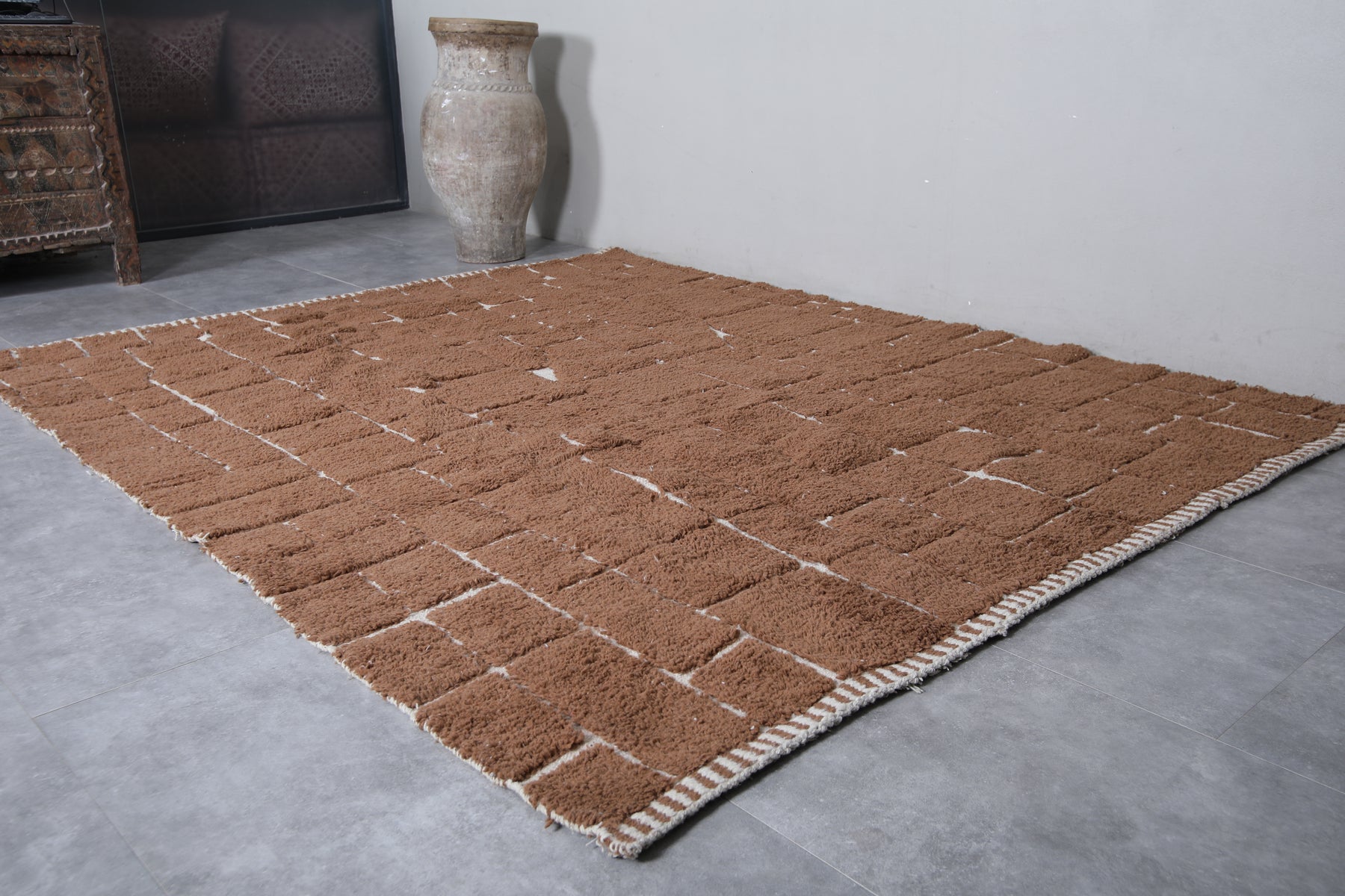 Moroccan beni ourain rug - Handwoven 8.1 x 9.7 Feet | Geometric brown wool design