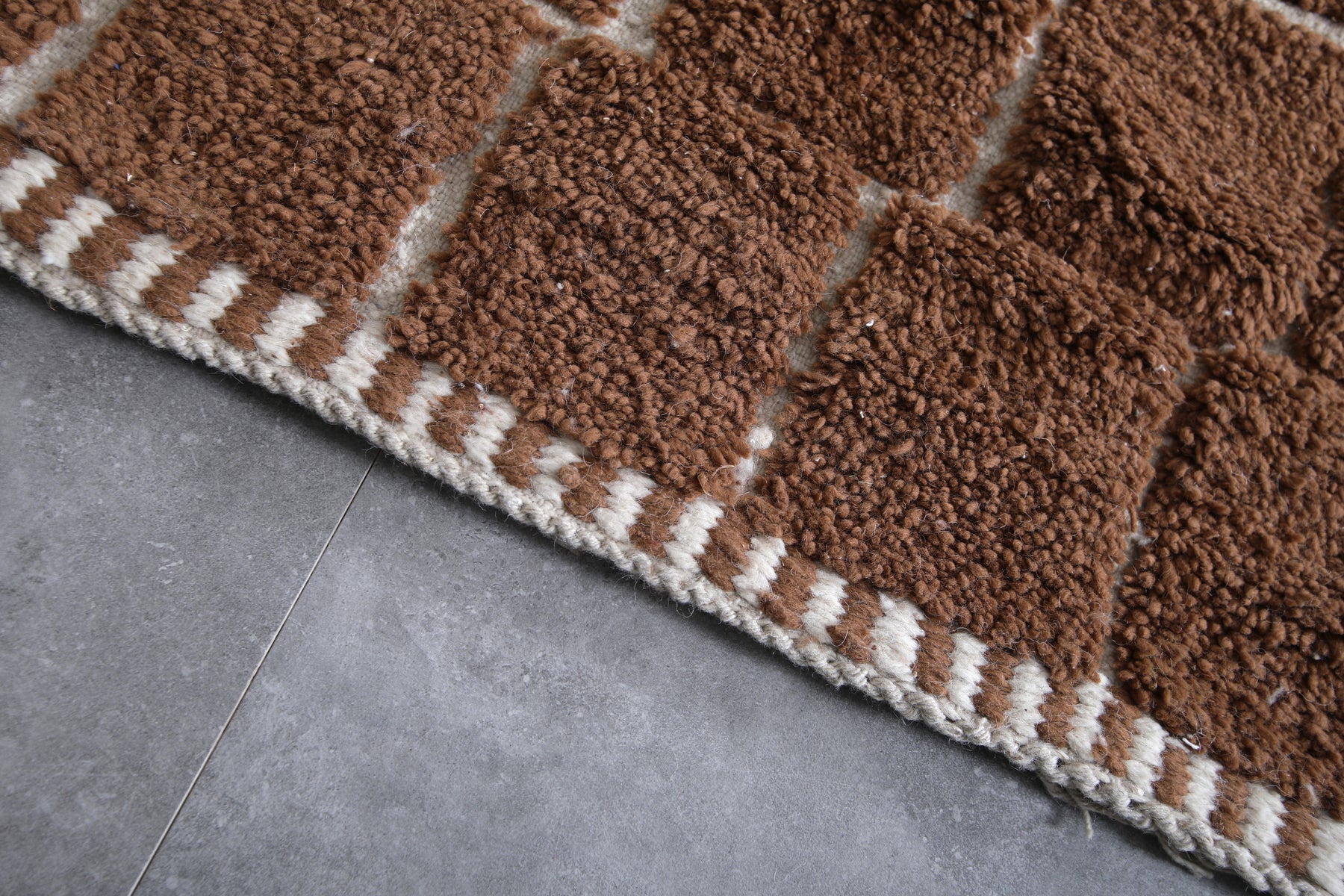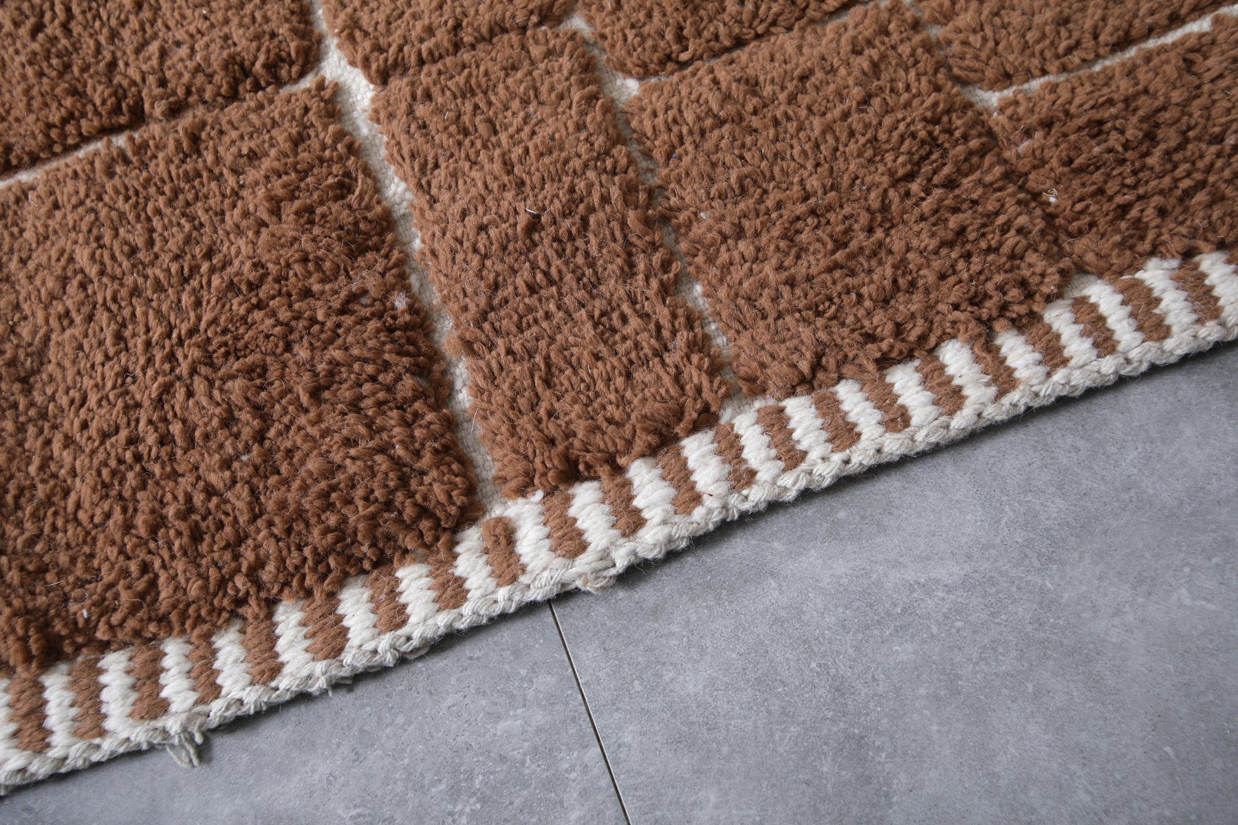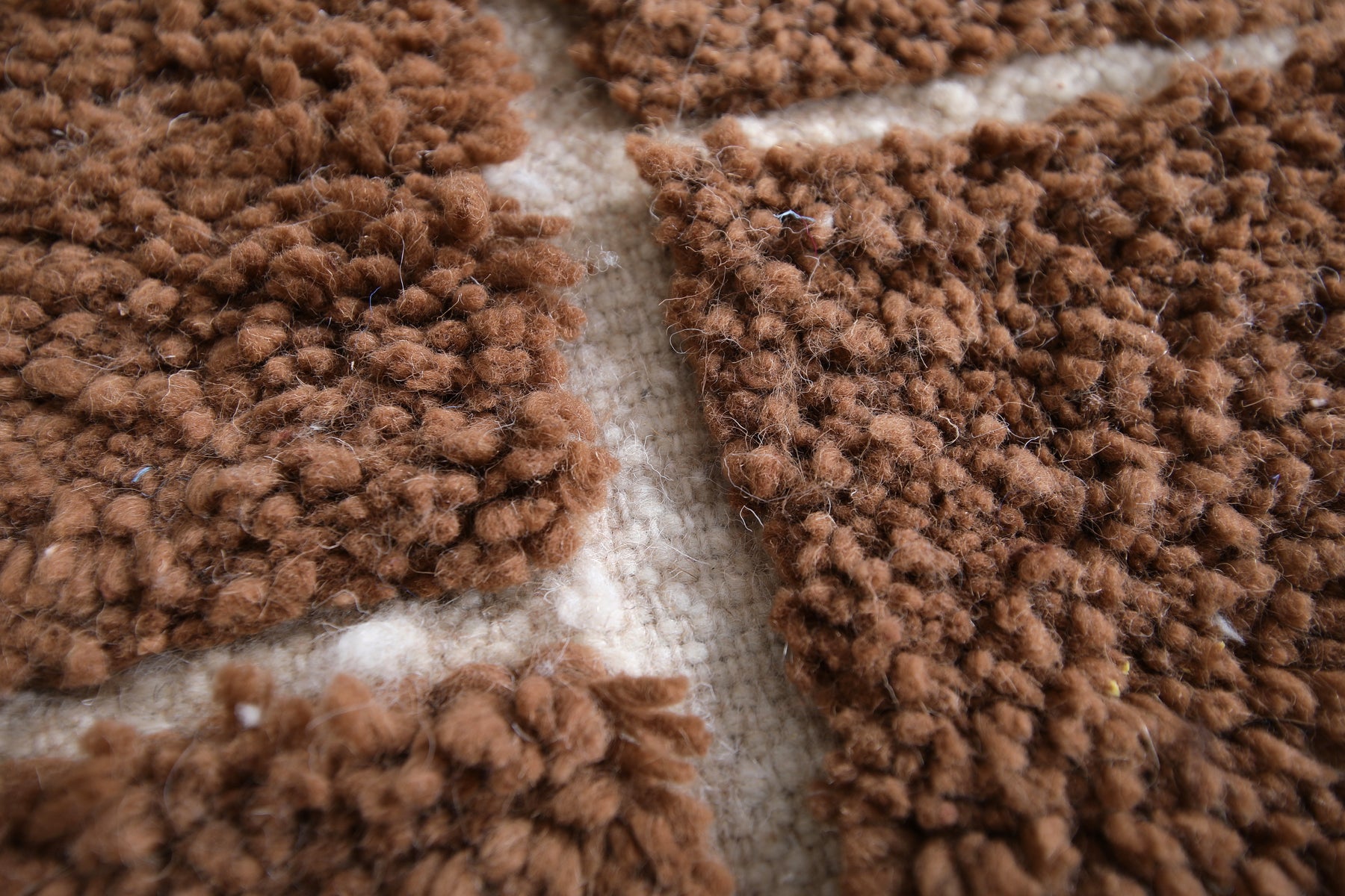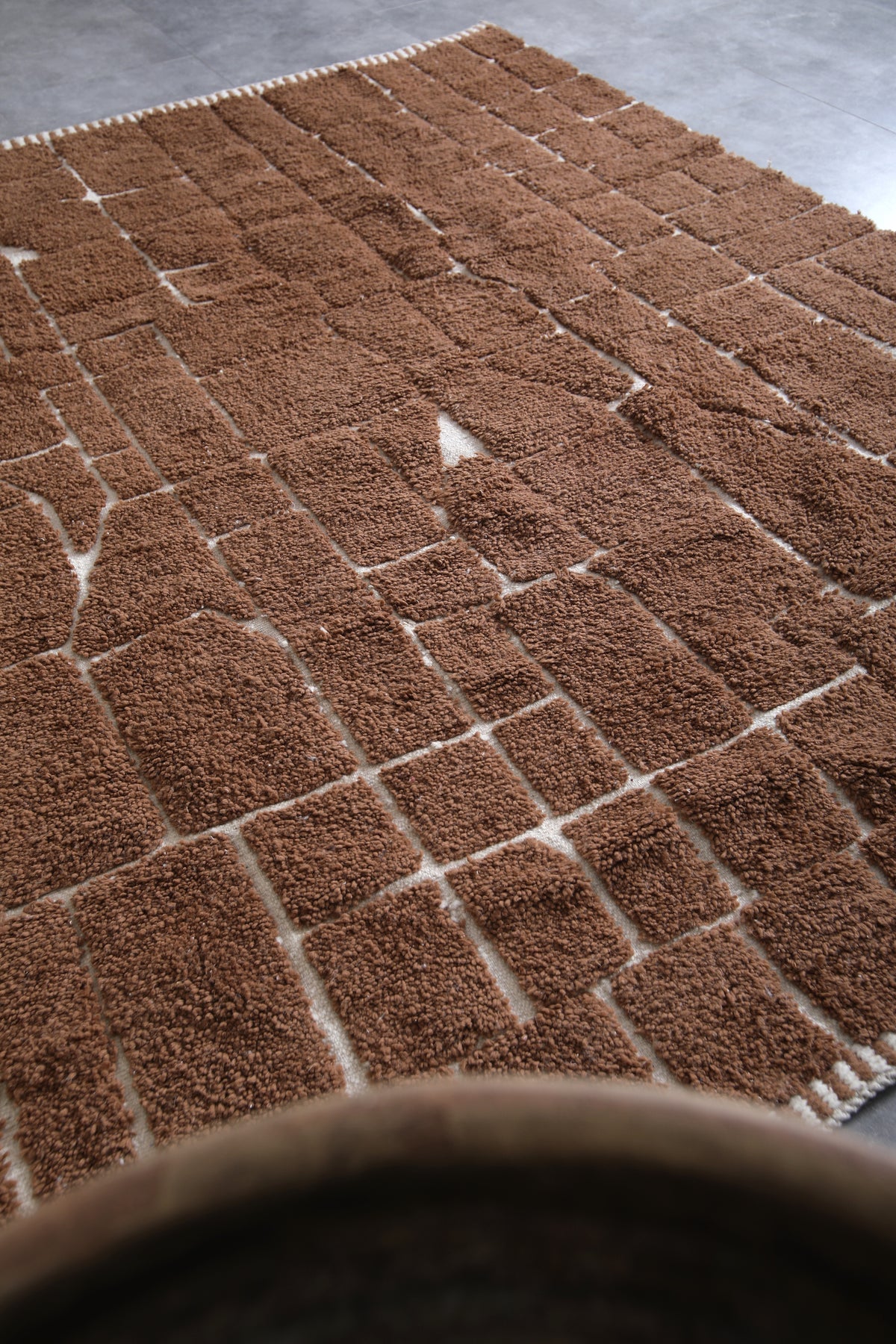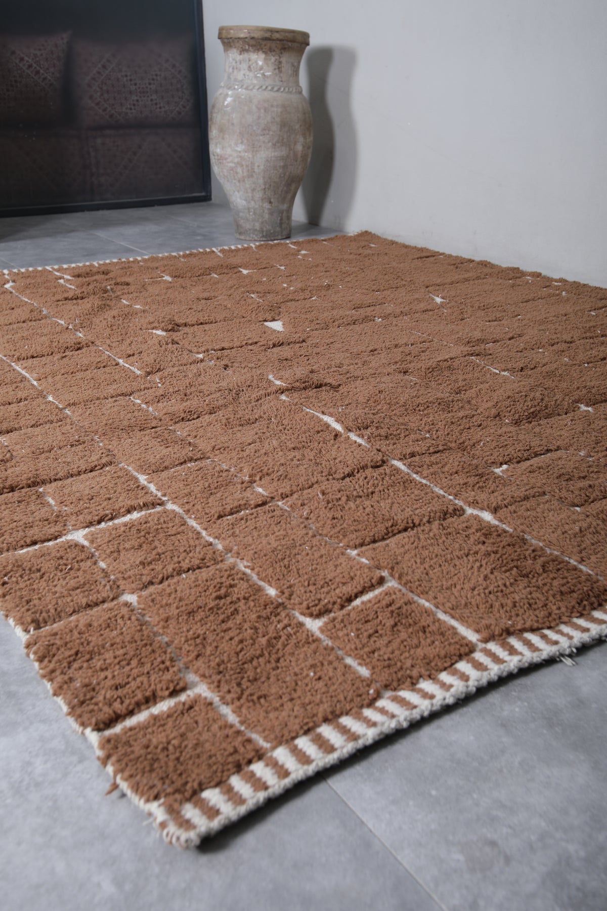 Moroccan beni ourain rug - Handwoven 8.1 x 9.7 Feet | Geometric brown wool design