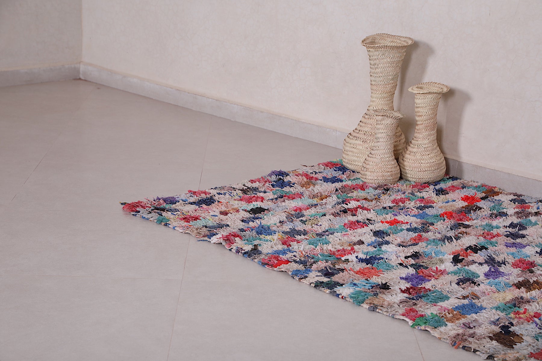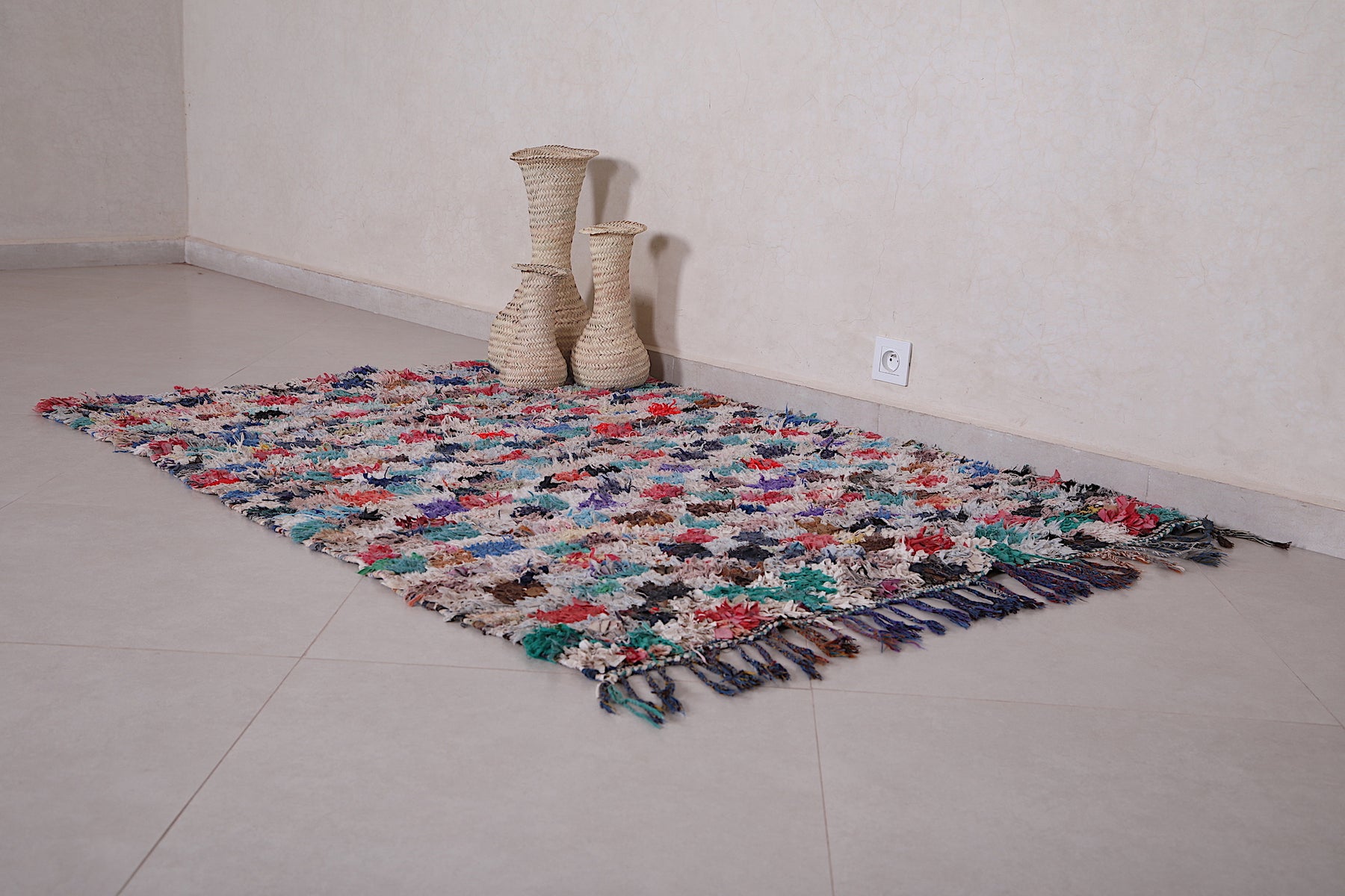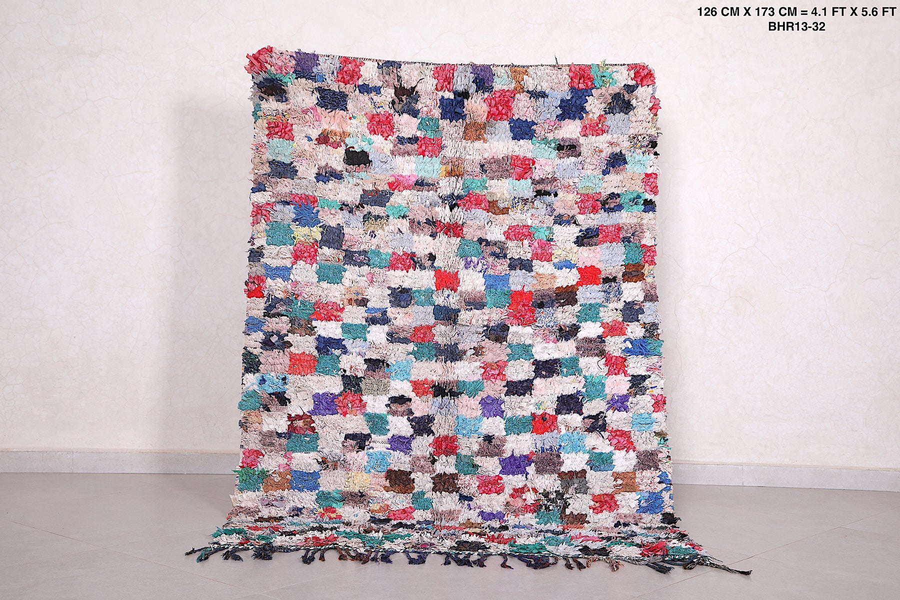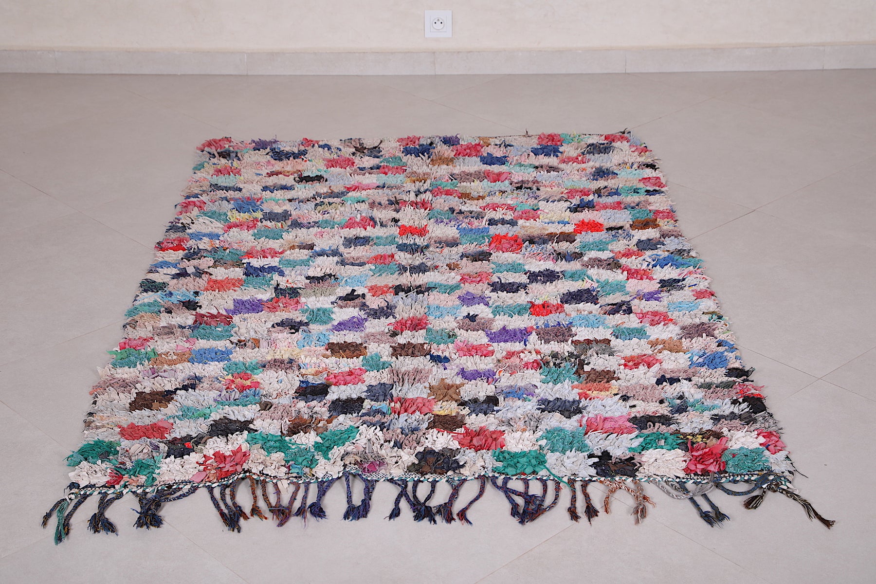 Moroccan Boucherouite Rug - 4.1x5.6 ft | Handwoven Patchwork Design