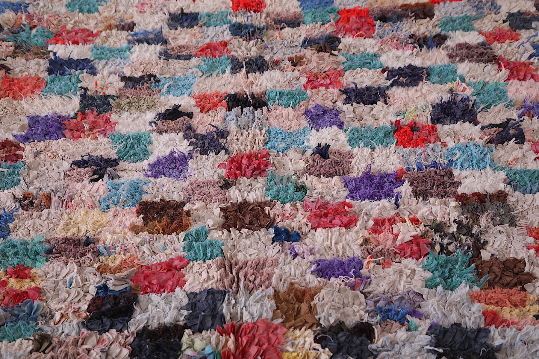 Infuse your home with the vibrant charm of this Moroccan Boucherouite Rug, measuring 4.1 FT x 5.6 FT. This handmade rug showcases a colorful patchwork design crafted from upcycled textiles. Its intricate patterns and eco-friendly construction make it a standout piece for bohemian, eclectic, or contemporary interiors. Soft to the touch yet highly durable, this rug is perfect for living rooms, bedrooms, or cozy reading nooks.