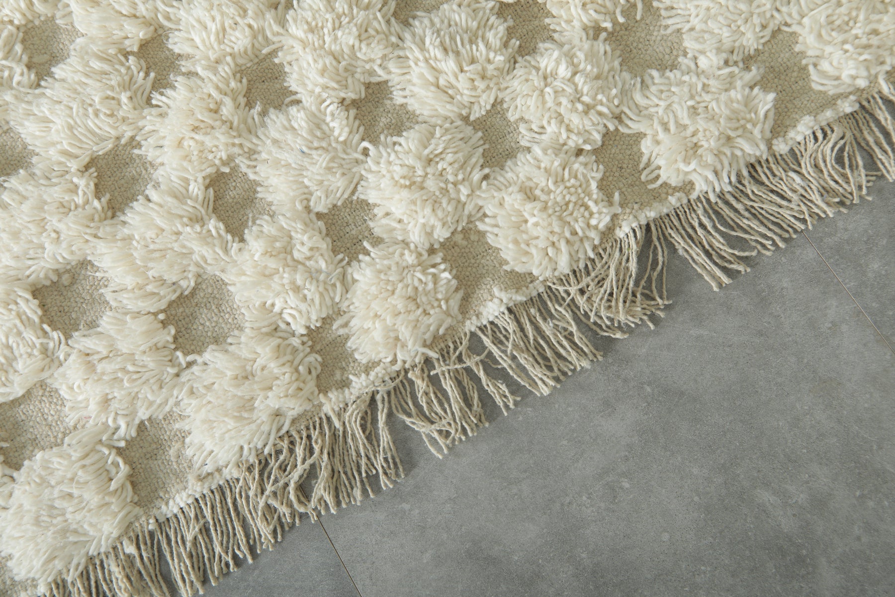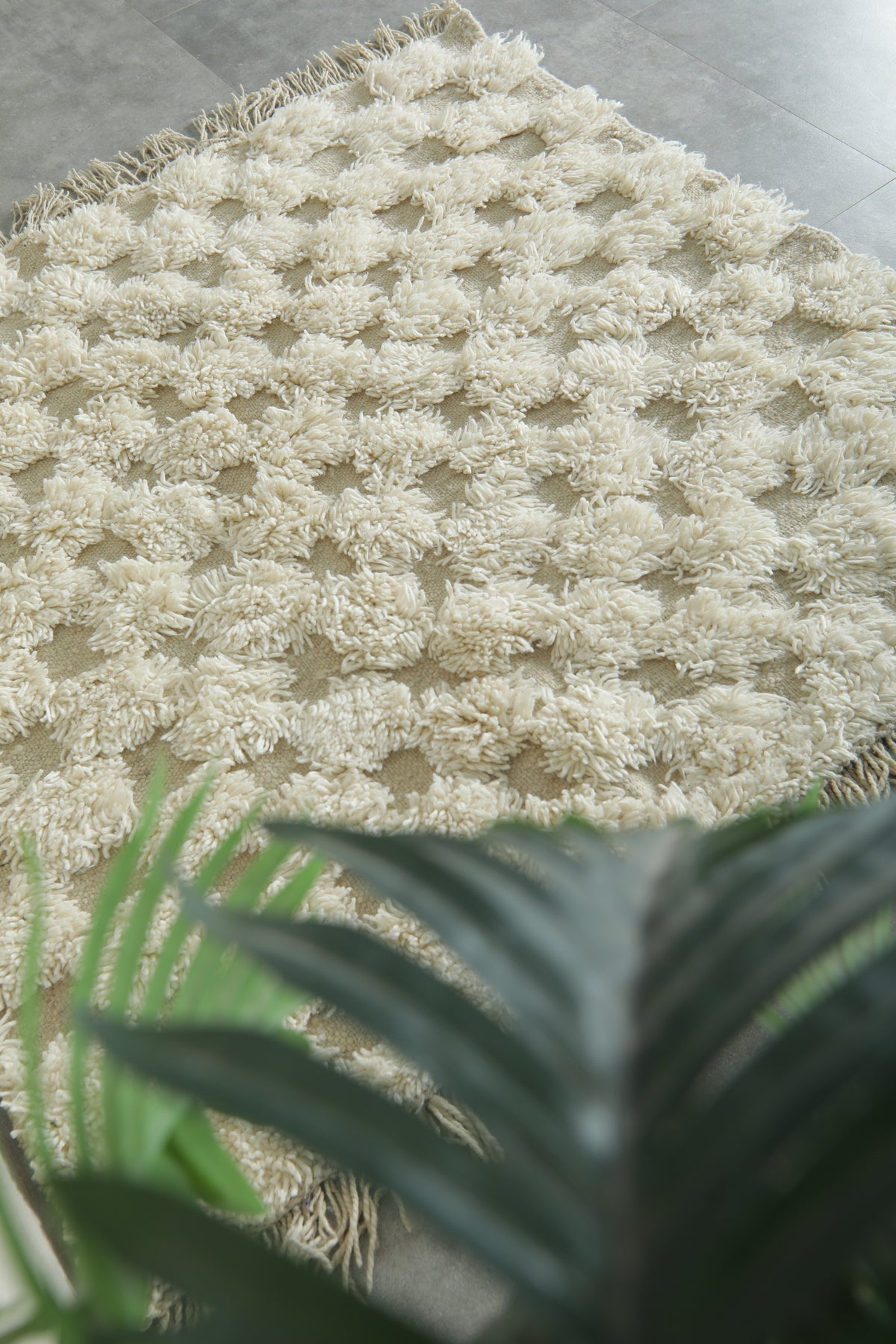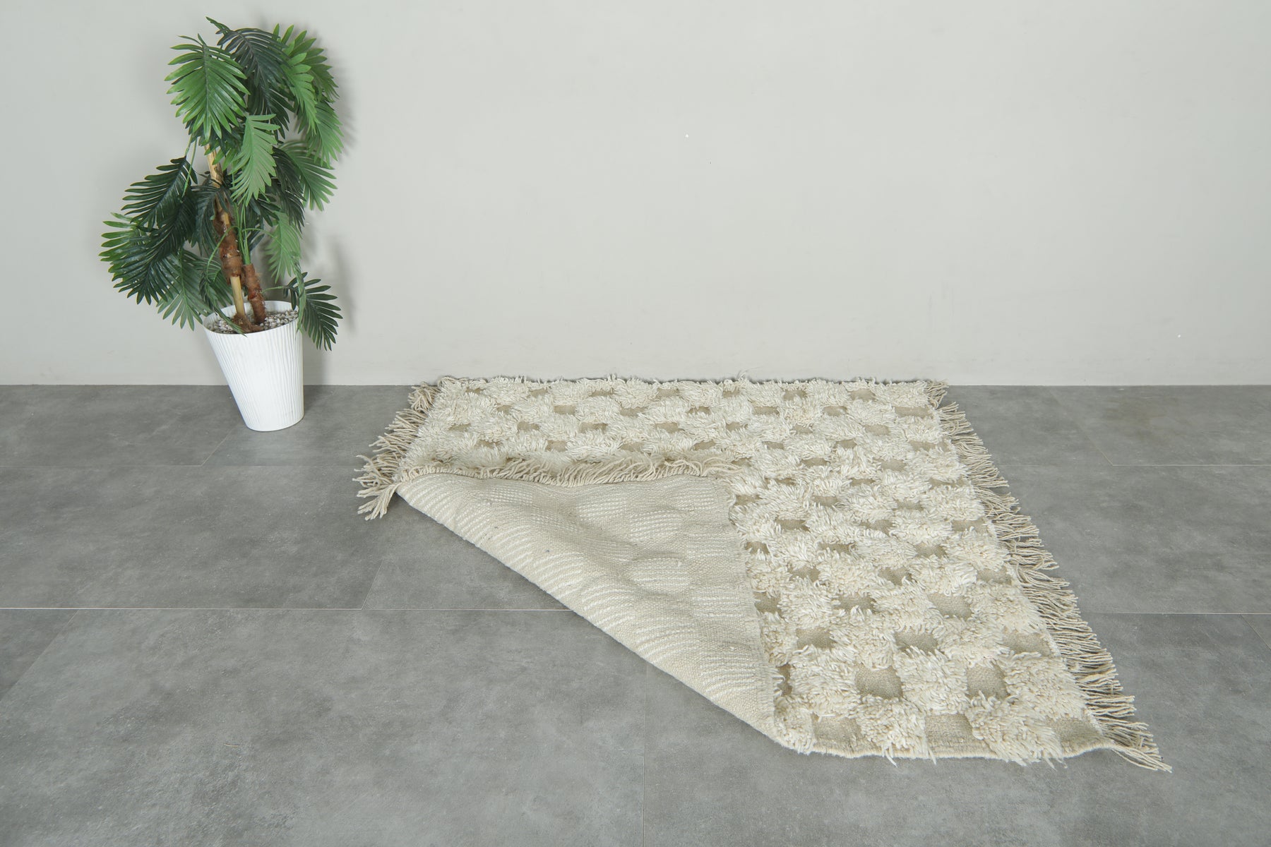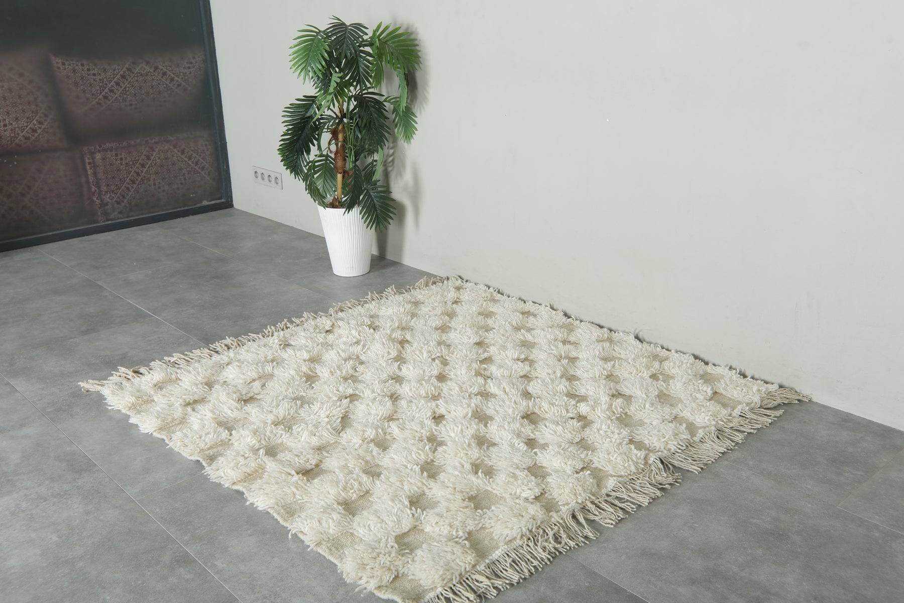 Elevate your space with this handcrafted square Moroccan checkered rug, featuring a stunning blend of soft white and warm beige tones. Expertly woven by Berber artisans, this plush wool rug showcases a modern checkerboard design with a cozy, textured finish—perfect for adding depth and warmth to living rooms, bedrooms, or entryways. Its square shape (approx. 4.8 ft x 4.7 ft) makes it a versatile accent for both classic and contemporary interiors. Made from 100% natural wool, this rug offers lasting comfort and timeless elegance.