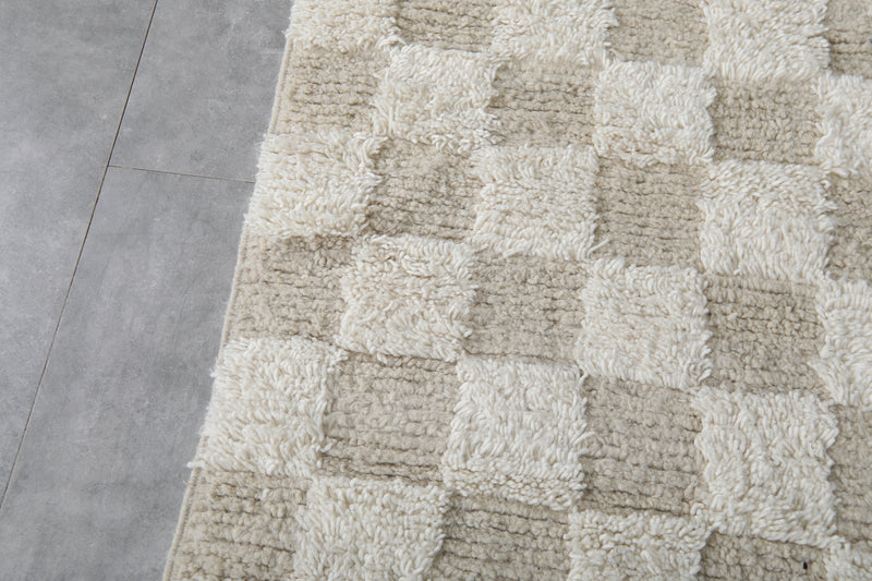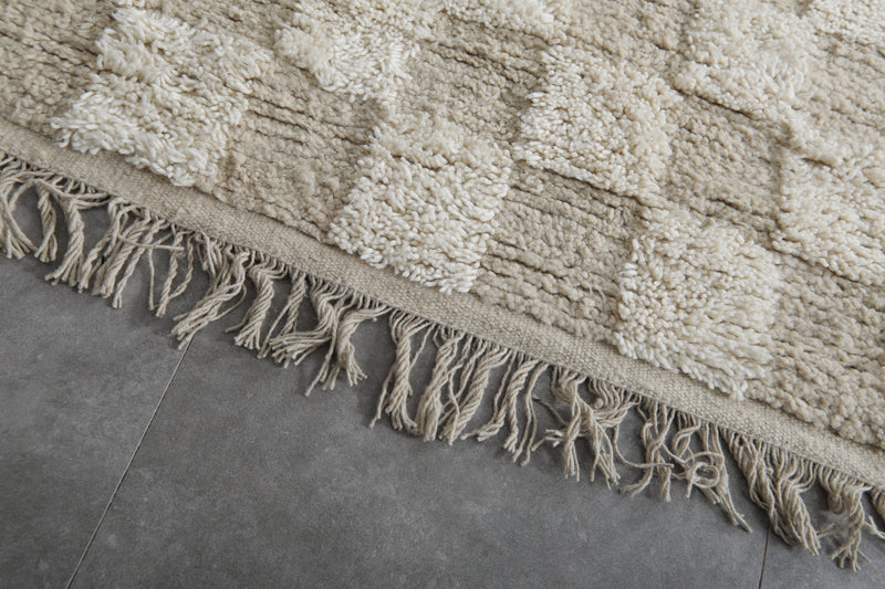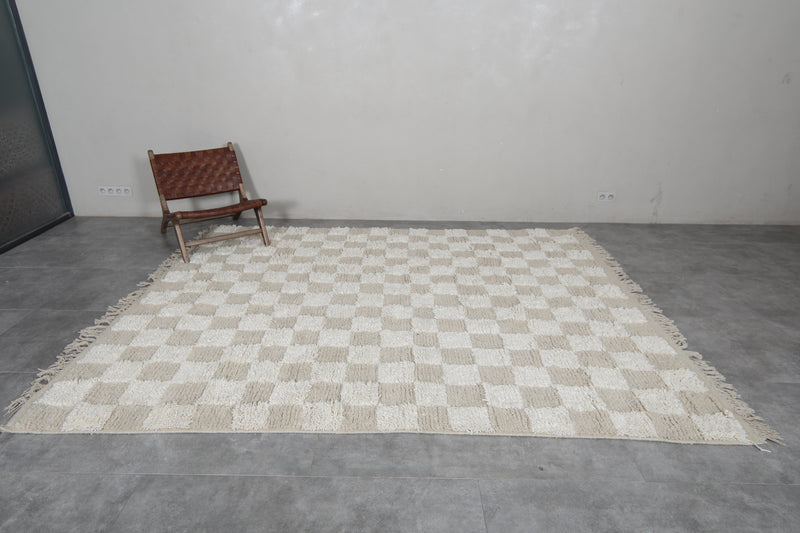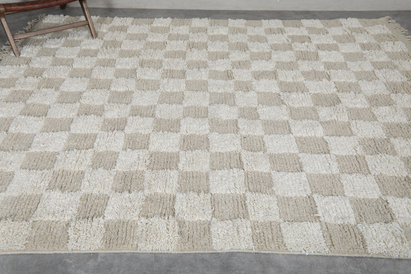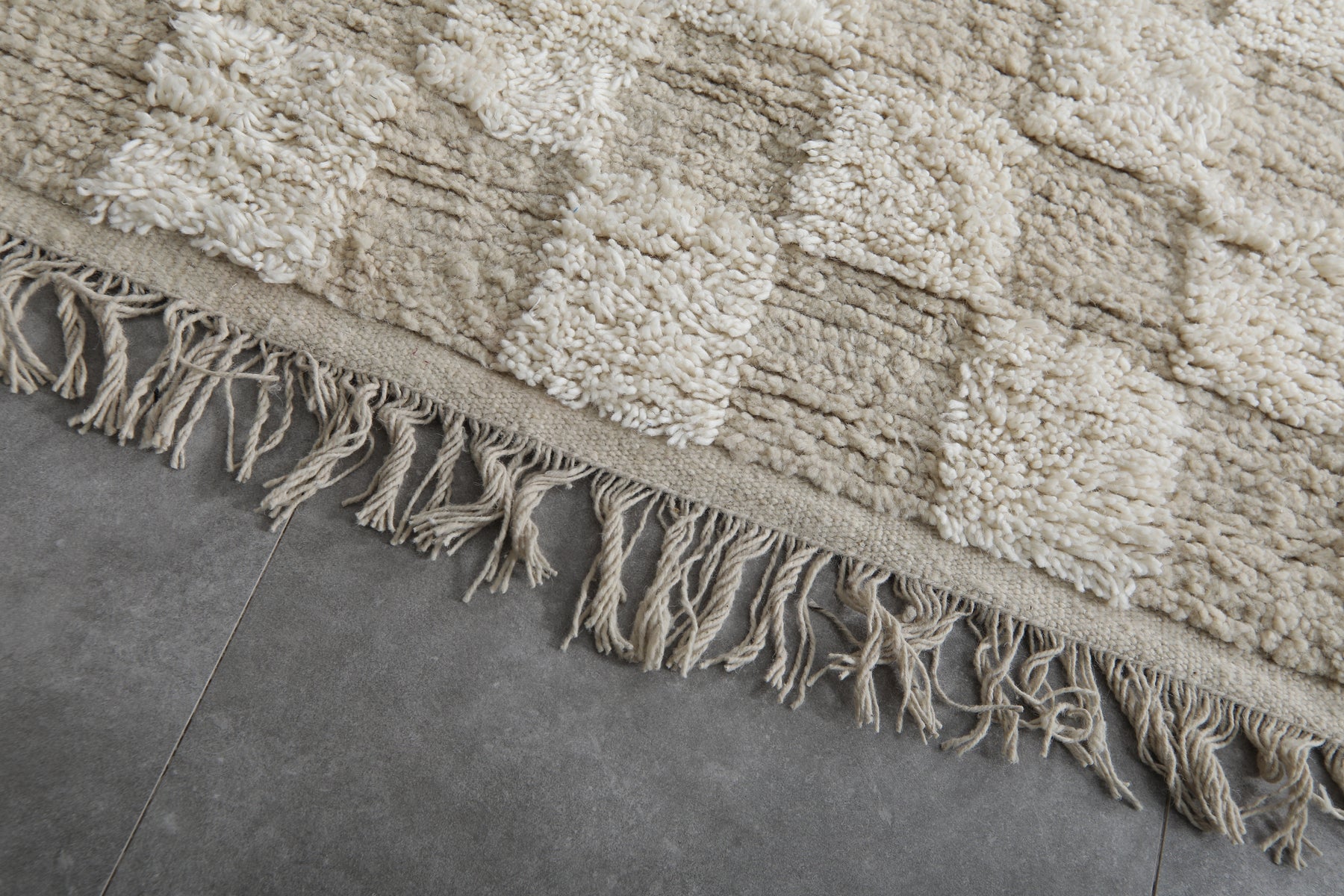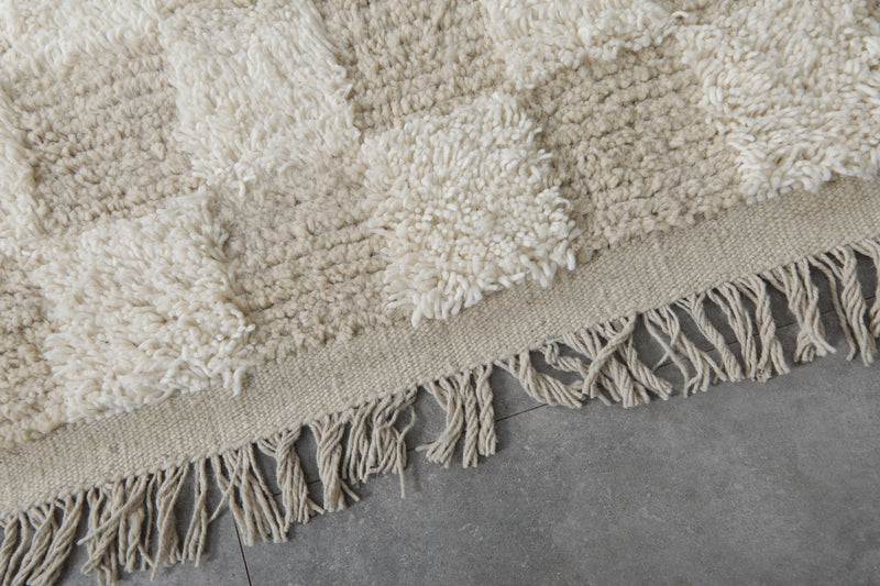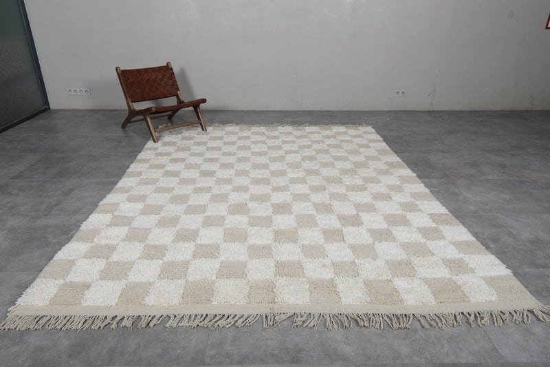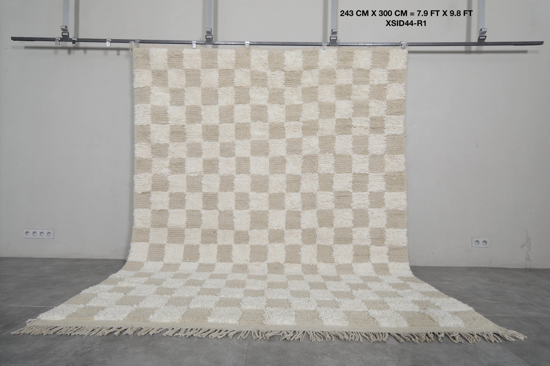 Bring refined elegance to your space with this handwoven Beige and White Moroccan Rug, featuring a soft checkered pattern and generous 7.9 x 9.8 feet dimensions. The neutral palette and shaggy texture create a serene, cozy atmosphere, perfect for living rooms, bedrooms, or reading nooks. This timeless piece blends traditional Moroccan craftsmanship with a modern minimalist vibe, making it an ideal fit for a range of interior styles—from Scandinavian to bohemian.