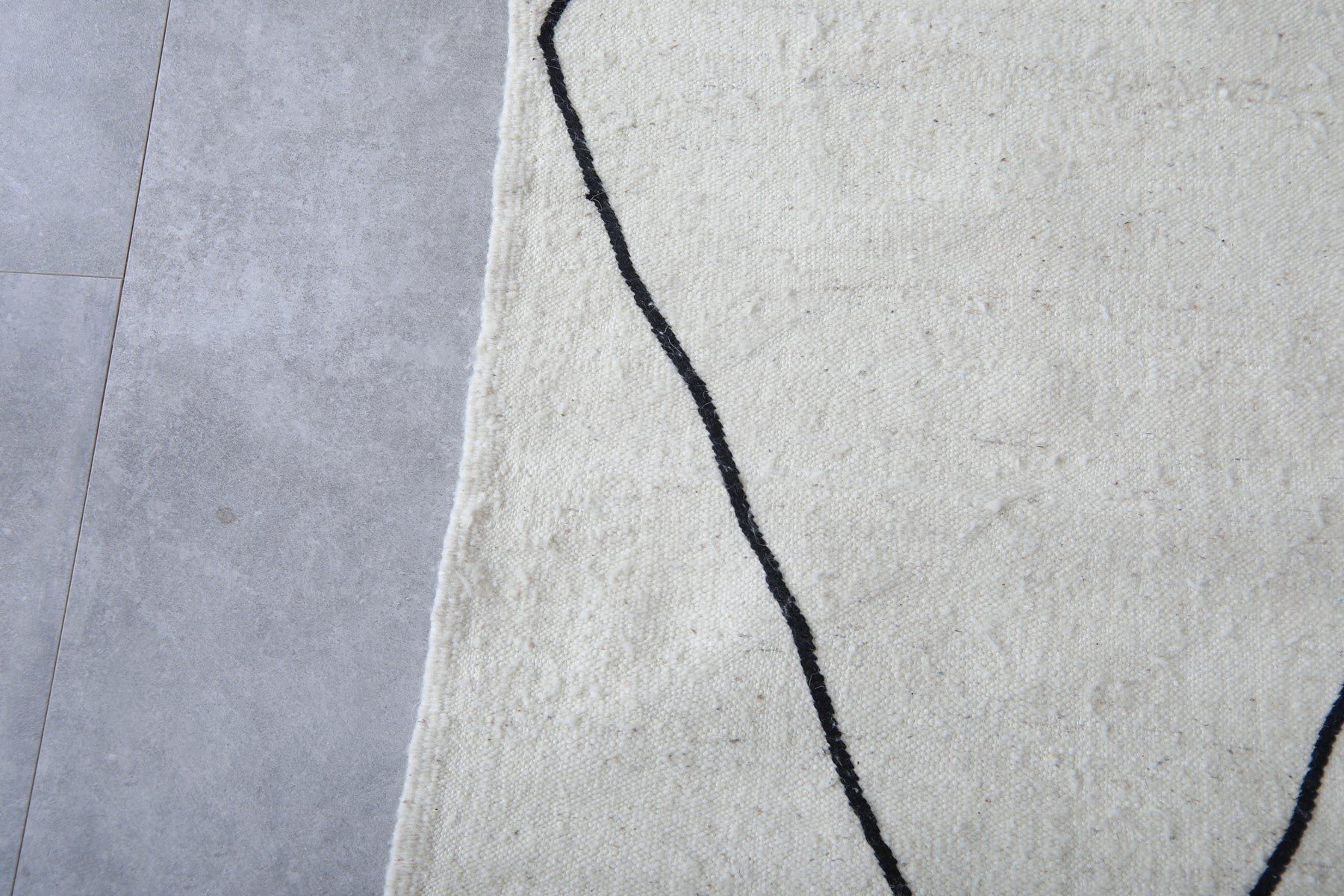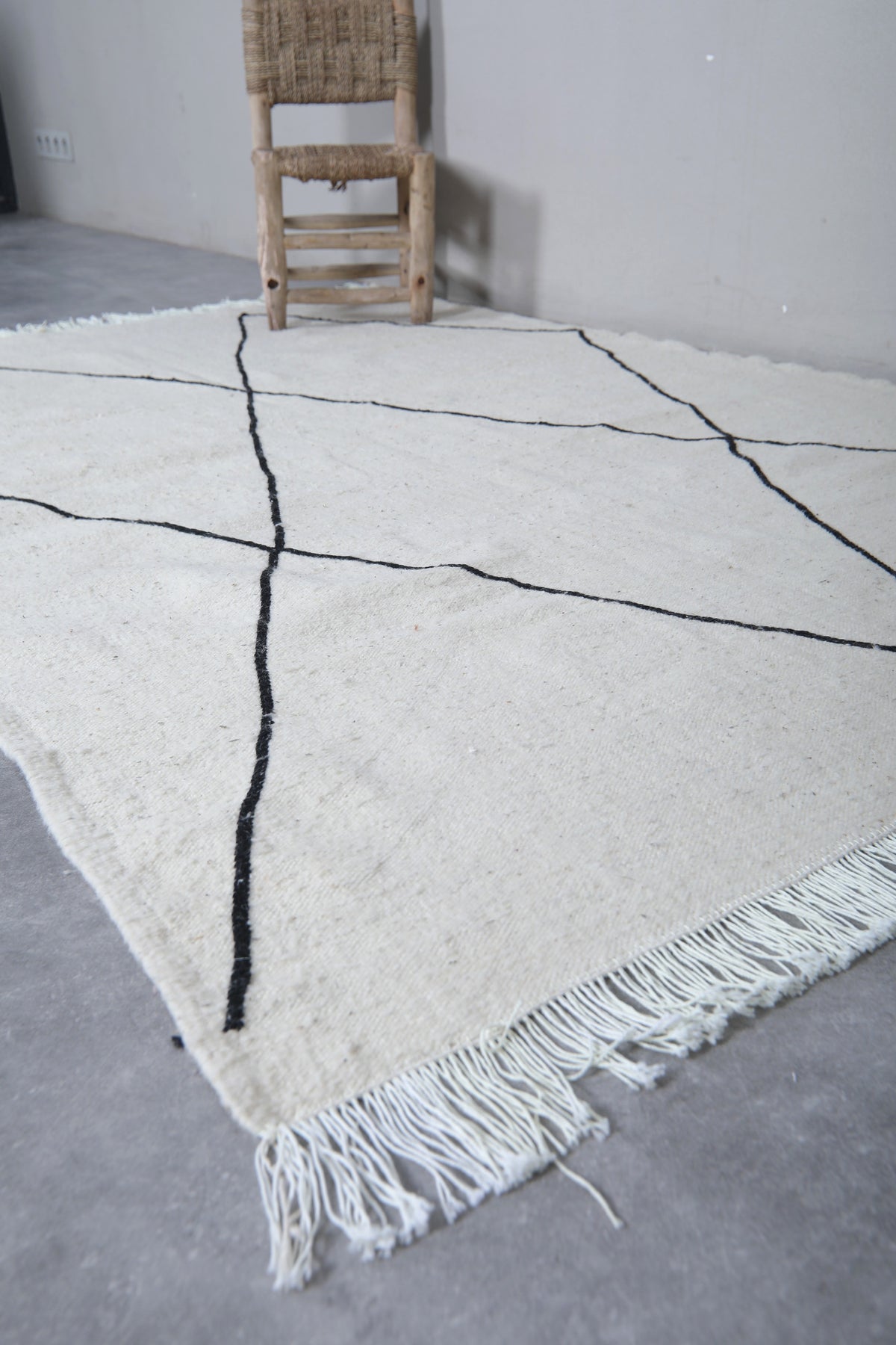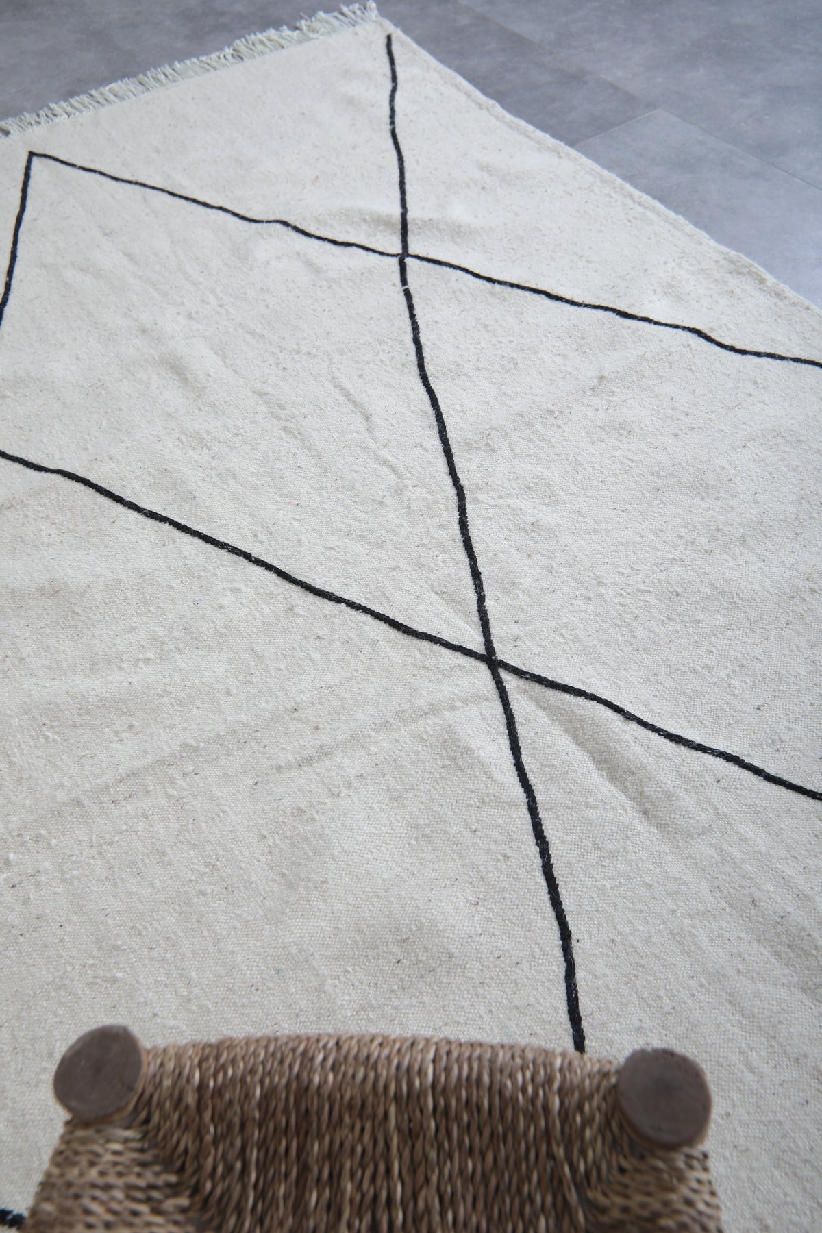 This 4.6 x 6.8 feet handwoven Moroccan wool rug embodies timeless elegance, featuring a bold black geometric diamond pattern on a soft white wool base. A seamless fusion of sophistication and tradition, it’s perfect for modern, Scandinavian, or bohemian-inspired interiors.