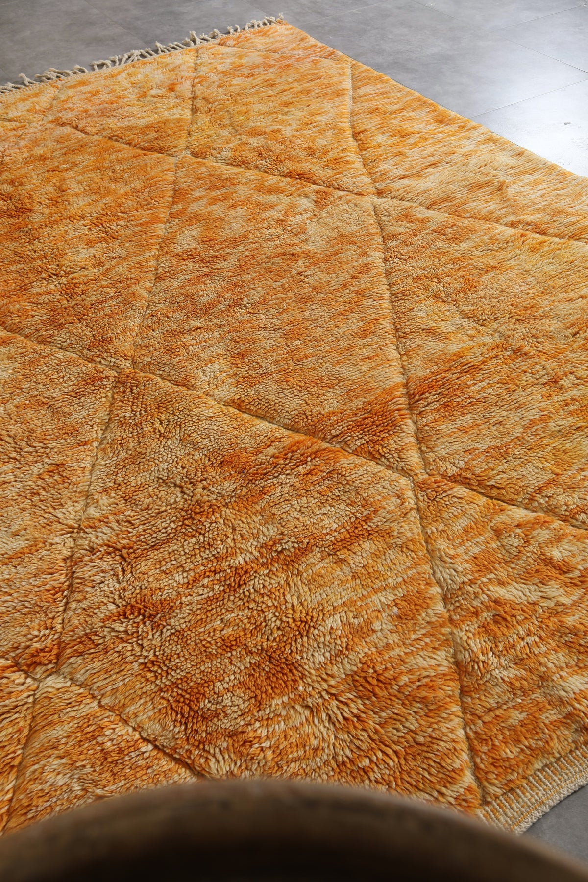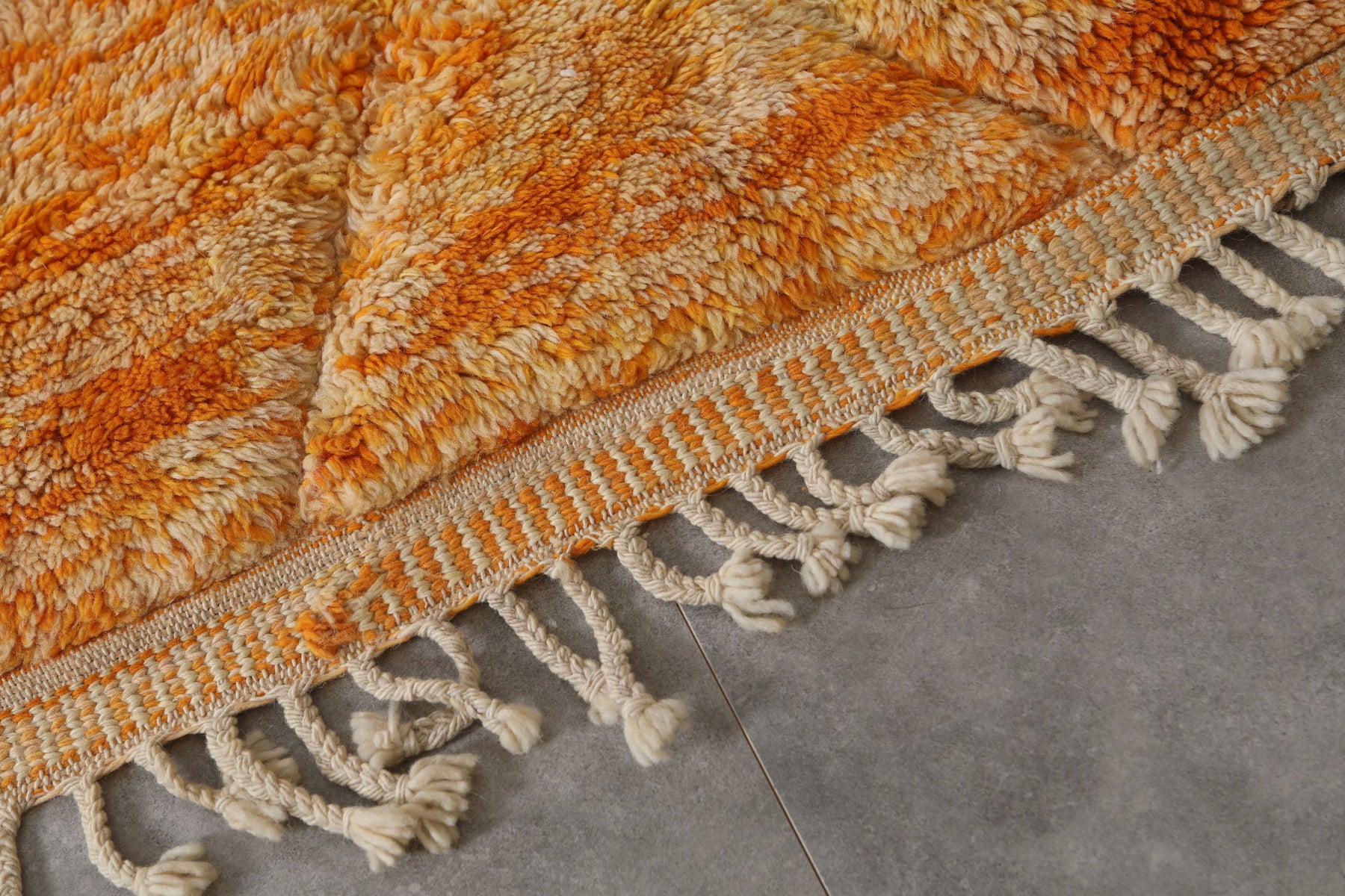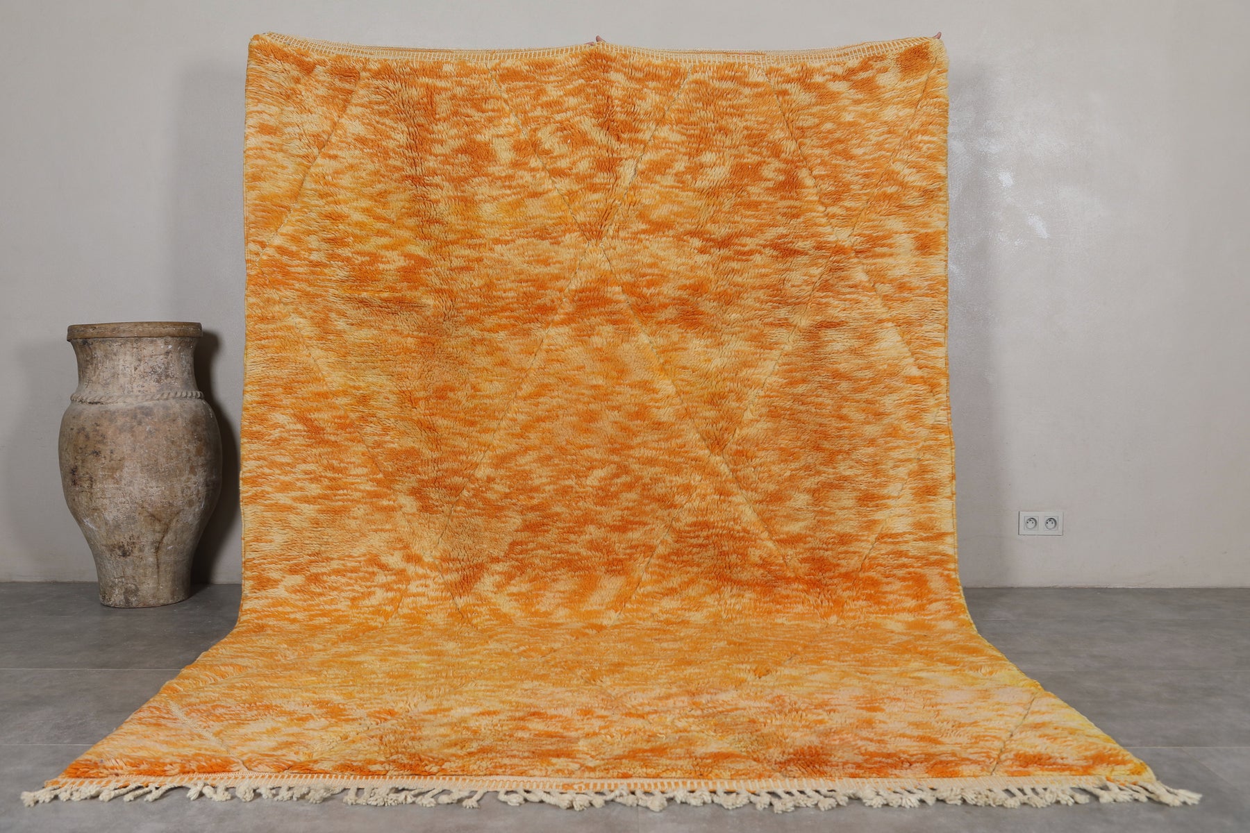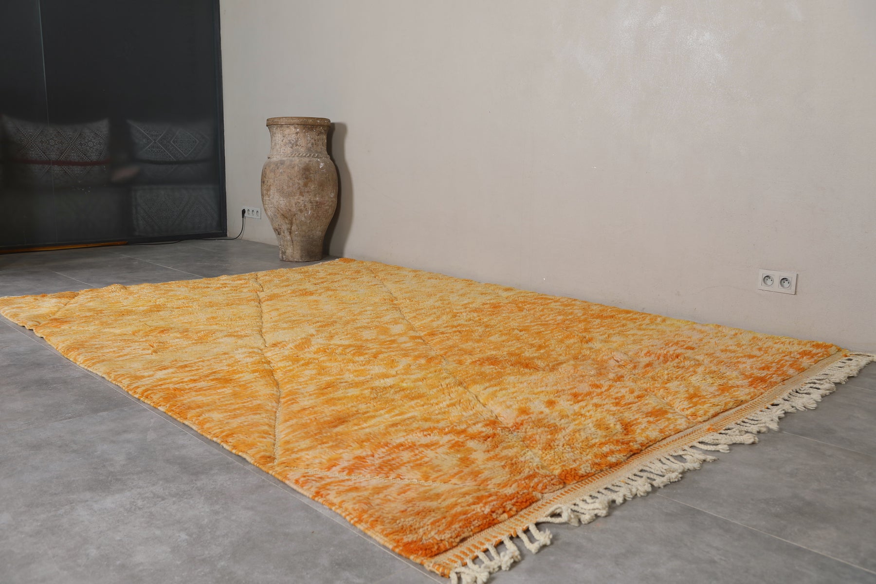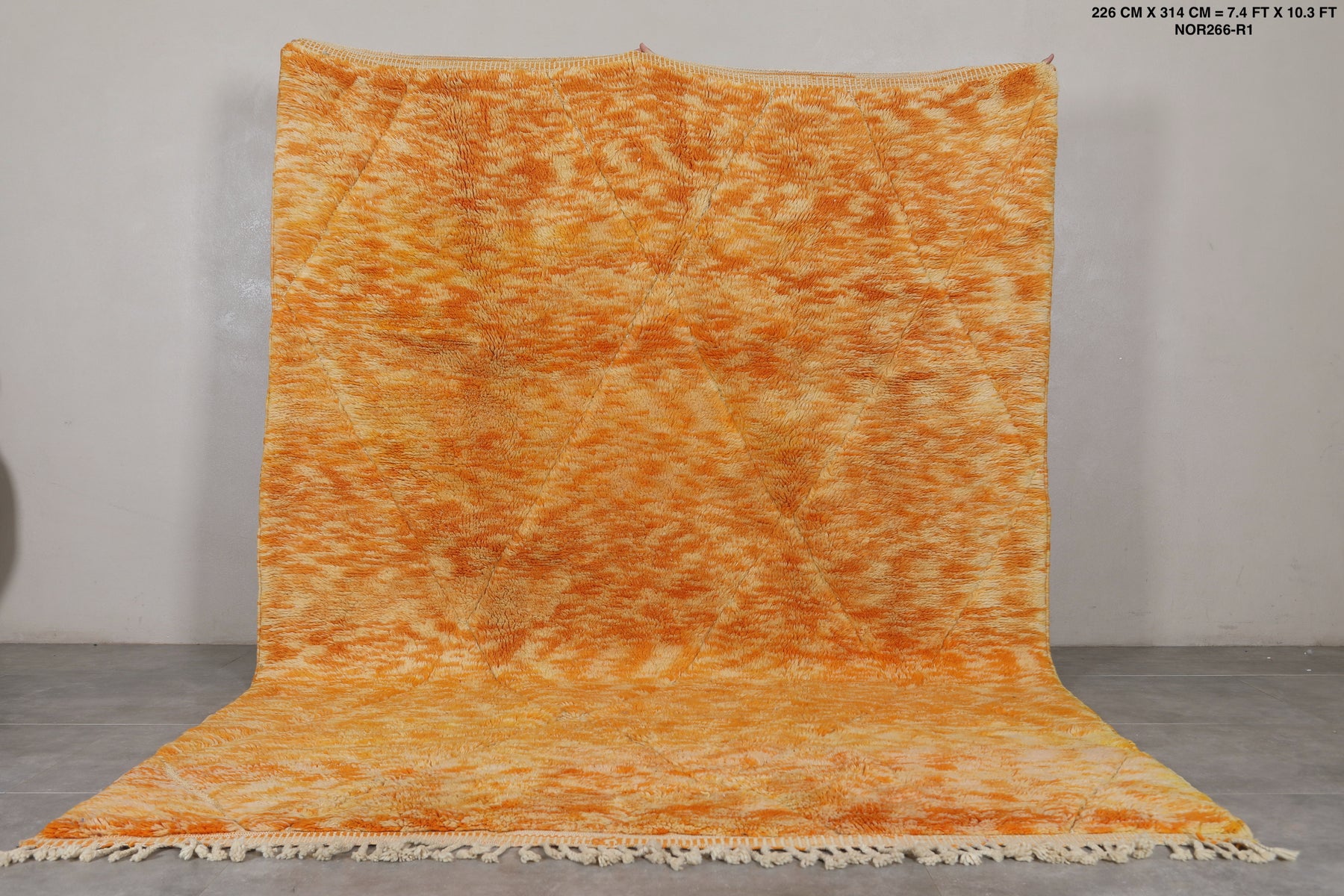 Elevate your space with this Beni Ourain Moroccan Rug, sized at 7.4 x 10.3 feet (226 CM x 314 CM). Handwoven with a dynamic blend of orange and yellow tones, this rug adds warmth and energy to any room. A stunning fusion of Moroccan tradition and modern artistry, this piece is a true statement of craftsmanship.