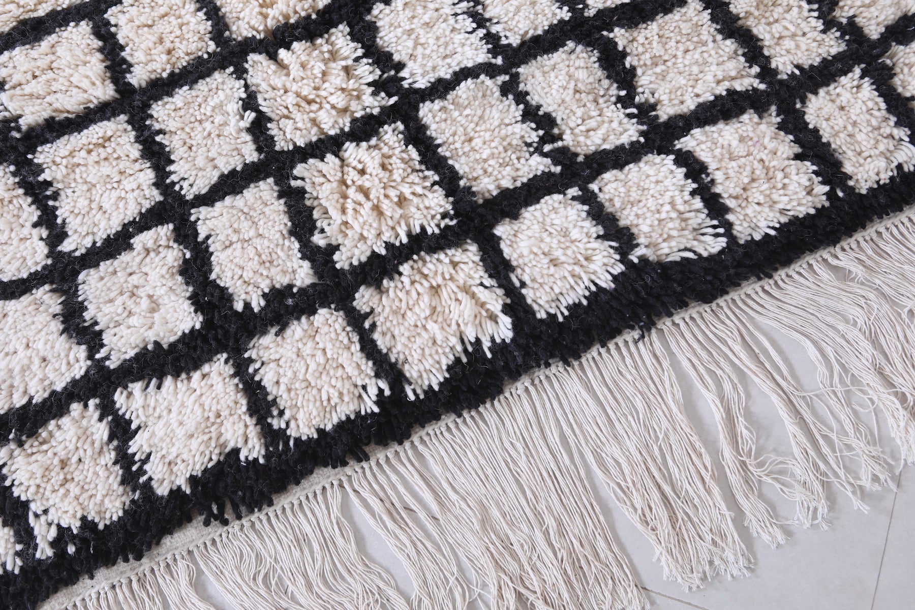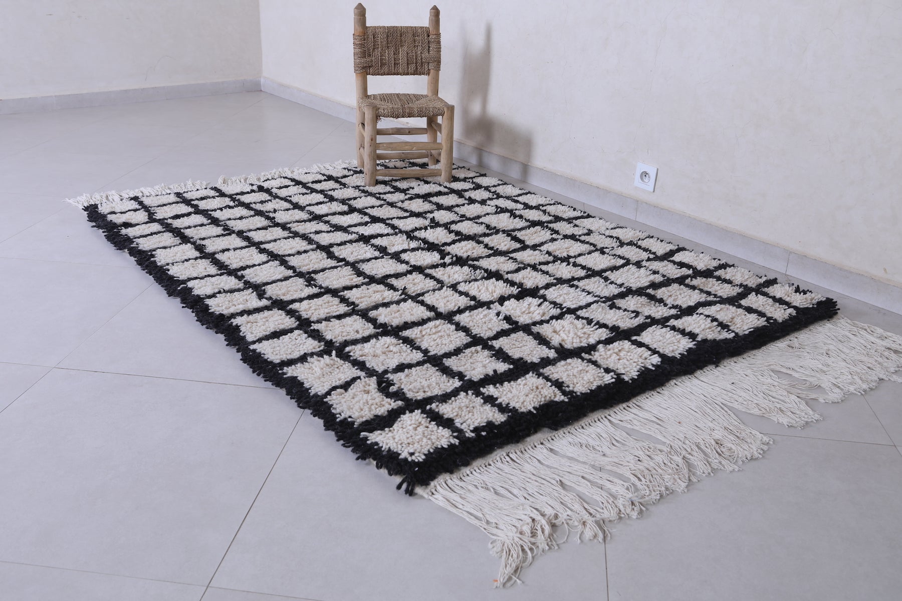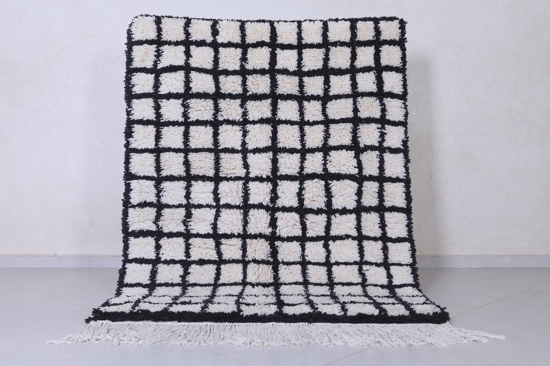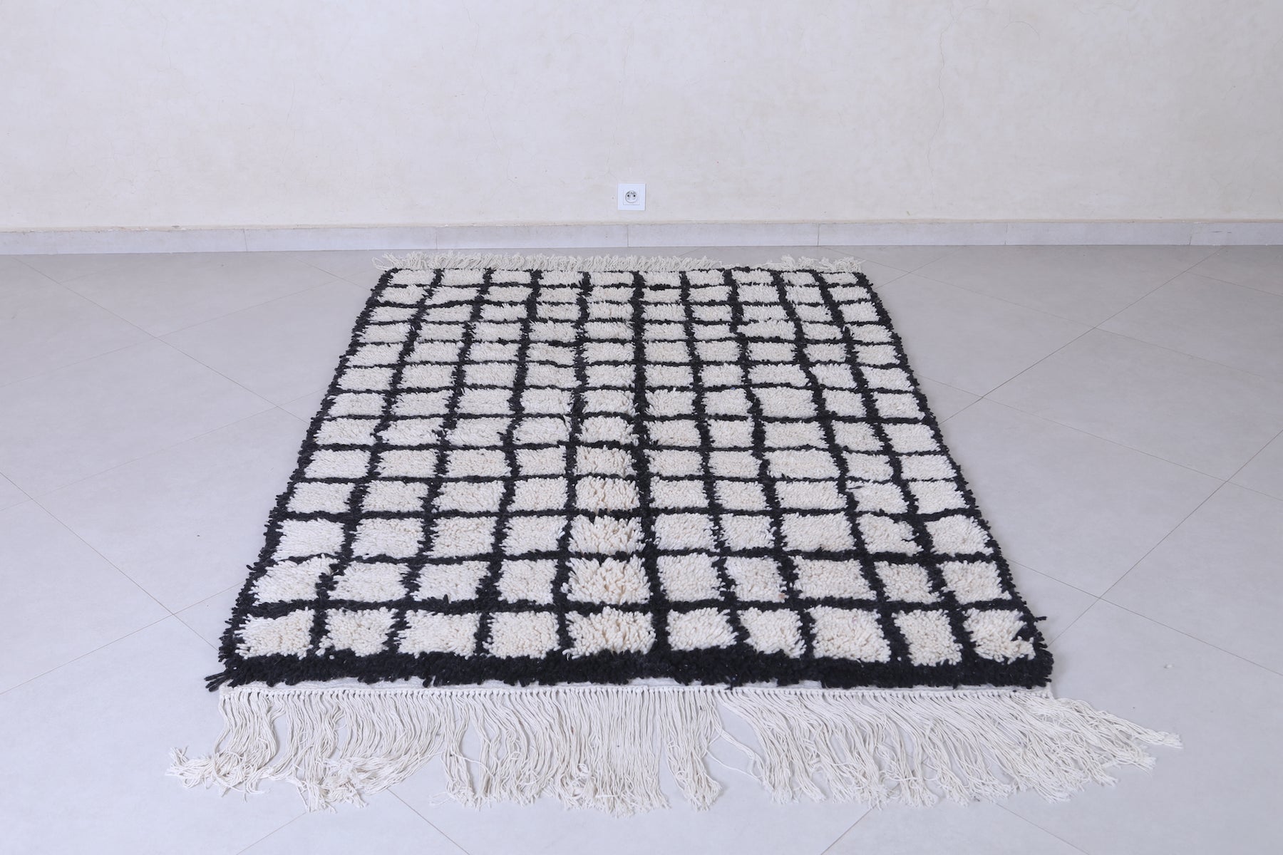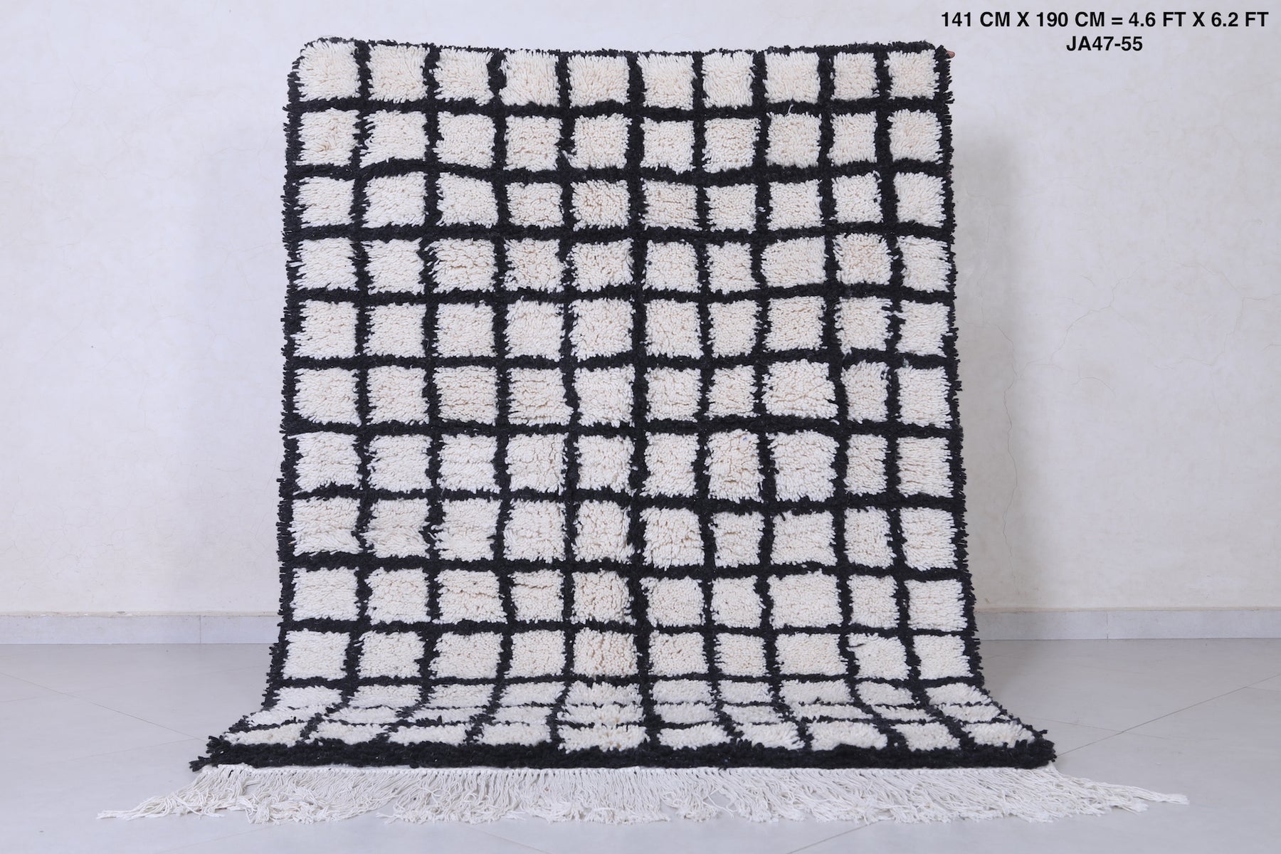Enhance your home décor with this exquisite handwoven rug, sized at 4.6 x 6.2 feet (141 CM x 190 CM). Featuring a bold black-and-white checkered grid pattern, this piece seamlessly merges timeless Moroccan craftsmanship with a modern aesthetic.