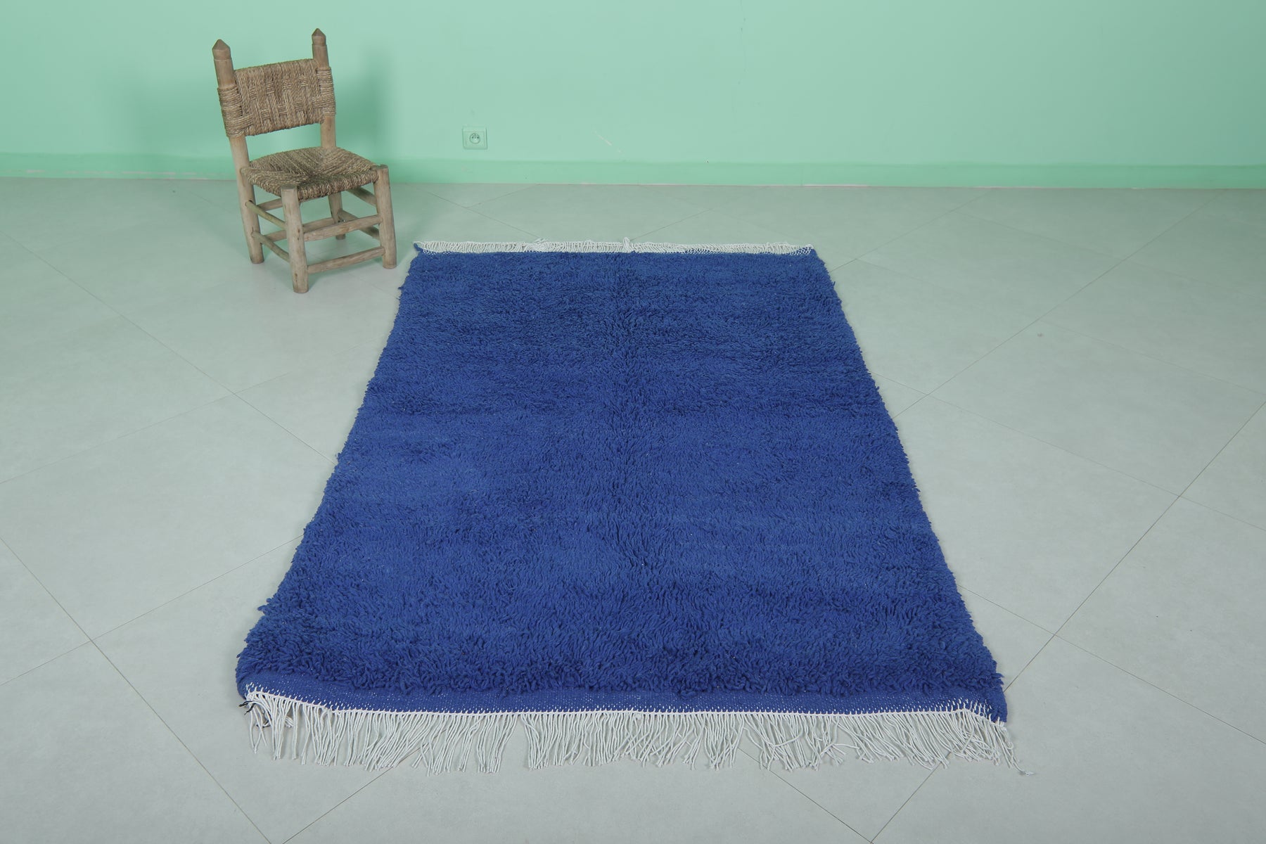 Blue Moroccan Rug - 4 x 6.2 Ft | Rounded Corner Design
