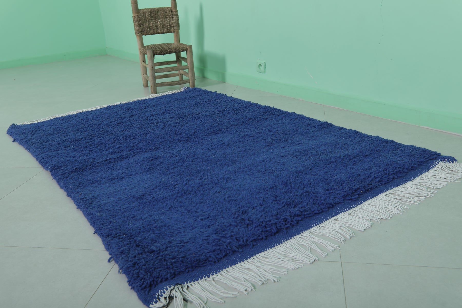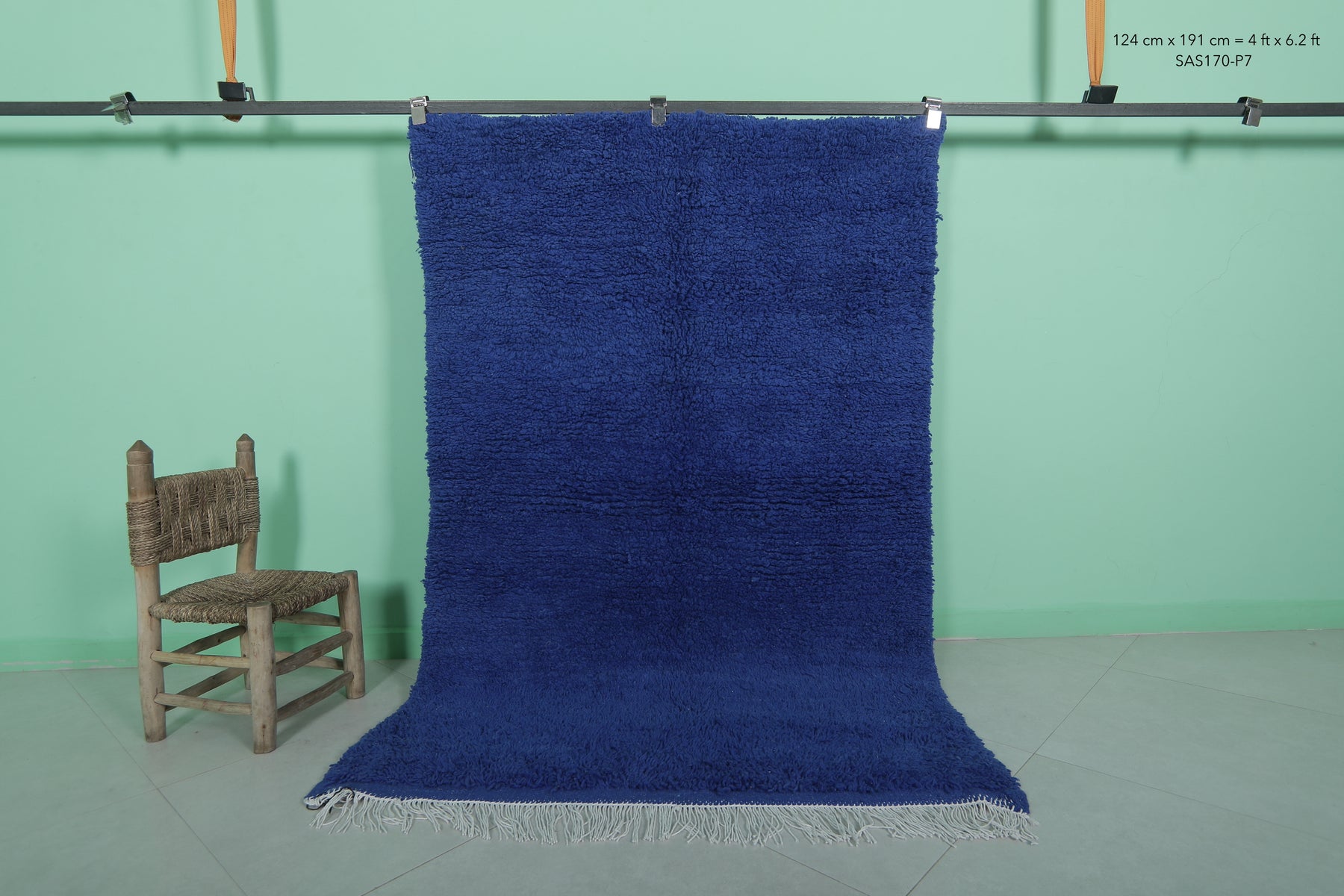 Elevate your home décor with this captivating Blue Moroccan Rug, sized at 4 x 6.2 feet (124 CM x 191 CM). Featuring elegant rounded corners, this handwoven piece blends tradition with modern sophistication.