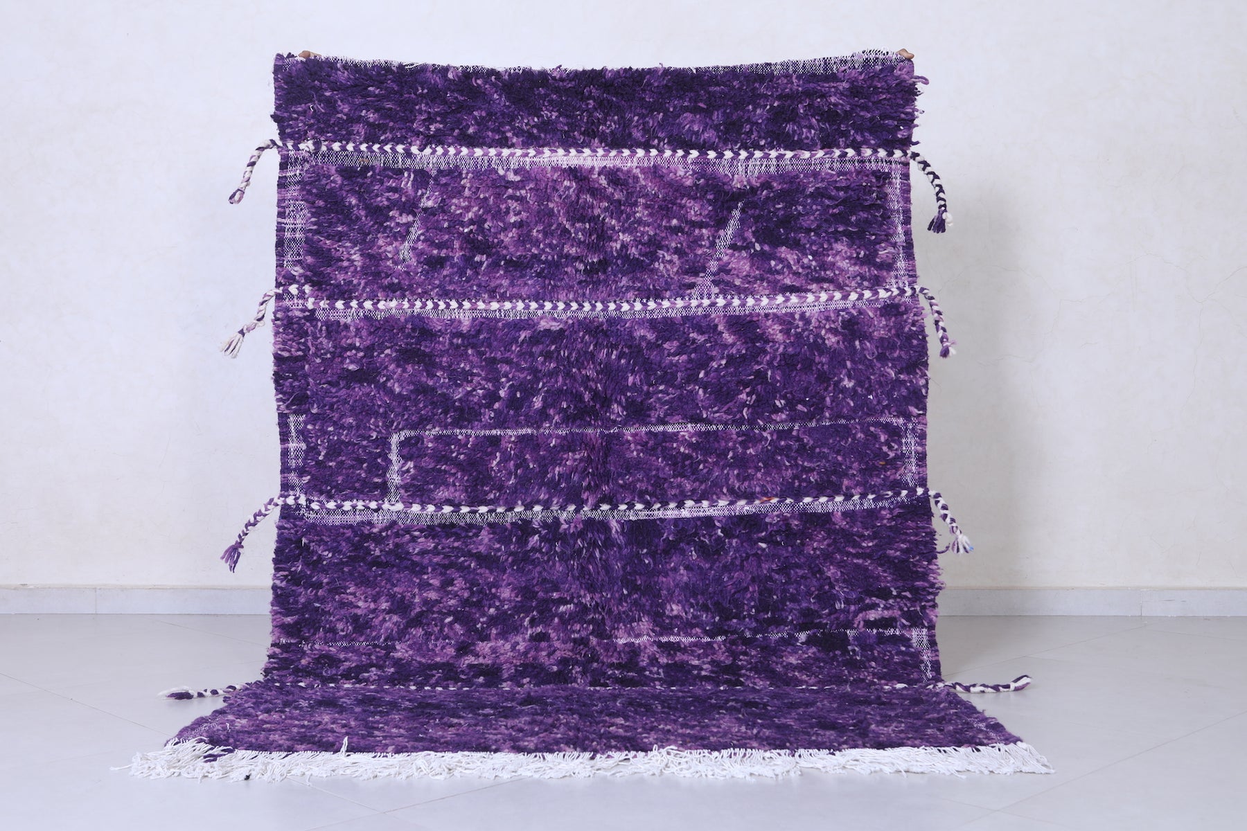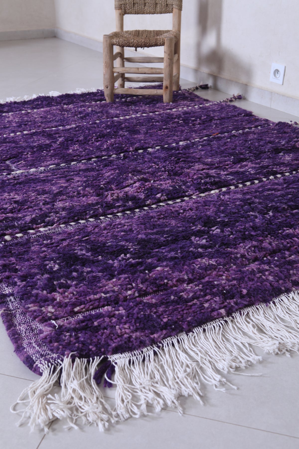 Add a bold and luxurious touch to your home with this handmade Beni Ourain rug, sized at 4.4 x 6.3 feet (136 CM x 194 CM). Featuring a rich purple hue and a soft, plush texture, this rug offers exceptional warmth and elegance.