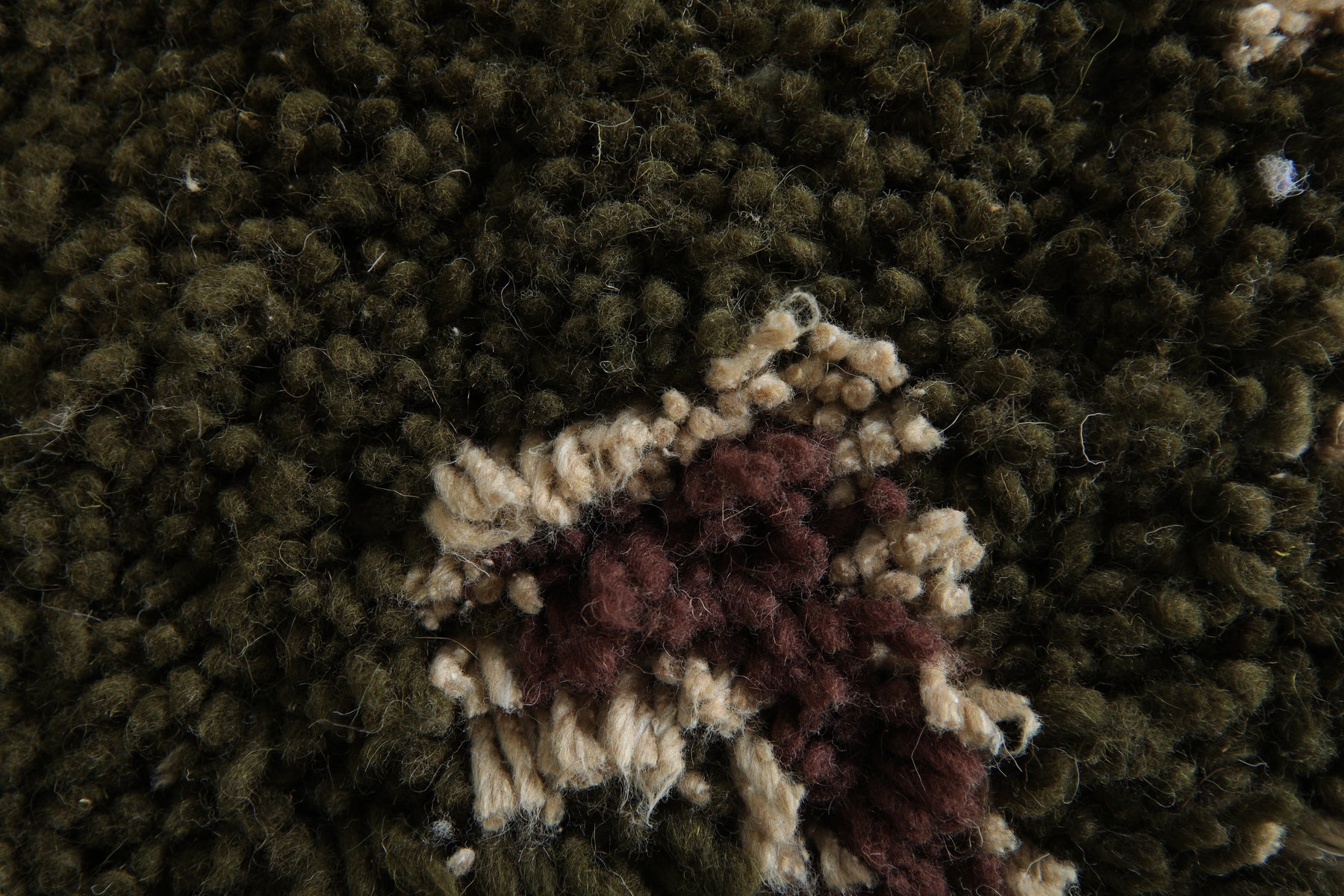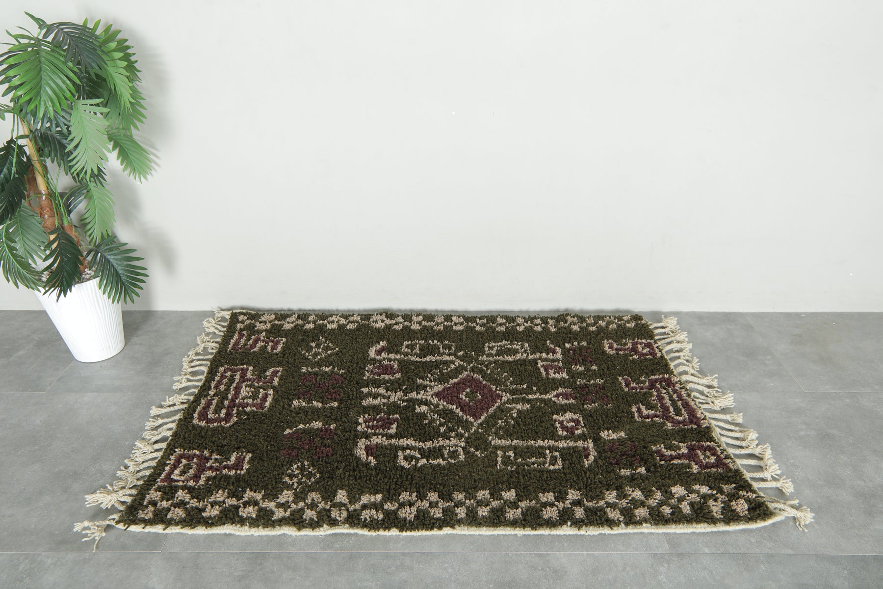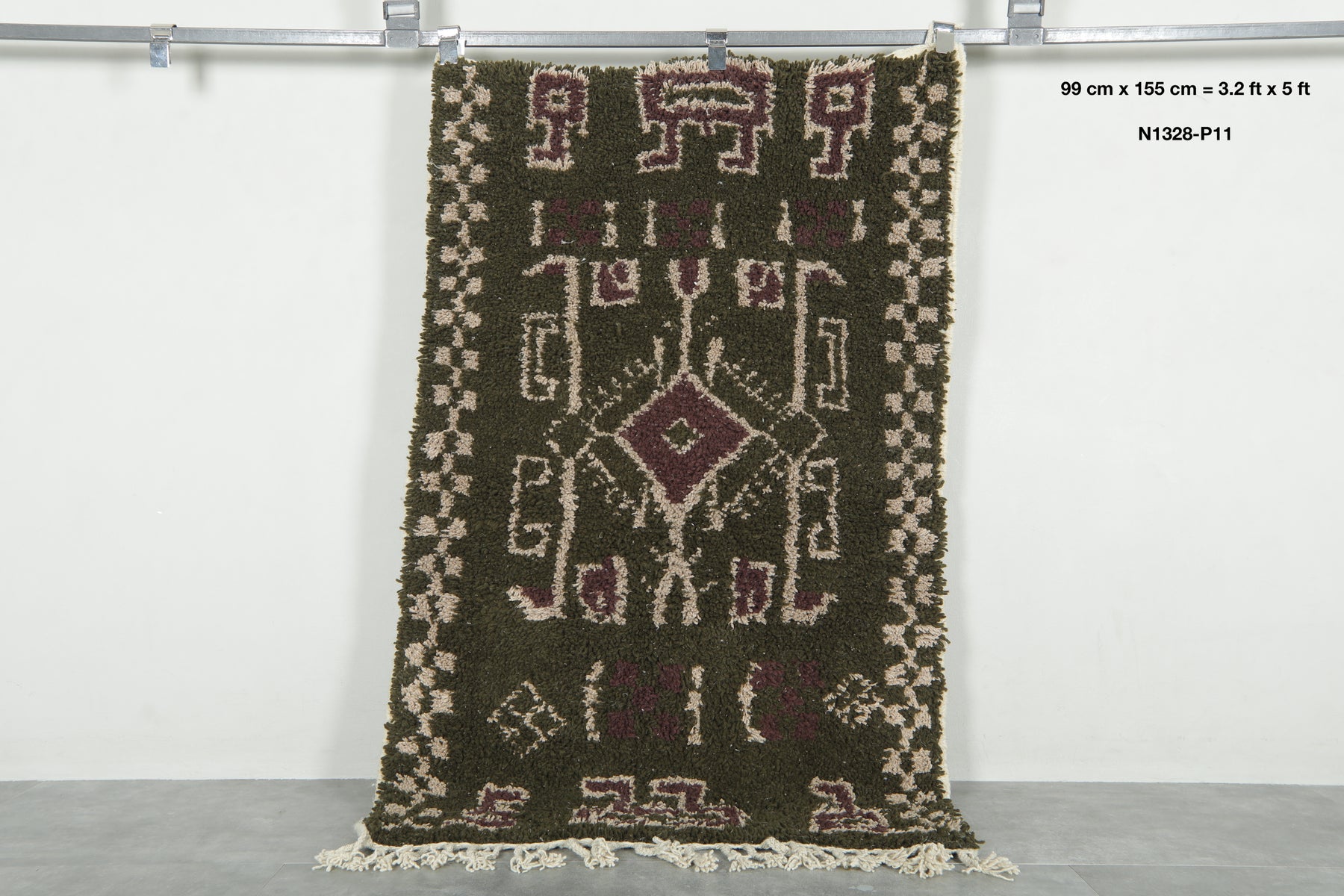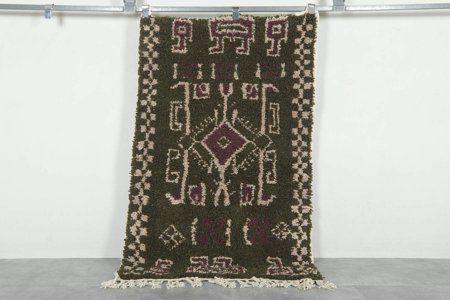 Bring a bold yet timeless statement to your space with this handcrafted Moroccan rug featuring rich olive green, soft beige, and deep burgundy hues. Adorned with intricate geometric Berber motifs, this vintage-inspired piece adds warmth, character, and artisanal charm to any room. Perfect for boho, eclectic, or rustic interiors, this wool rug is both stylish and durable—making it a unique centerpiece for living rooms, bedrooms, or entryways.