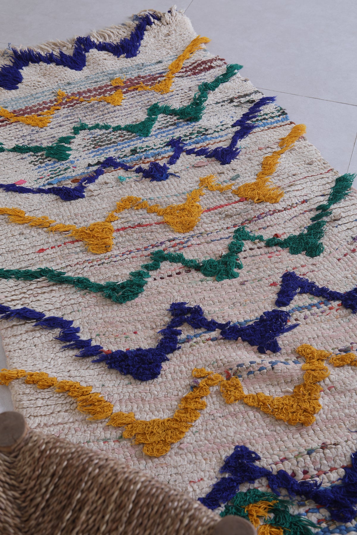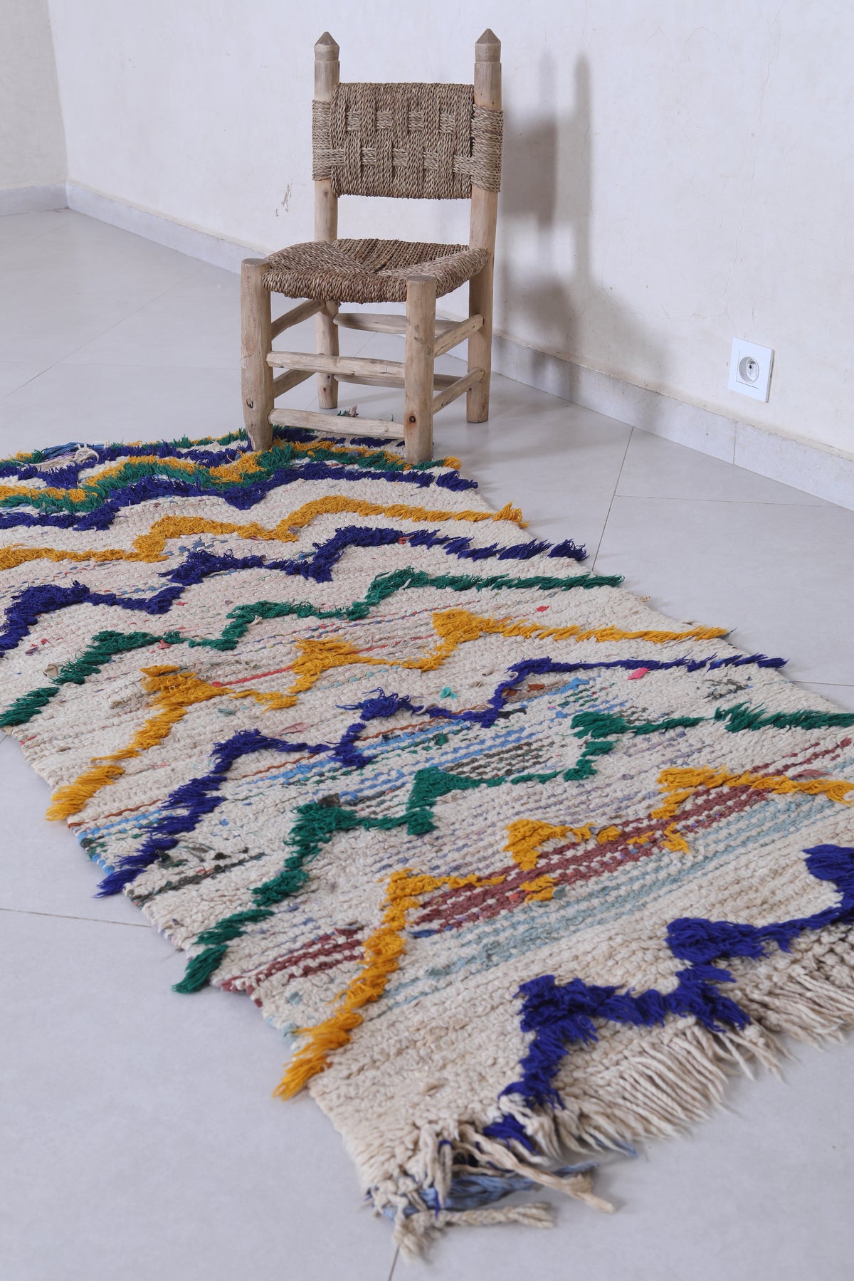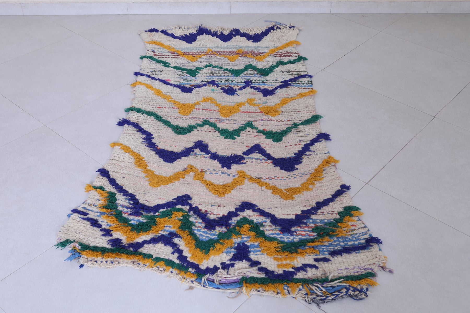 Elevate your home decor with this handmade Moroccan rug, showcasing vibrant zigzag patterns in rich hues of green, gold, blue, and purple. The intricate design is set against a soft cream background, creating a beautiful contrast that draws the eye. Crafted by skilled artisans, this rug blends traditional Moroccan craftsmanship with modern aesthetics. Measuring 2.7 x 5.4 ft, it’s ideal for small spaces, bedrooms, or as a striking accent in larger rooms. Add a touch of cultural charm and artistry to your space with this one-of-a-kind piece.