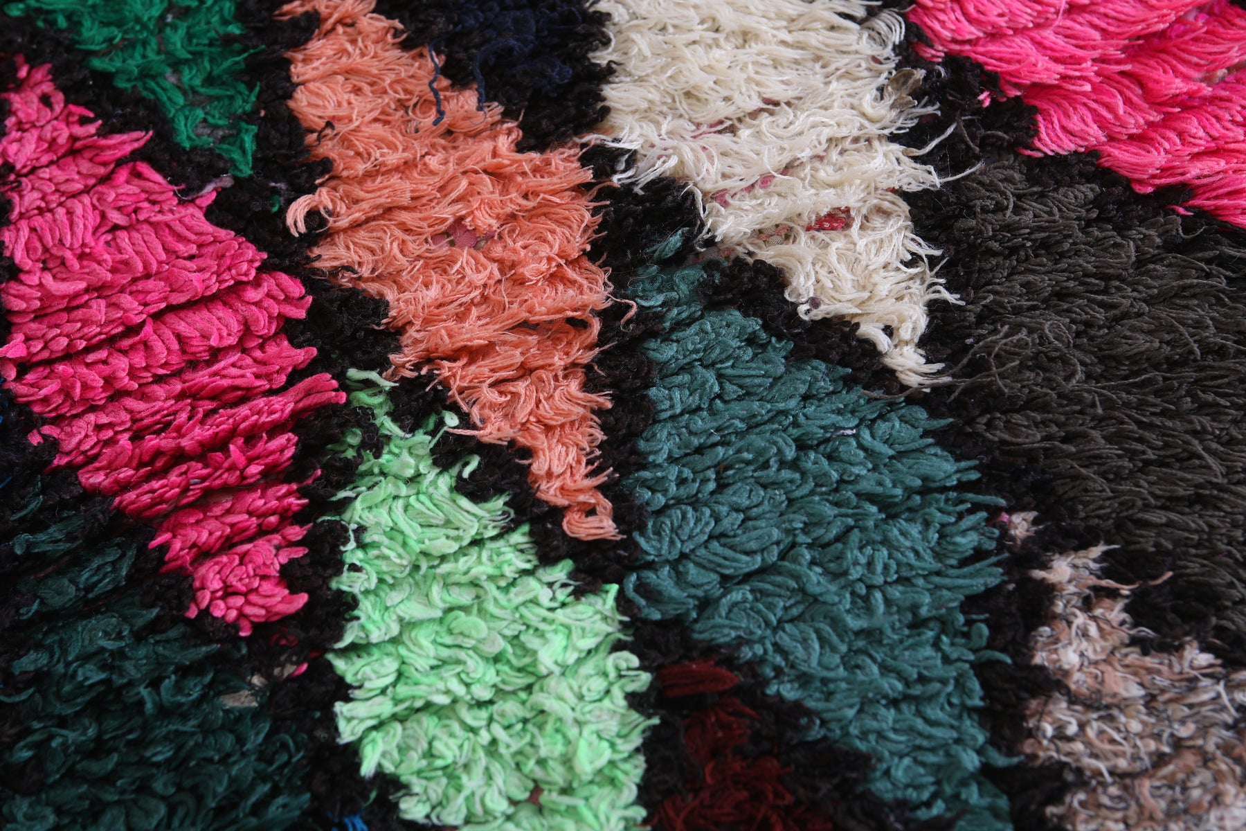 Transform your living space with this stunning Moroccan Berber rug, featuring an intricate diamond pattern. Measuring 3.6 x 7.4 feet, this rug showcases a vibrant mix of red, blue, and earthy tones that exude a lively charm. Handcrafted by skilled artisans, the thick shag texture provides a cozy and luxurious feel underfoot. Perfect for adding a bold statement to any room, this authentic piece combines tradition with vibrant artistry.