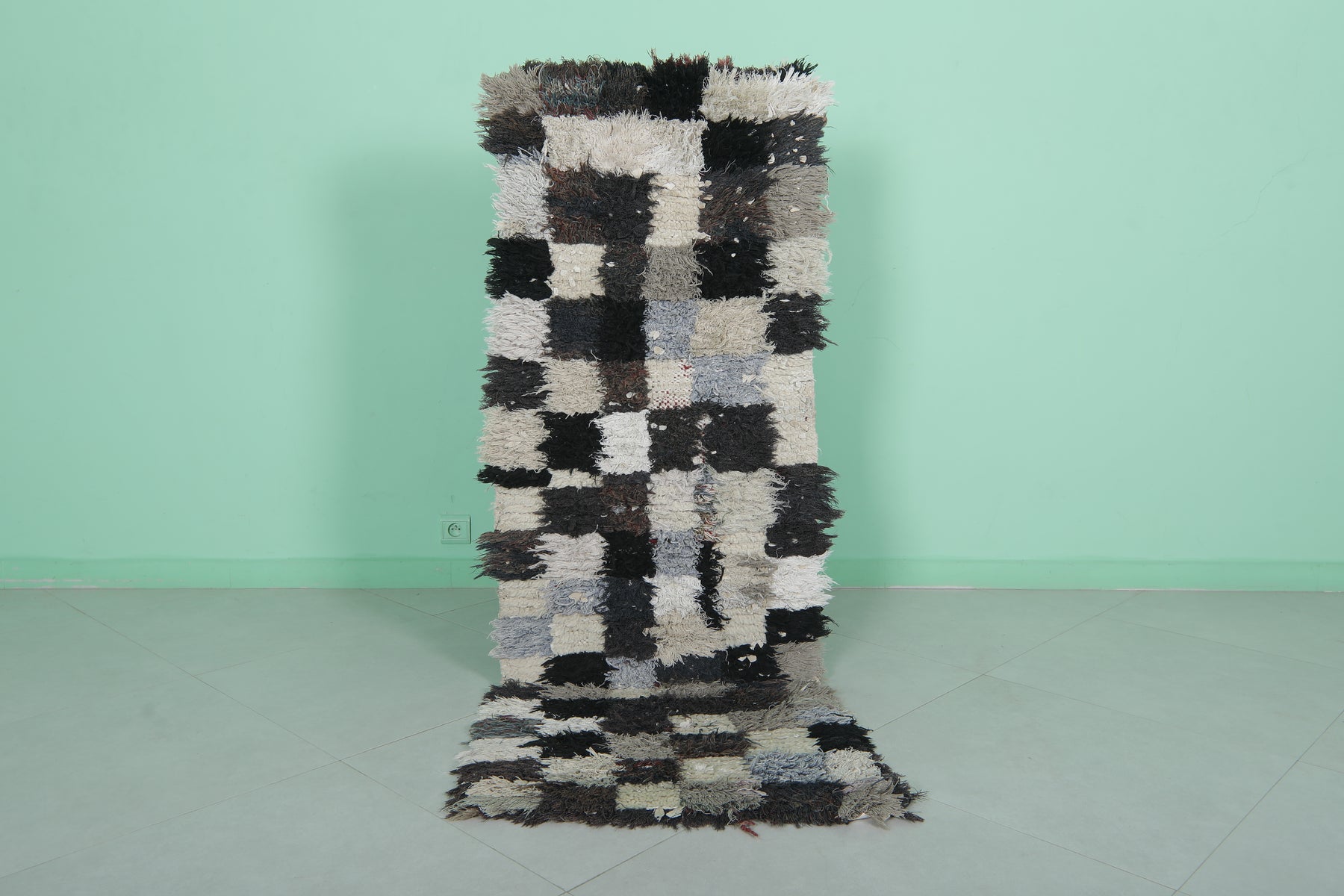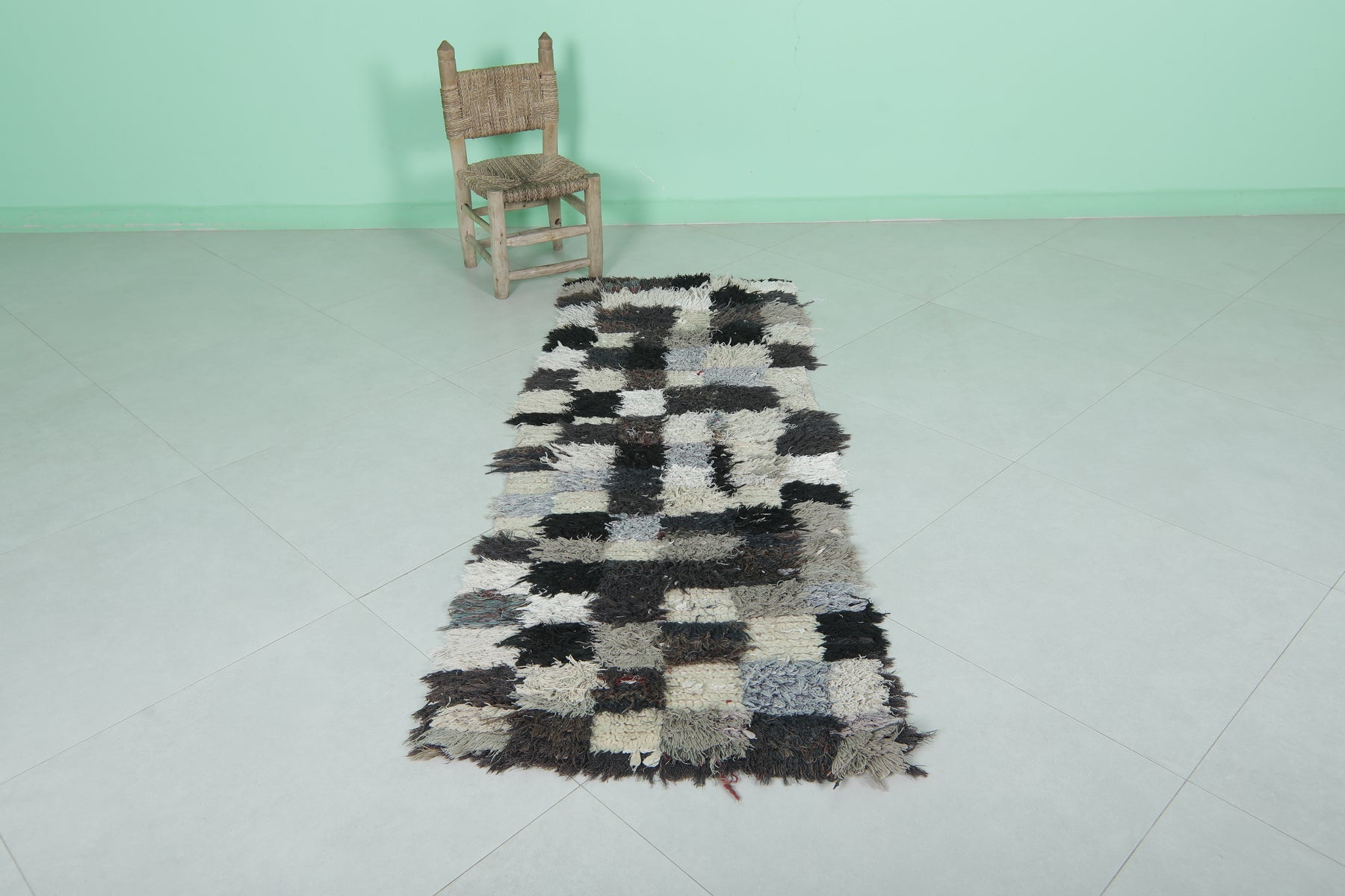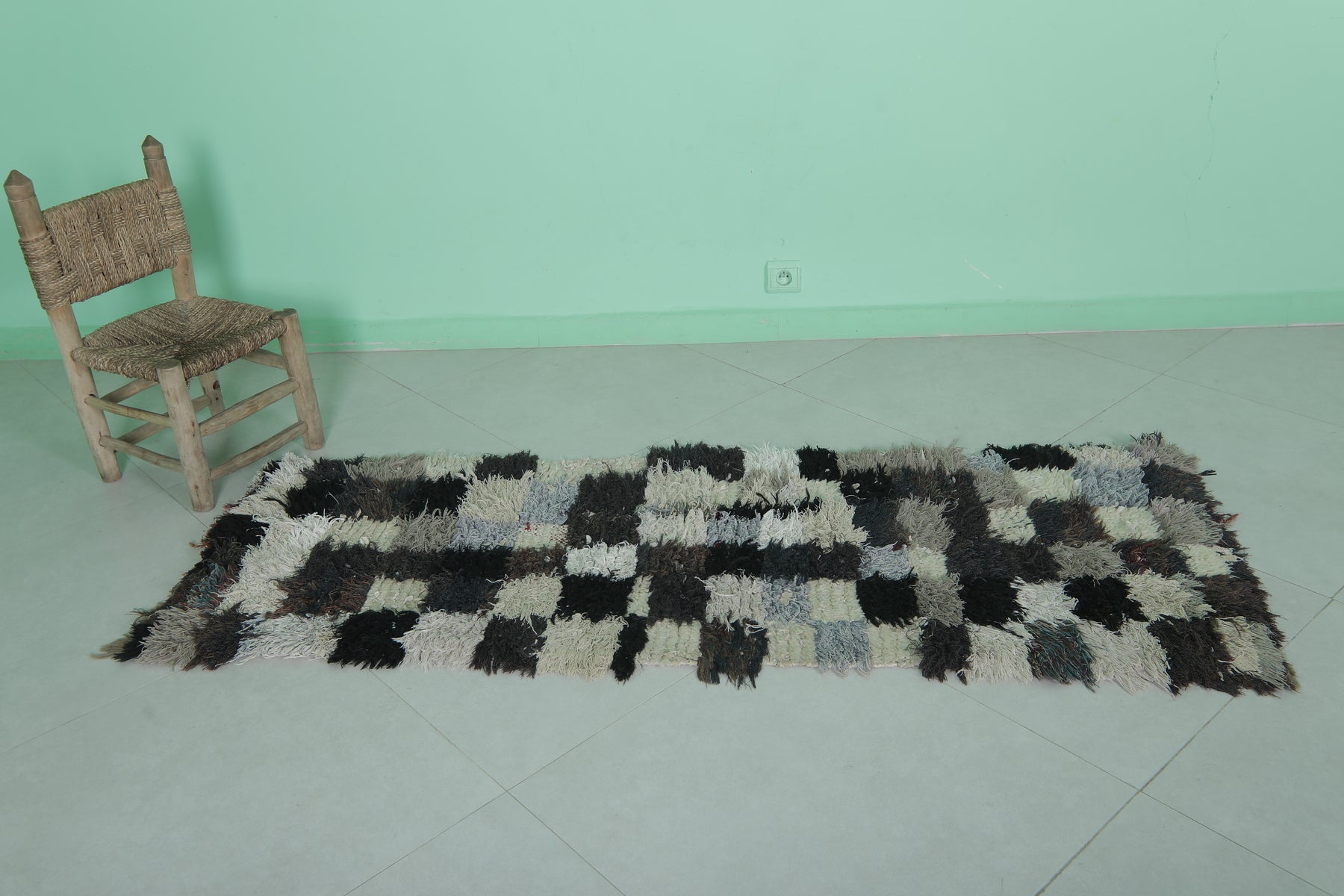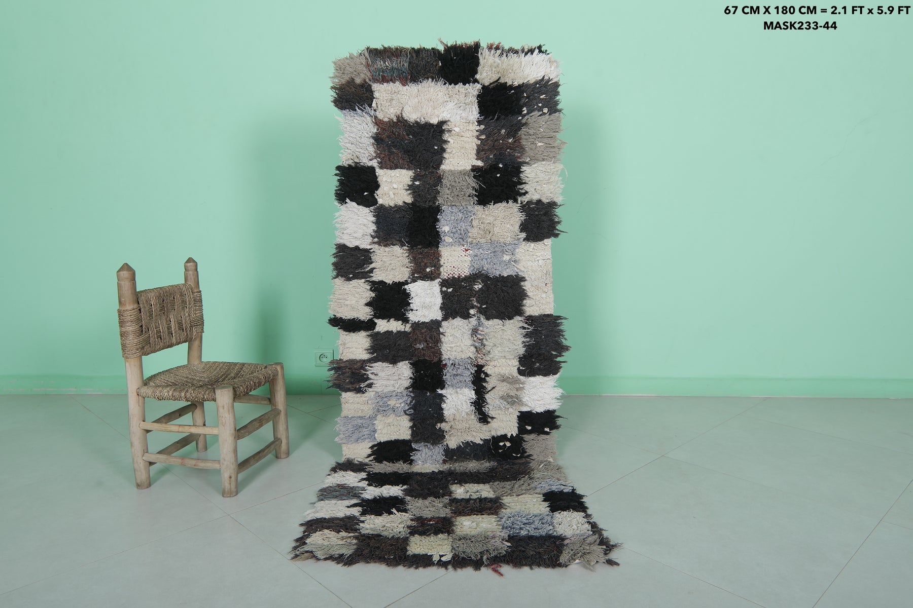 Moroccan Berber Rug – 2.1 x 5.9 Feet – Checkered Handwoven Design - Boucherouite Rugs