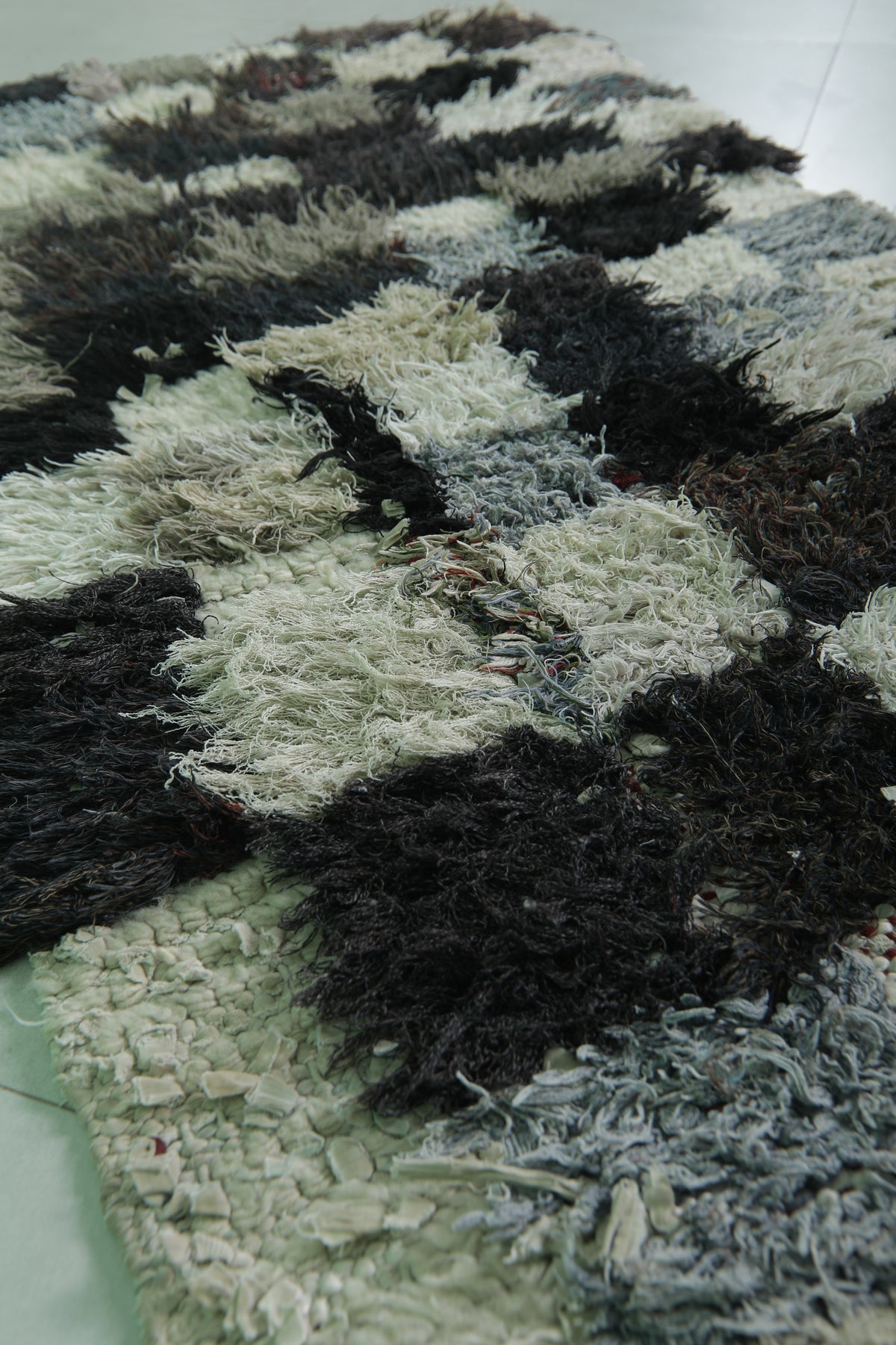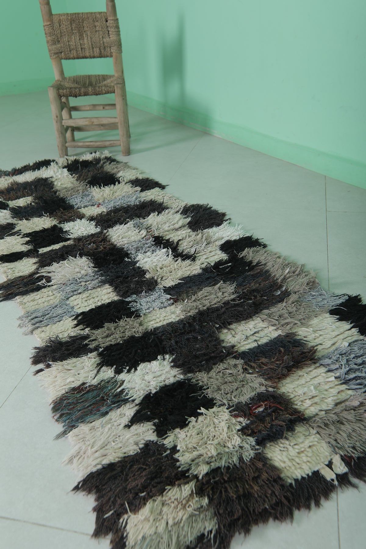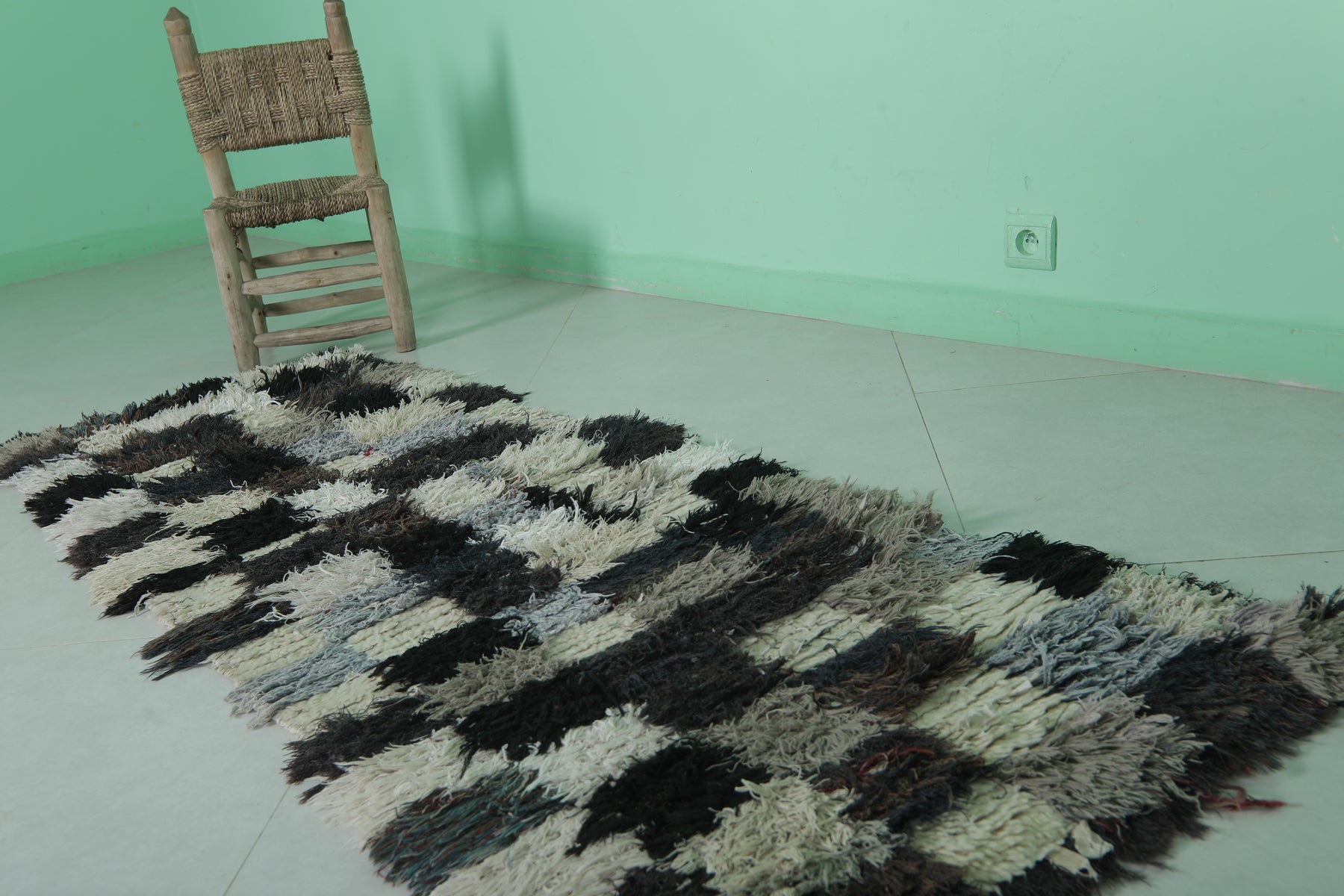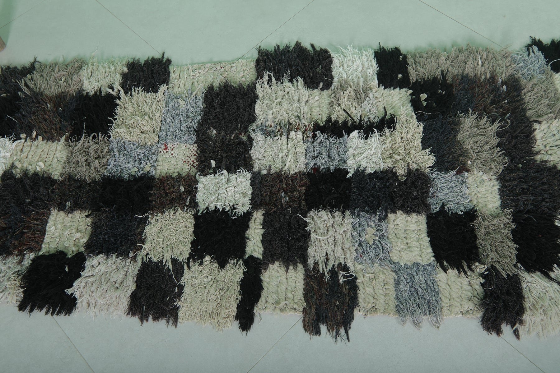 Introduce timeless elegance to your home with this handwoven Moroccan Berber rug, measuring 2.1 x 5.9 feet. Featuring a classic black, white, and gray checkered pattern, this rug blends traditional craftsmanship with modern design. The textured surface enhances depth and warmth, making it an excellent choice for hallways, living rooms, or minimalist interiors. Durable and stylish, this one-of-a-kind piece adds sophisticated charm to any space.