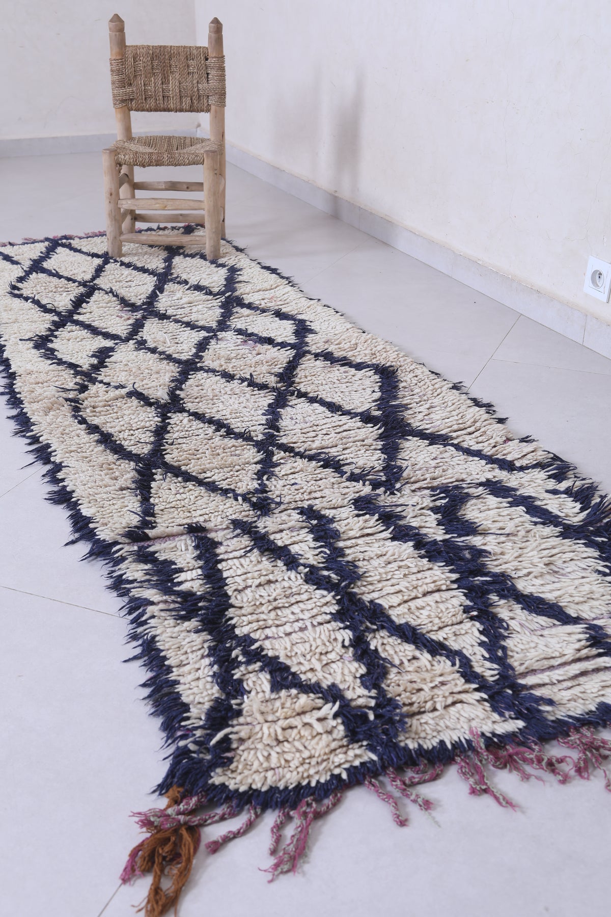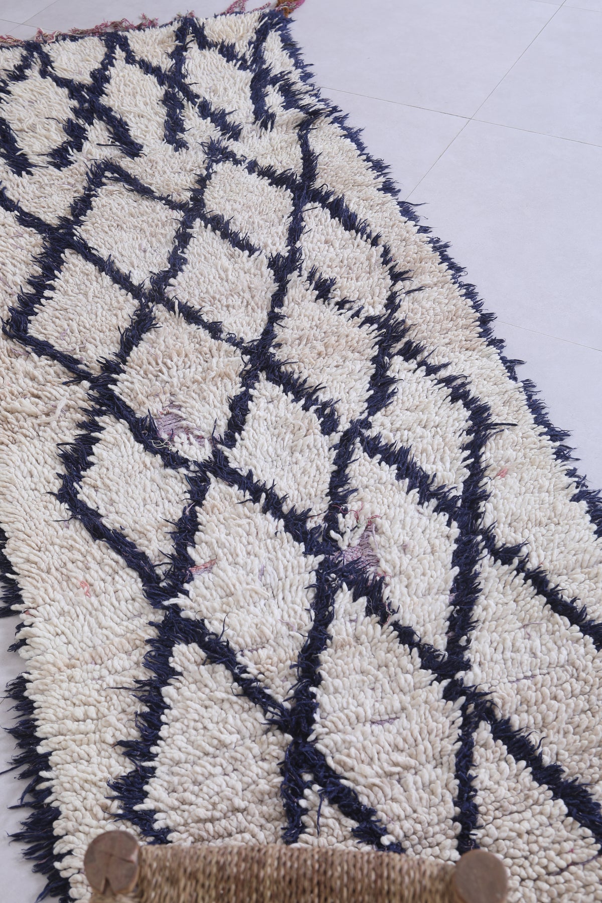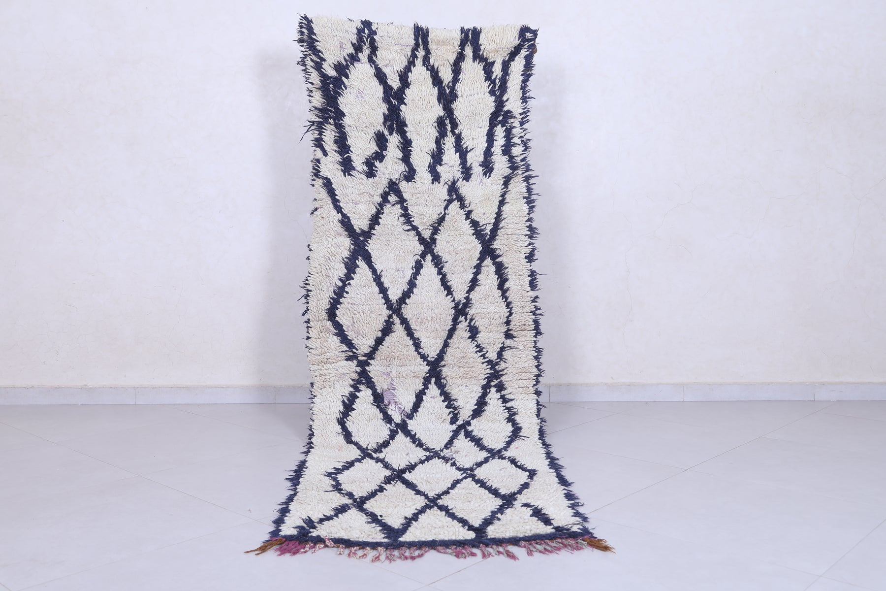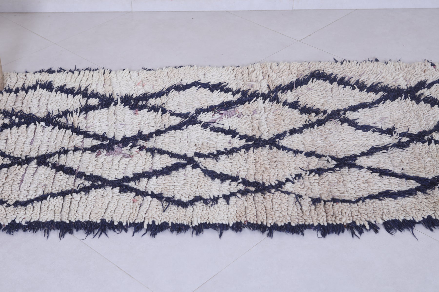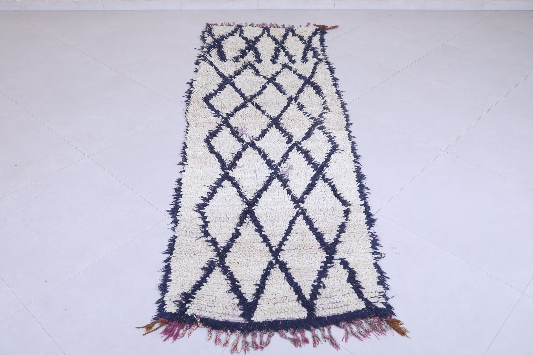 Moroccan Berber Rug – 2.5 x 8.1 Feet – Minimalist Black and White Diamond Design